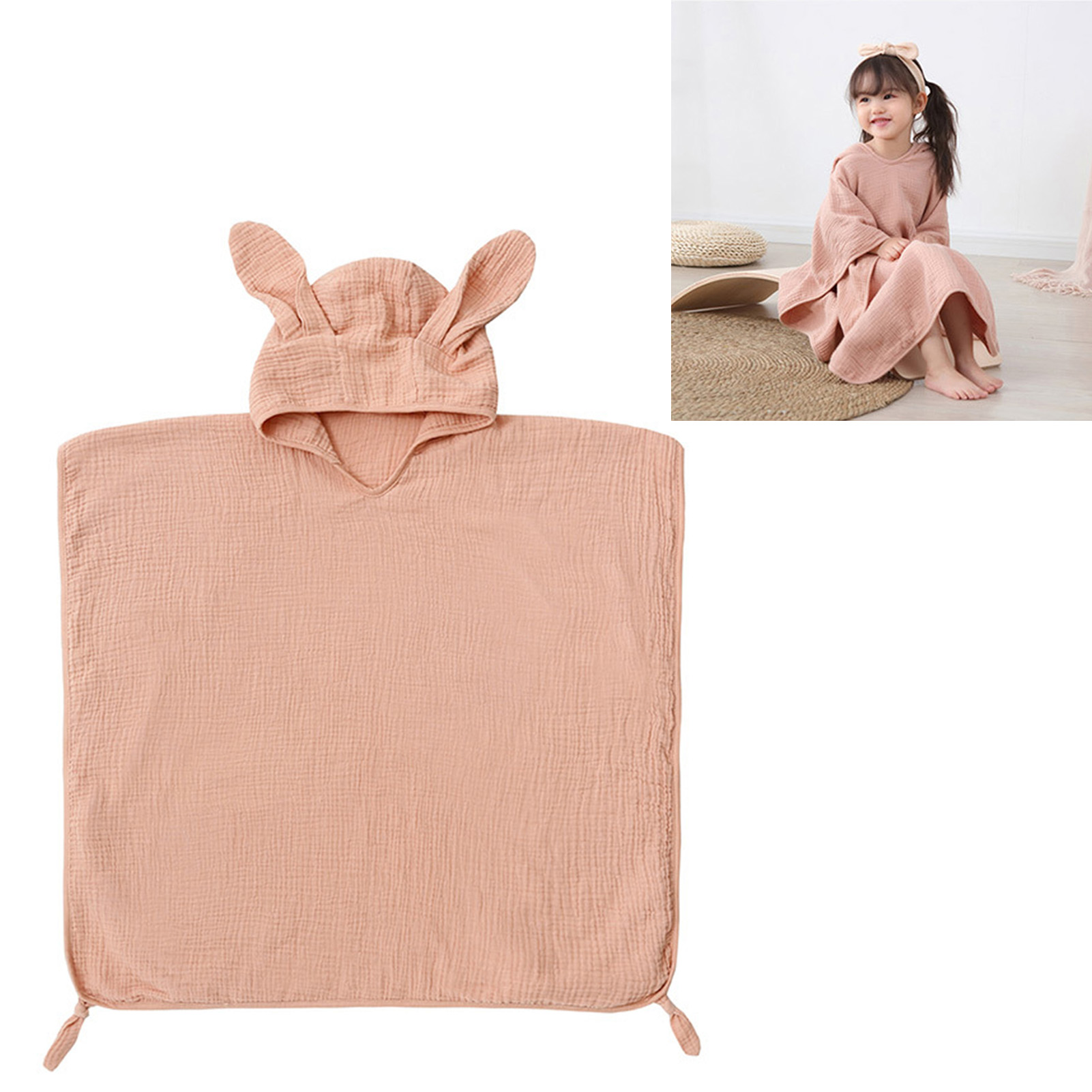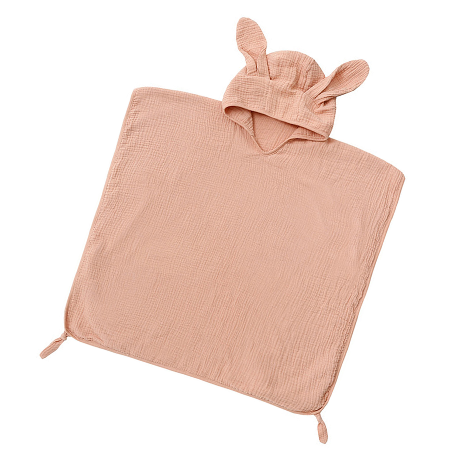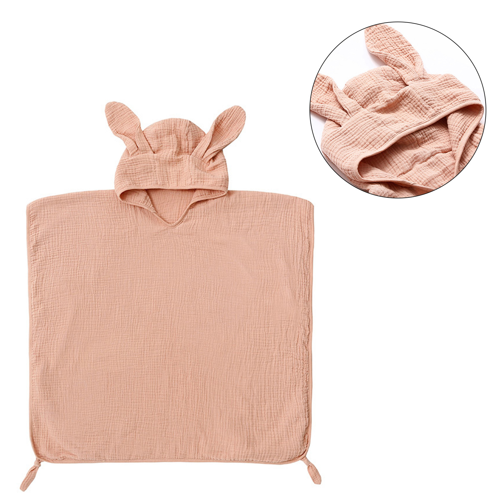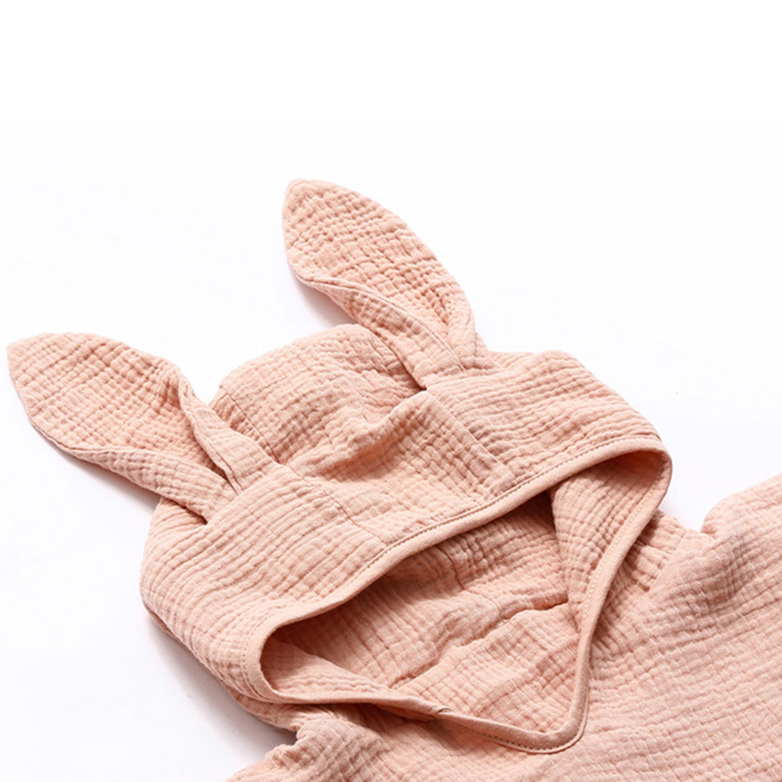 Baby Hooded Towel Pure Cotton 4 Layers Water Absorbent Wearable Bath Towel for Children Dusty Pink Rabbit Ear