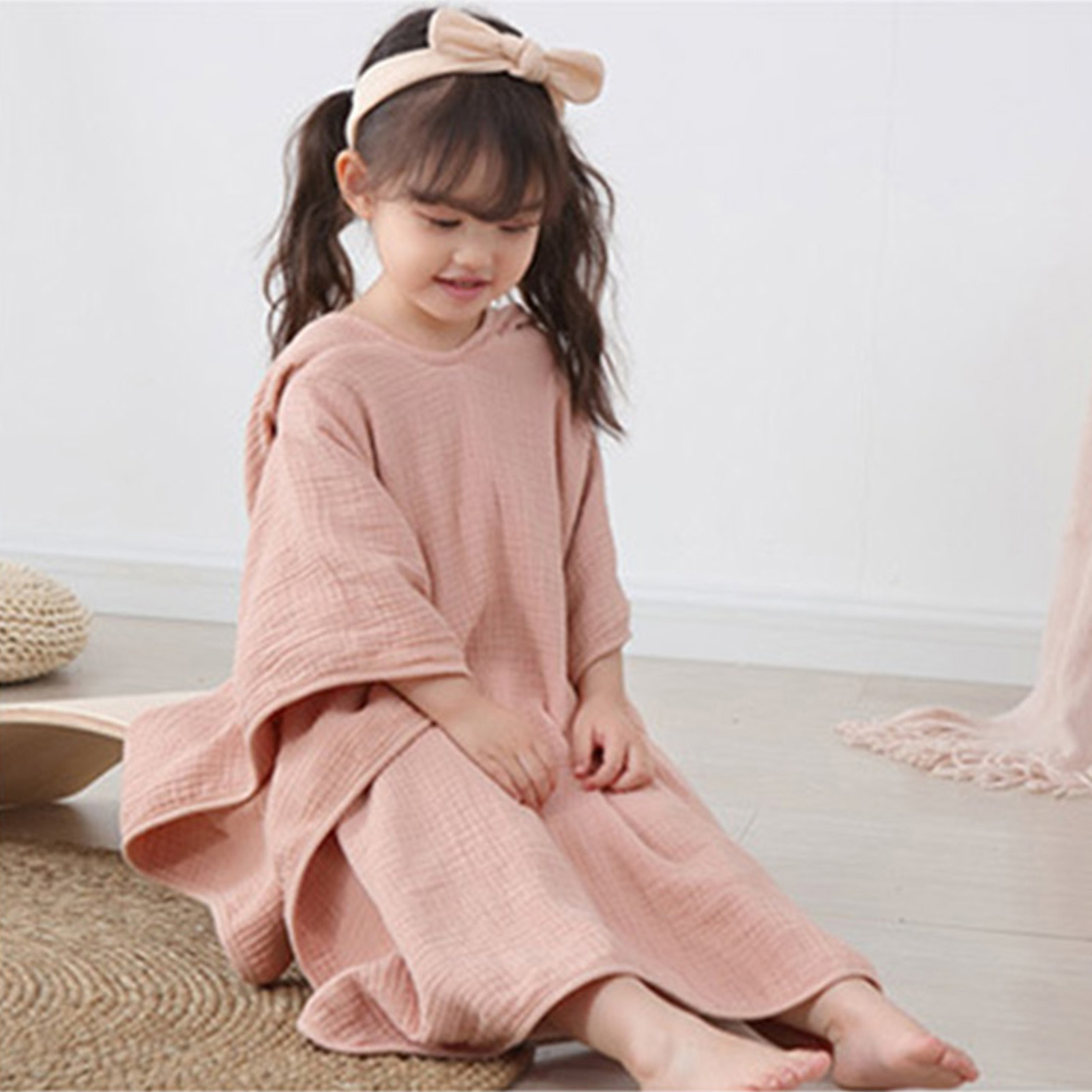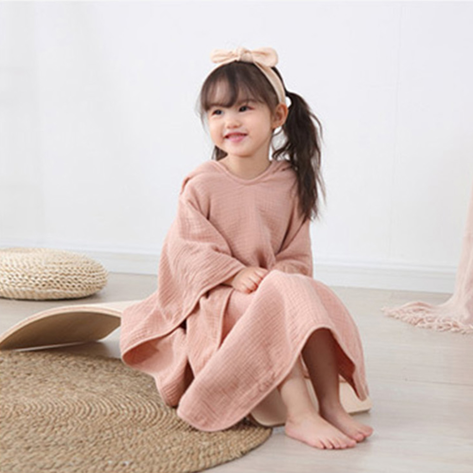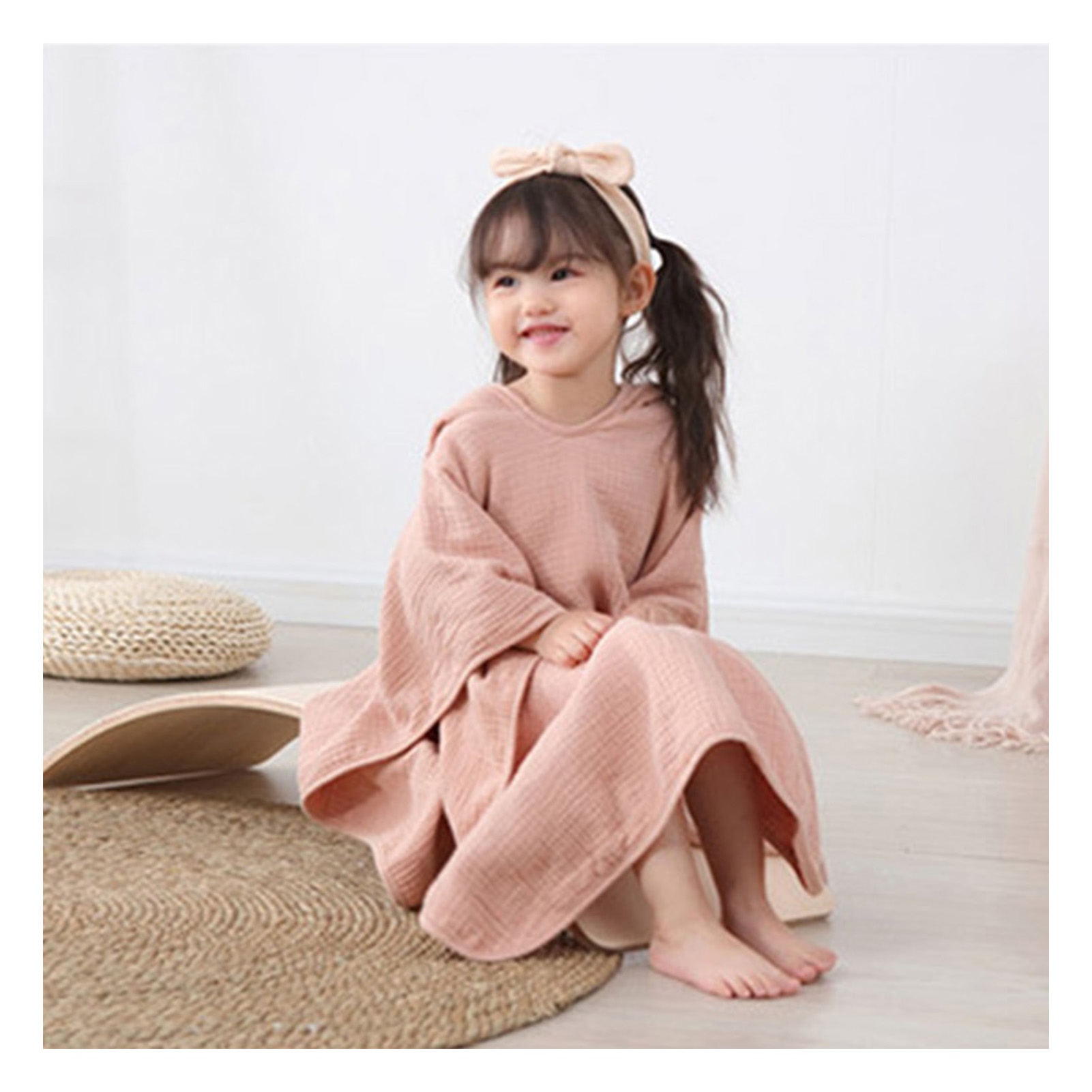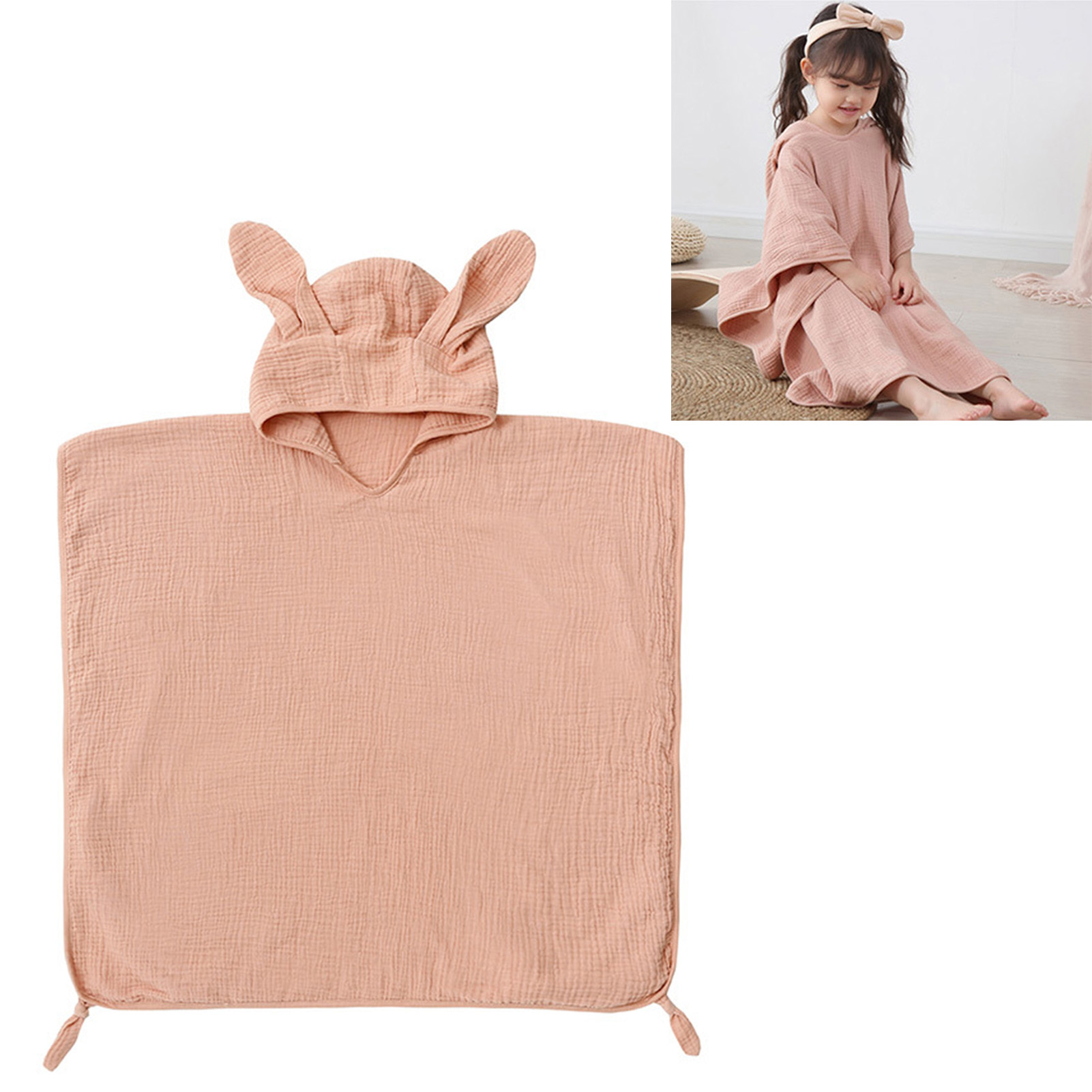Baby Hooded Towel Pure Cotton 4 Layers Water Absorbent Wearable Bath Towel for Children Dusty Pink Rabbit Ear