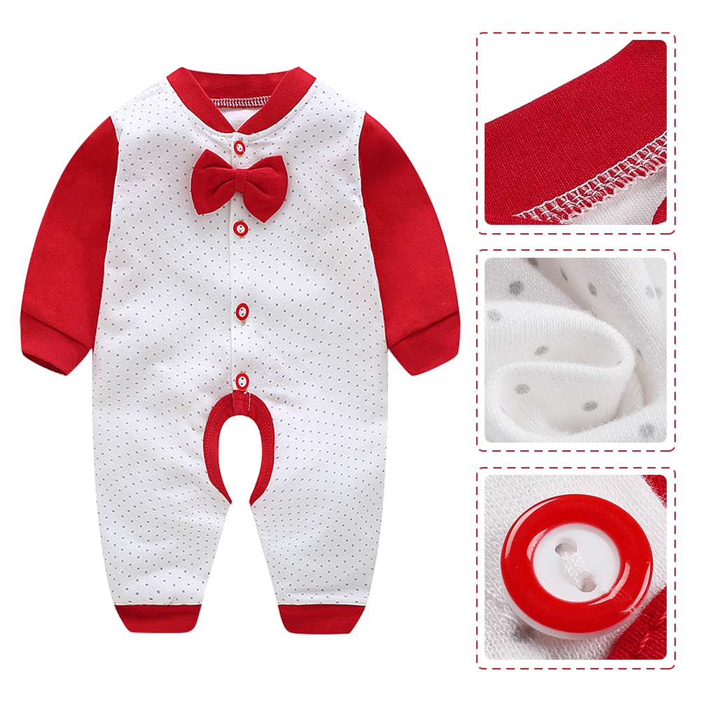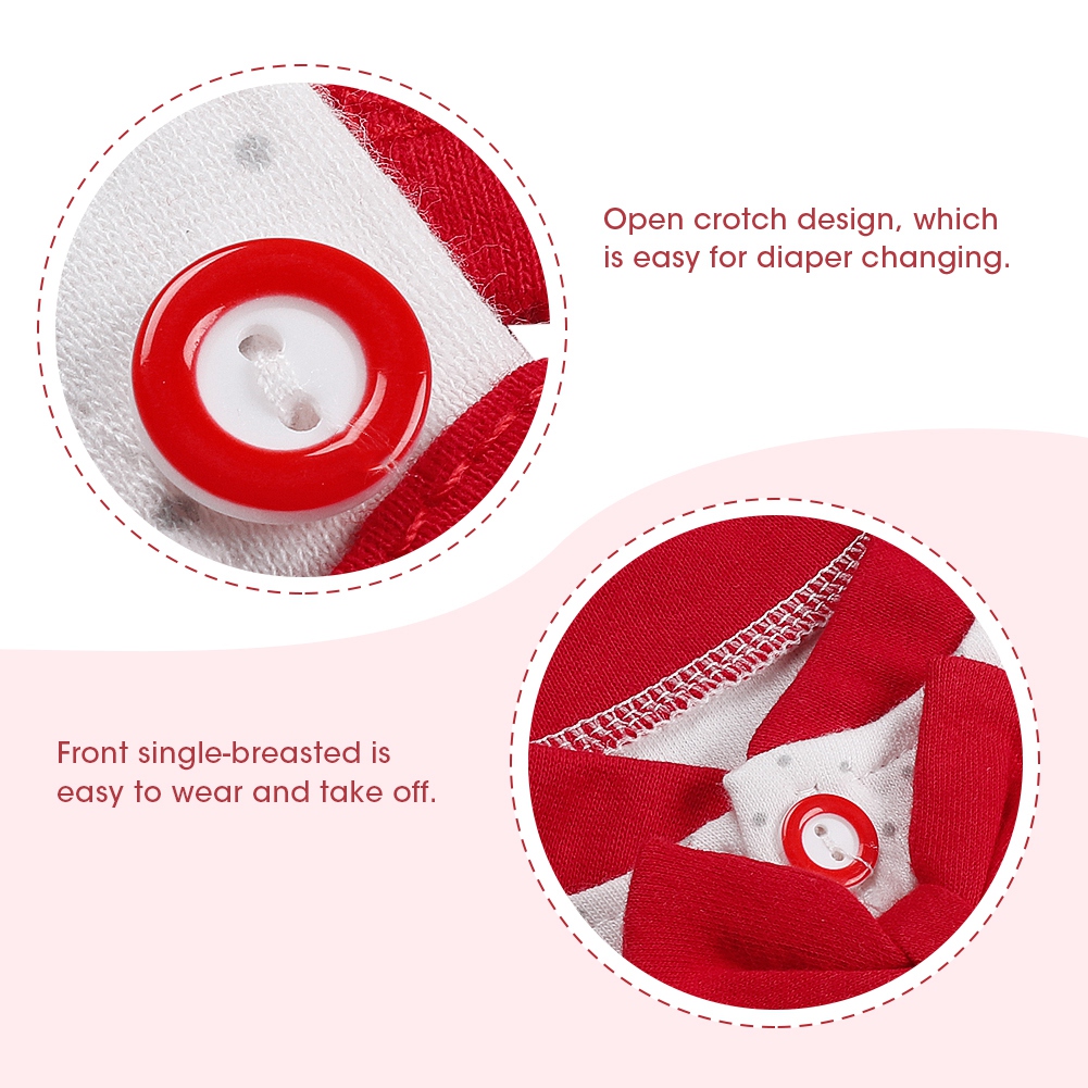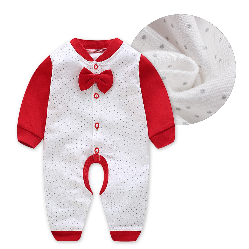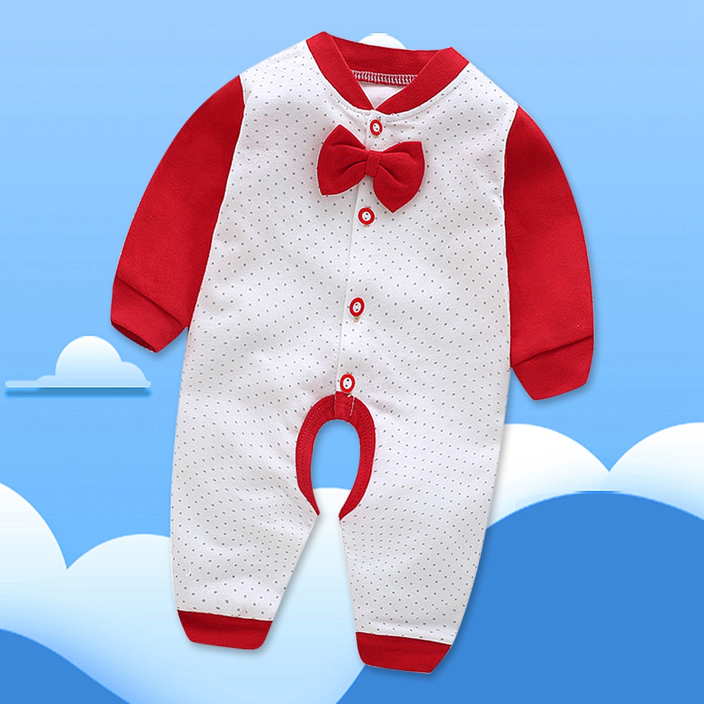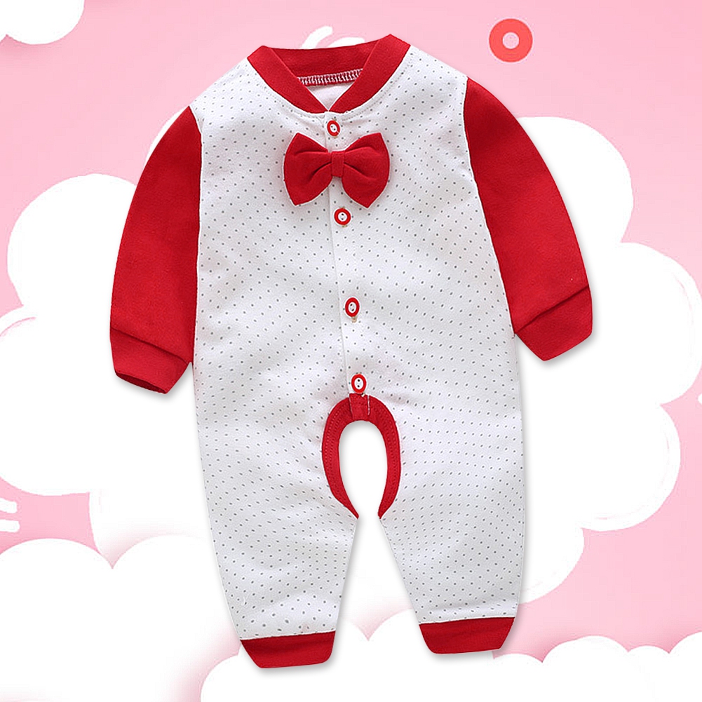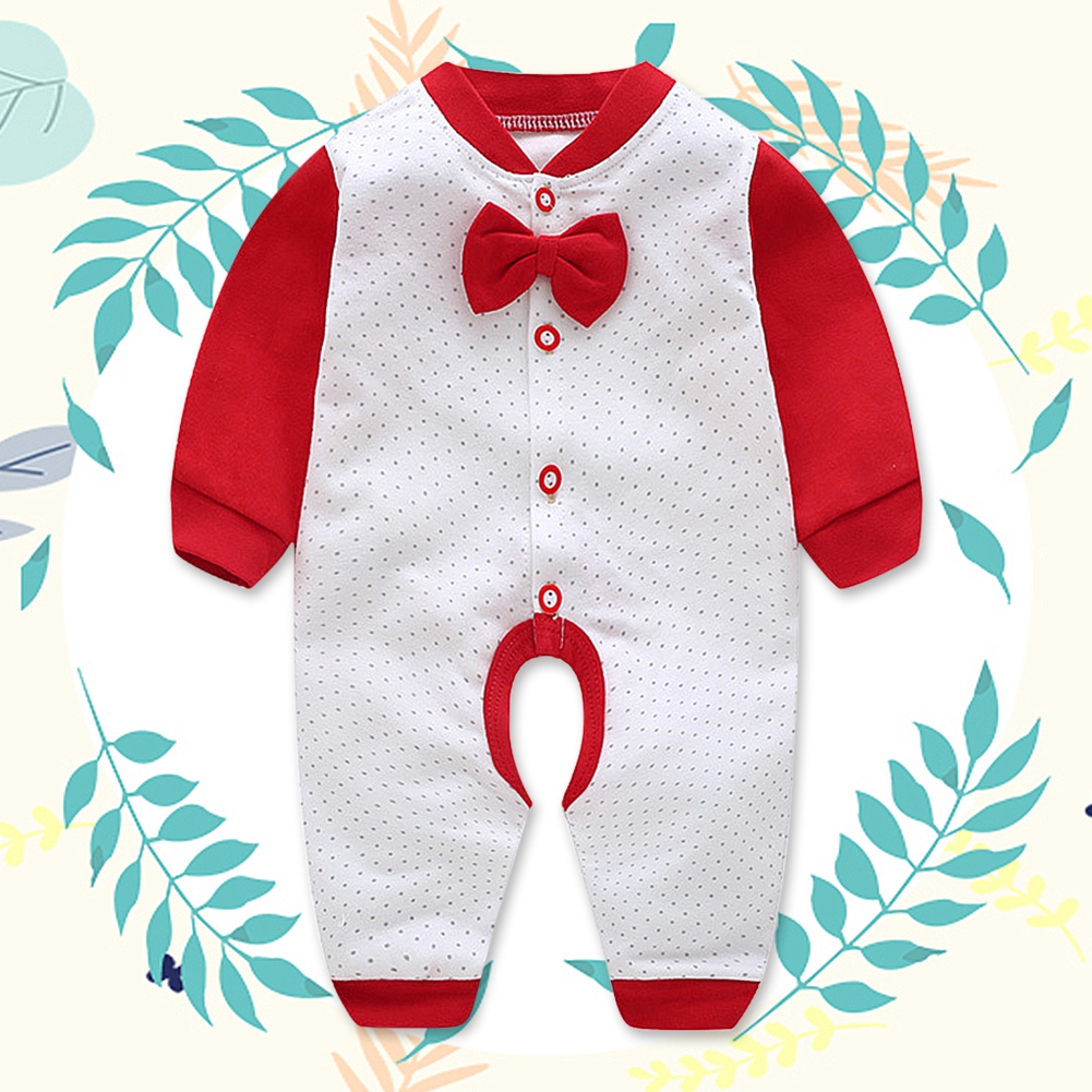 1、Premium cotton blend material, super soft, comfortable, skin-friendly and breathable. 2、Open crotch design, which is easy for diaper changing. 3、Stitching color jumpsuit with bow tie make your baby cute and unique. 4、Front single-breasted is easy to wear and take off. 5、Suitable for daily wear, family holidays, outdoor travel and other occasions.