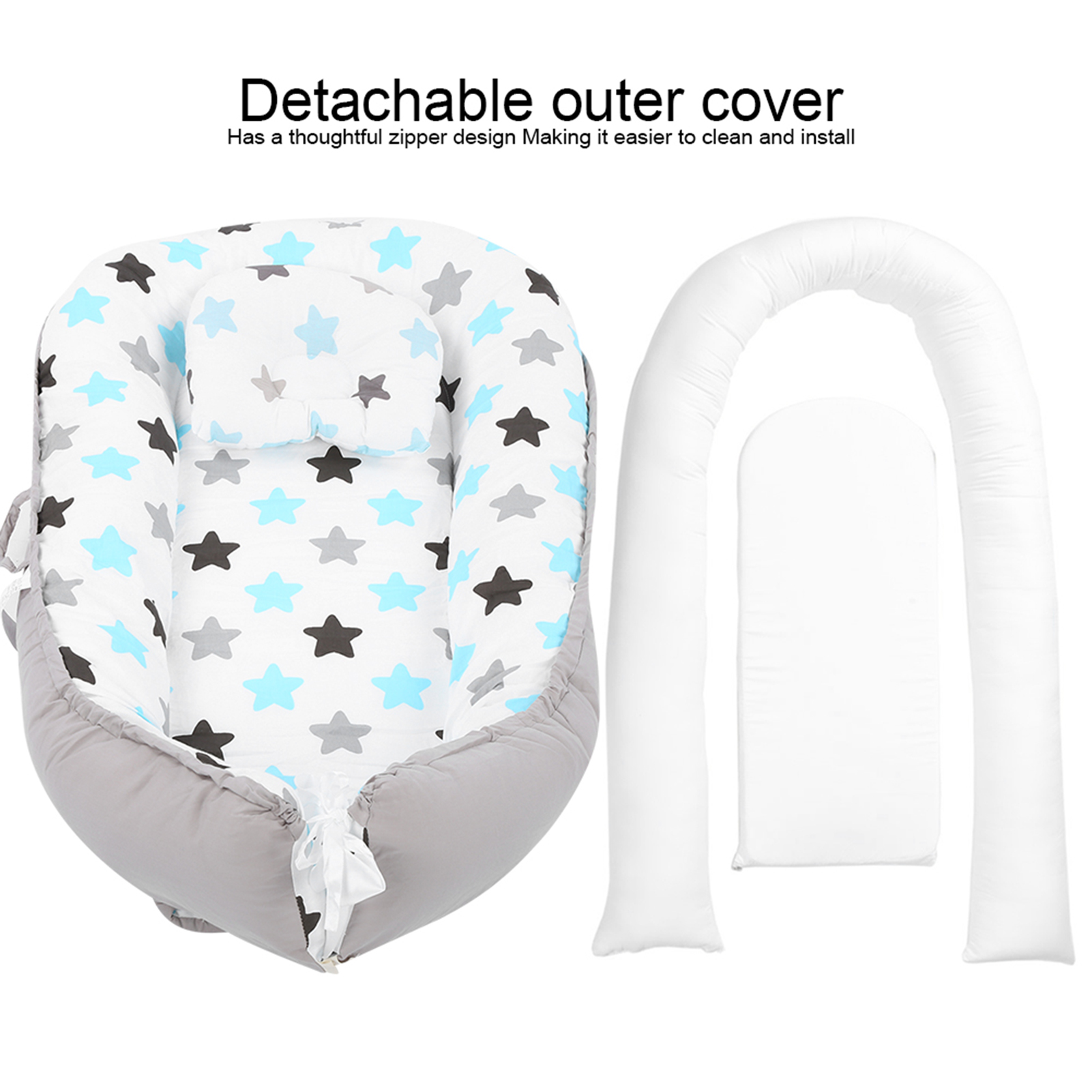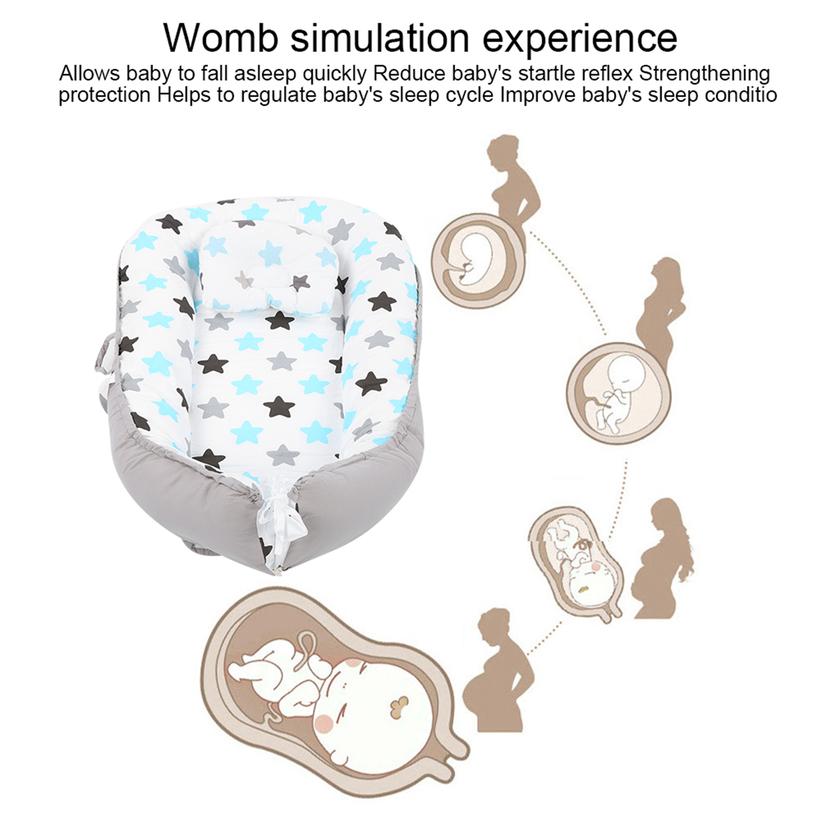 1、Womb simulation experience allows baby to fall asleep quickly and reduce baby's startle reflex. 2、Strengthening protection helps to regulate baby's sleep cycle and improve baby's sleep condition. 3、Foldable, removable and washable, breathable and comfortable, cotton is skin‑friendly. 4、Detachable outer cover and has a thoughtful zipper design, making it easier to clean and install. 5、Thick cotton material, breathable and spine protection, baby sleeps comfortably.