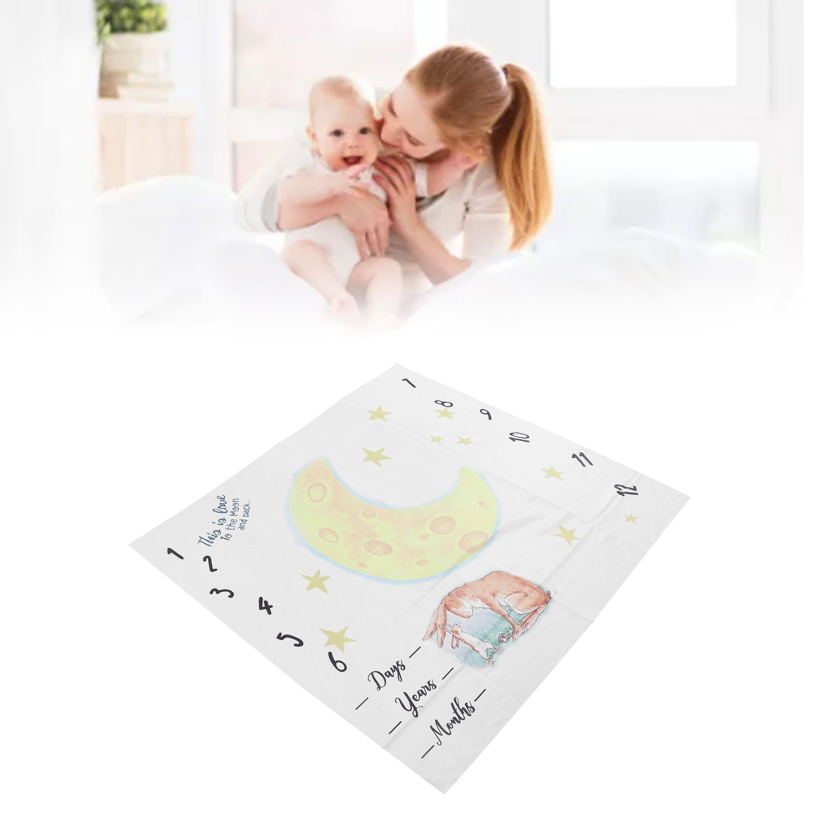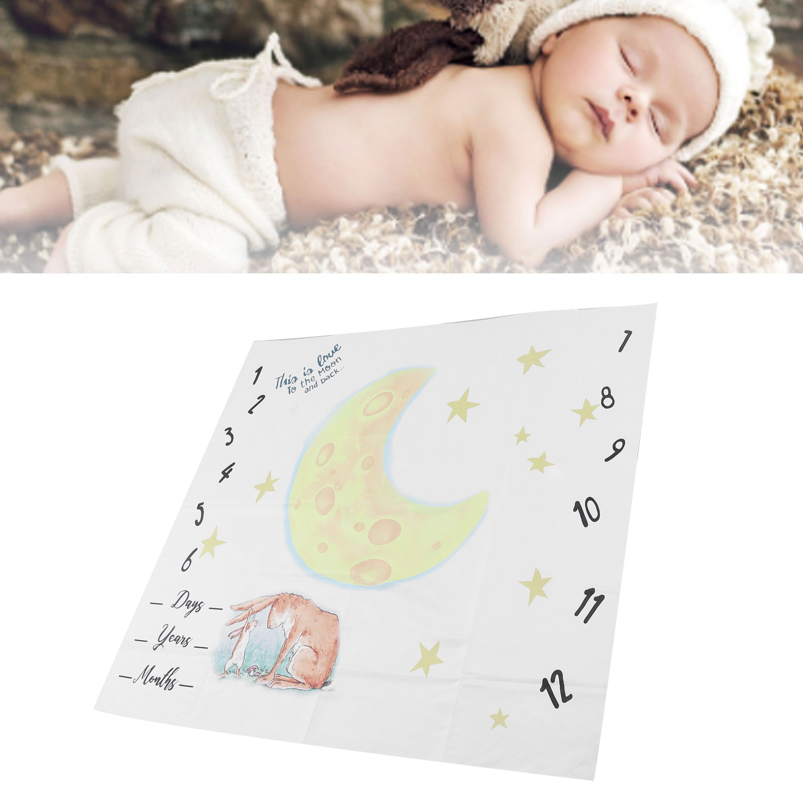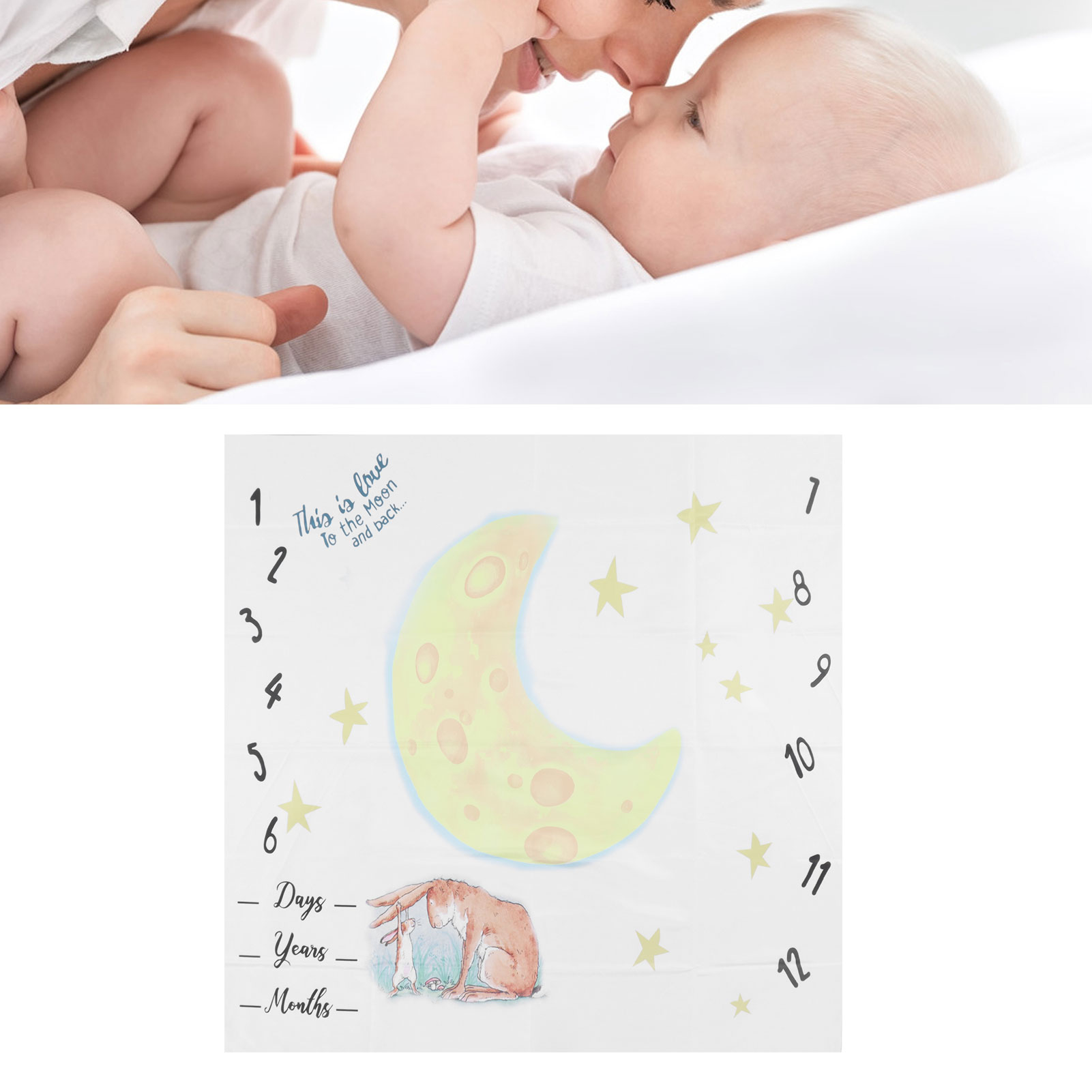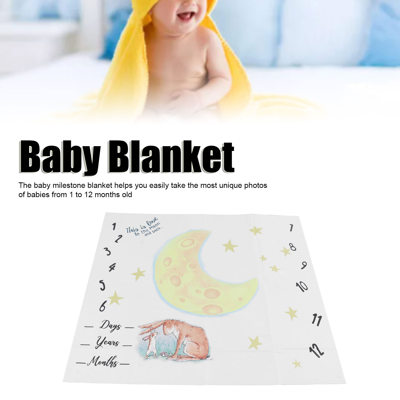 1、UNIQUE STYLE: The baby milestone blanket helps you easily take the most unique photos of babies from 1 to 12 months old 2、DIY MAKING: You can DIY milestone blanket to make your own photo props according to your preferences 3、CUTE DESIGN: The baby milestone blanket has cute moon bunny patterns and bright colors, which can easily attract the baby's attention 4、DURABLE and RELIABLE: The milestone blanket is made of cloth, which is durable and reliable. The baby's monthly photos can be decorated with photographic backgrounds 5、SCOPE of APPLICATION: This cute blanket can be an ideal choice for baby showers and gifts for pregnant women, is suitable for both male and female babies