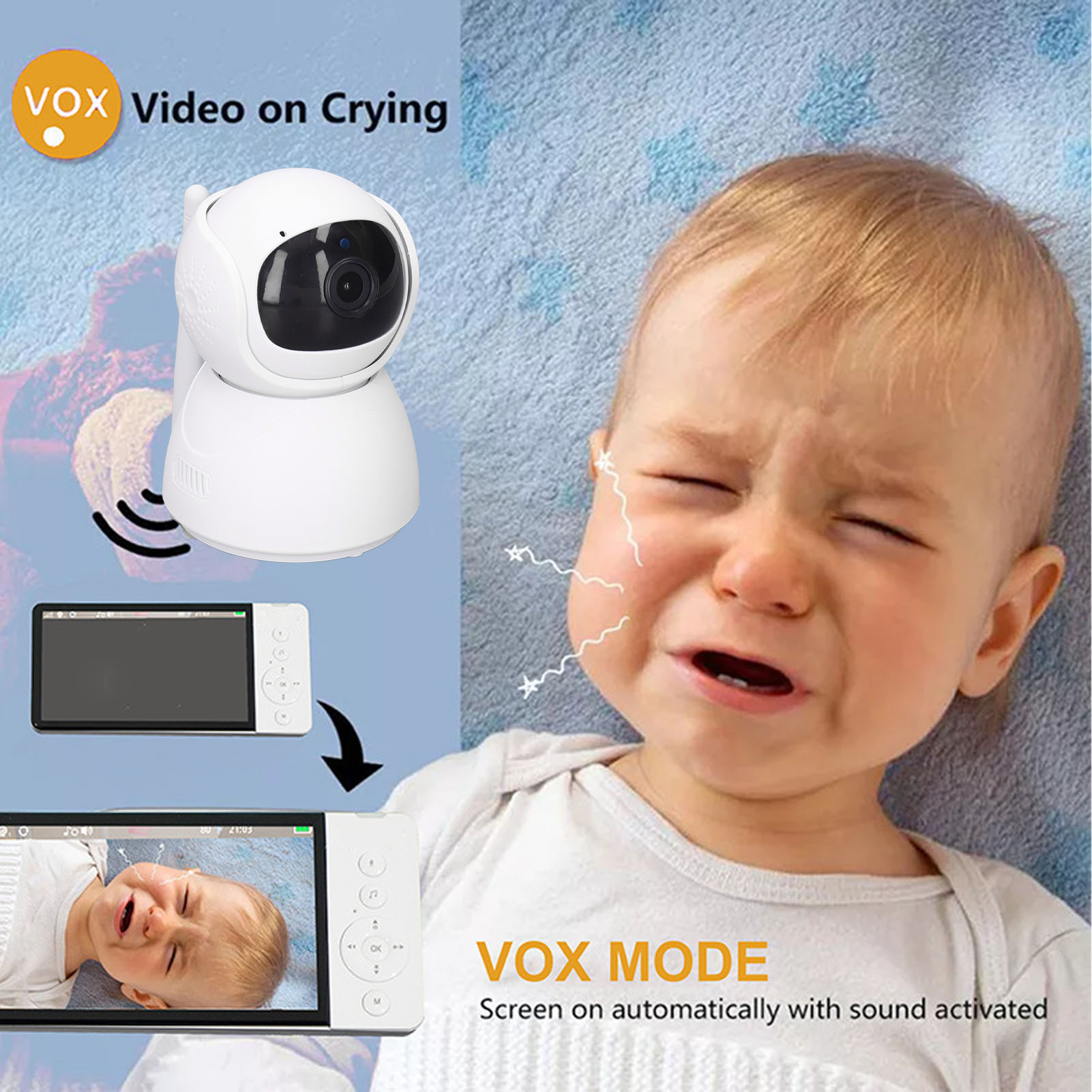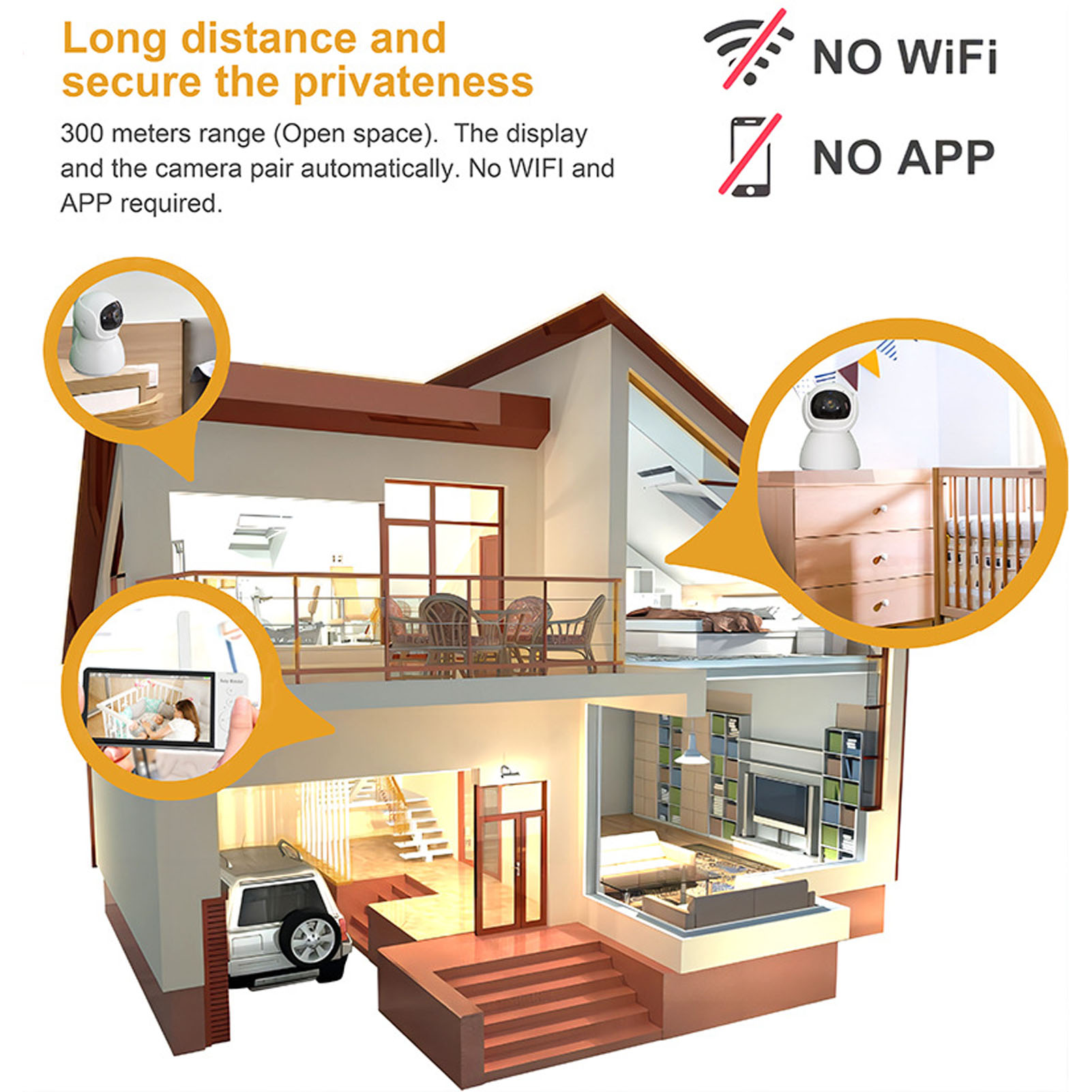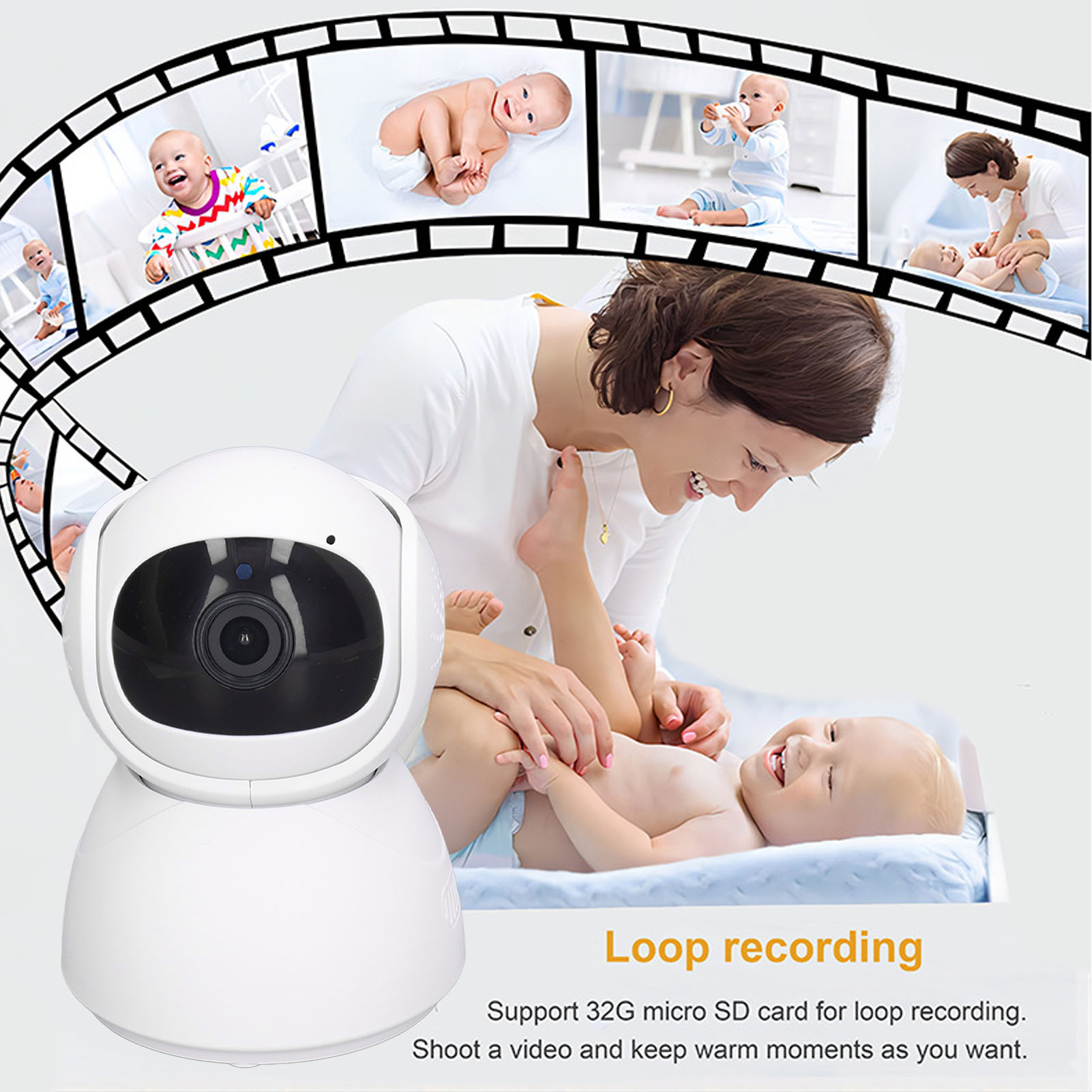 1、720P HD DISPLAY: Experience clear visuals with our 720P high definition display. Monitor your baby in real time with ease, ensuring their safety and well being. 2、PAN TILT CAMERA: Baby monitor features a 120° vertical and 355° horizontal rotation, allowing you to adjust the camera to the perfect angle. Maintain a full view of your baby room and ensure their safety from every direction. 3、TWO WAY TALK: Stay connected with your baby through the built in microphone and speaker. Easily record precious moments and engage in a two way conversation with your little one, providing comfort and reassurance. 4、NIGHT VISION: Baby monitor automatically switches to night vision mode in low light or darkness, providing clear monitoring of your baby sleep patterns and ensuring their safety throughout the night. 5、CONVENIENT STORAGE: Increase your storage capacity with a memory card (up to 64GB, not included), allowing you to easily review and share the recorded video footage of your baby's precious moments.