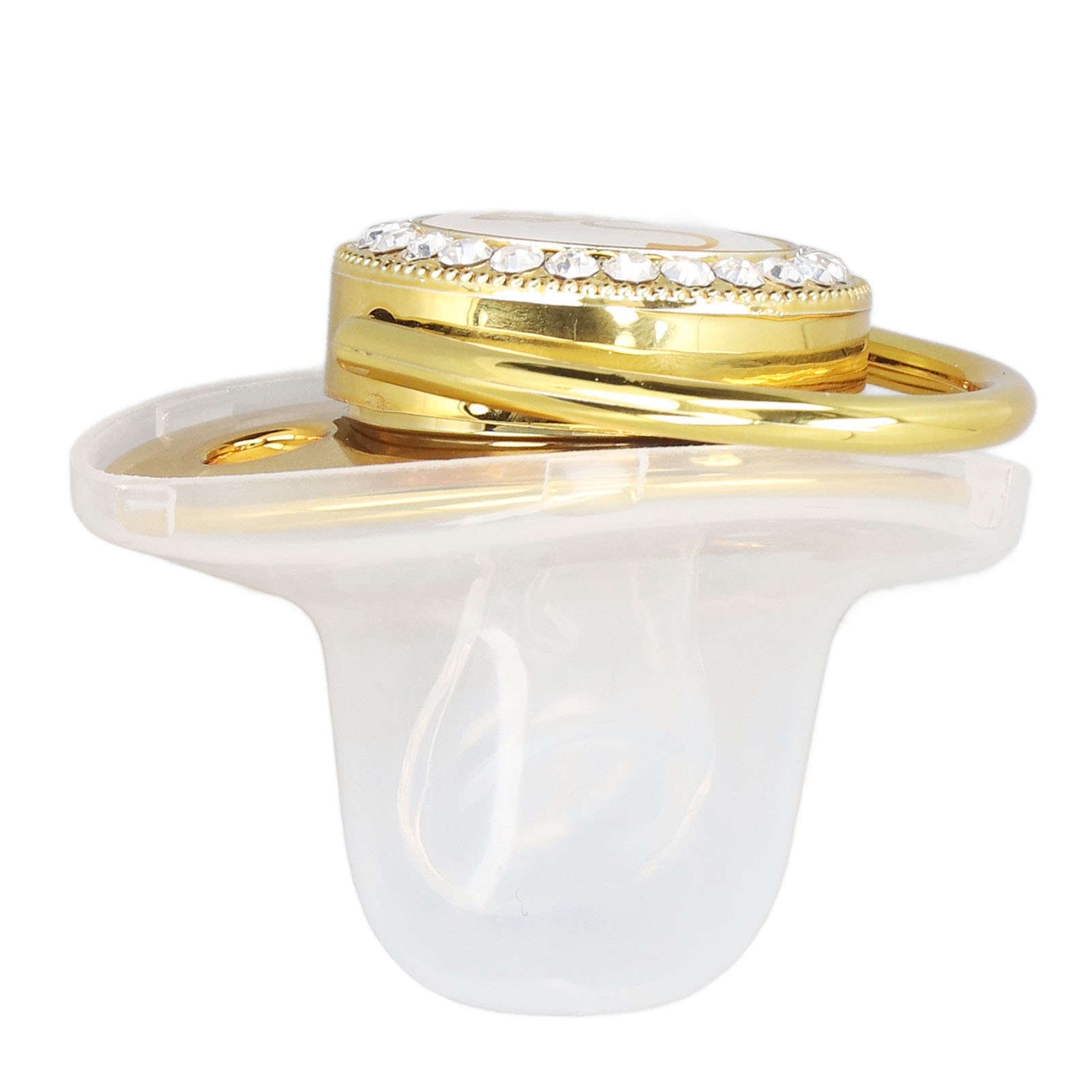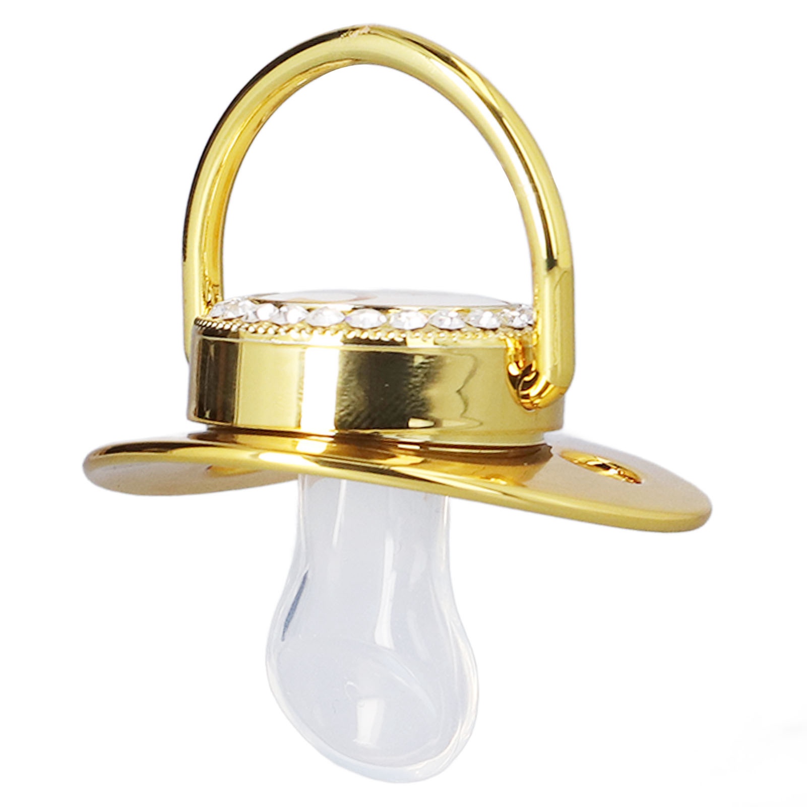 1、Soothe Your Baby: The baby pacifier adopts a one piece seamless design, easy to clean, can soothe your baby when they cry, simple and practical. 2、Beautiful Appearance: Crown shape, letter pattern design, inlaid with rhinestones, bright and delicate color, overall looks exquisite and stylish, suitable for baby. 3、Ergonomic And Safe: The golden pacifier adopts mellow design, which is ergonomic and reduces friction with the nose, safe and reliable for baby to use. 4、Portable Design: Wonderful and meaningful gift for baby. Light weight and in small size, easy to store and carry, suitable for home and travel use. 5、PP, Silicone And Alloy: Infant pacifier adopts PP, silicone and alloy material, safe and eco friendly, odorless, stable and wear resistant, durable for use.