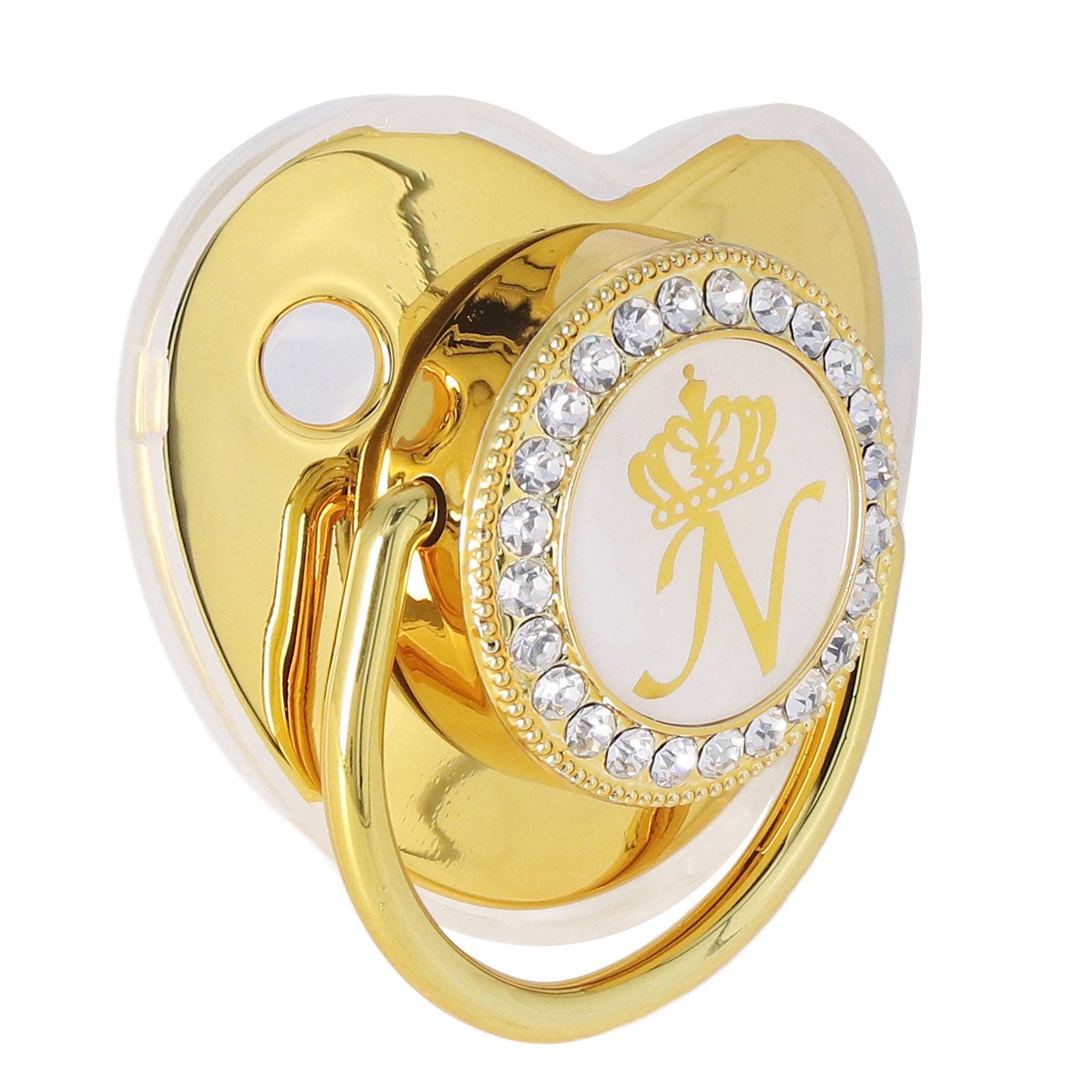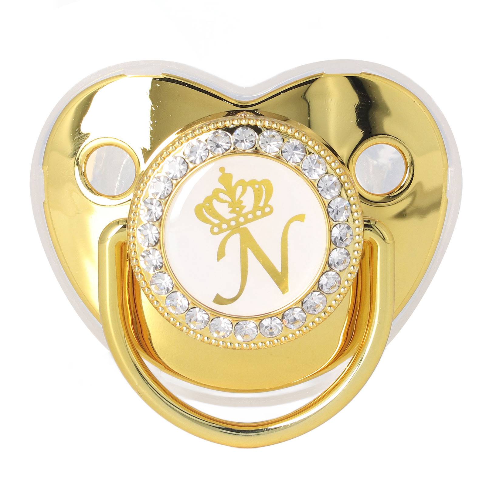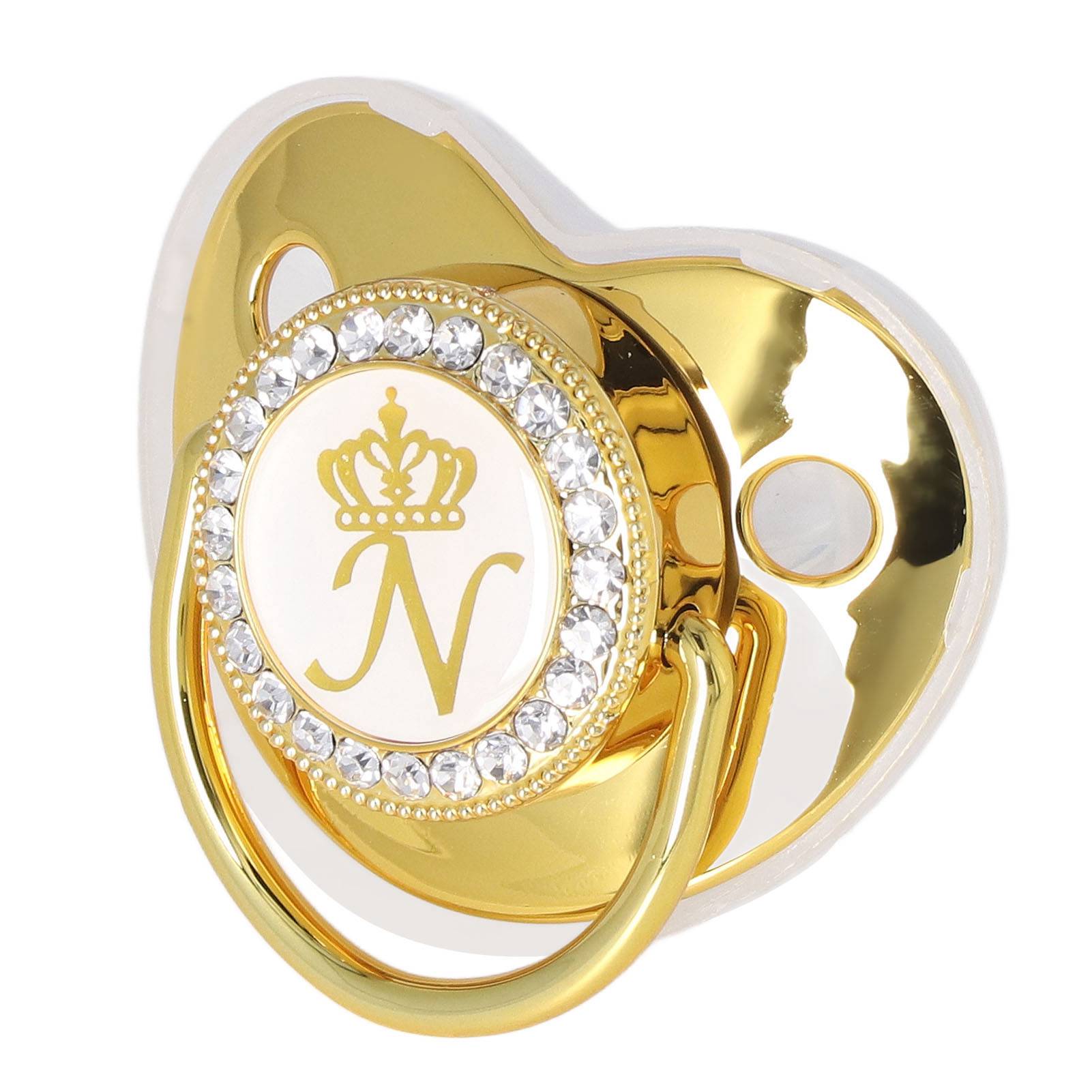 Baby Pacifier Infant Portable Exquisite Golden Crown Letter Rhinestone Pacifier with Chain Clip Letter N