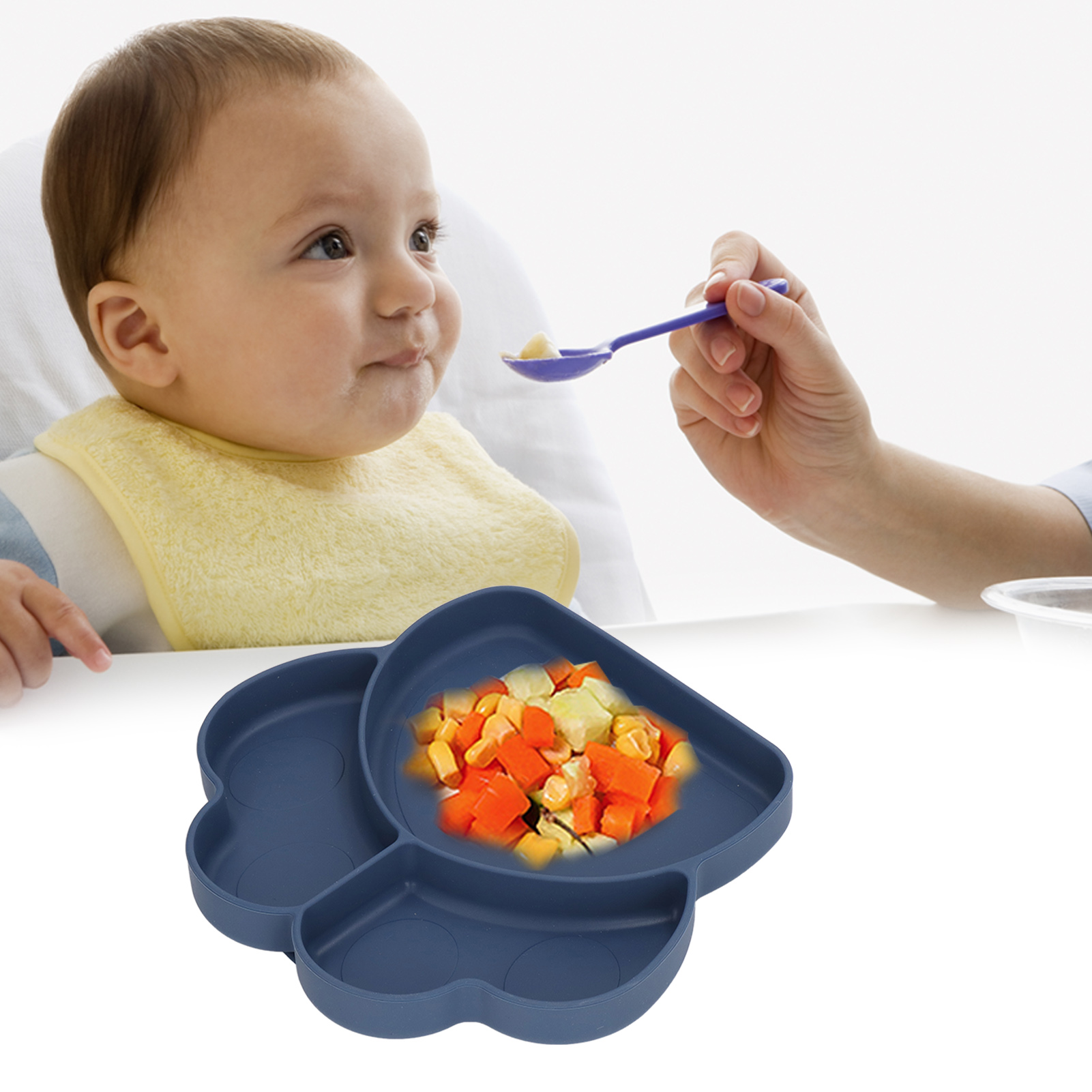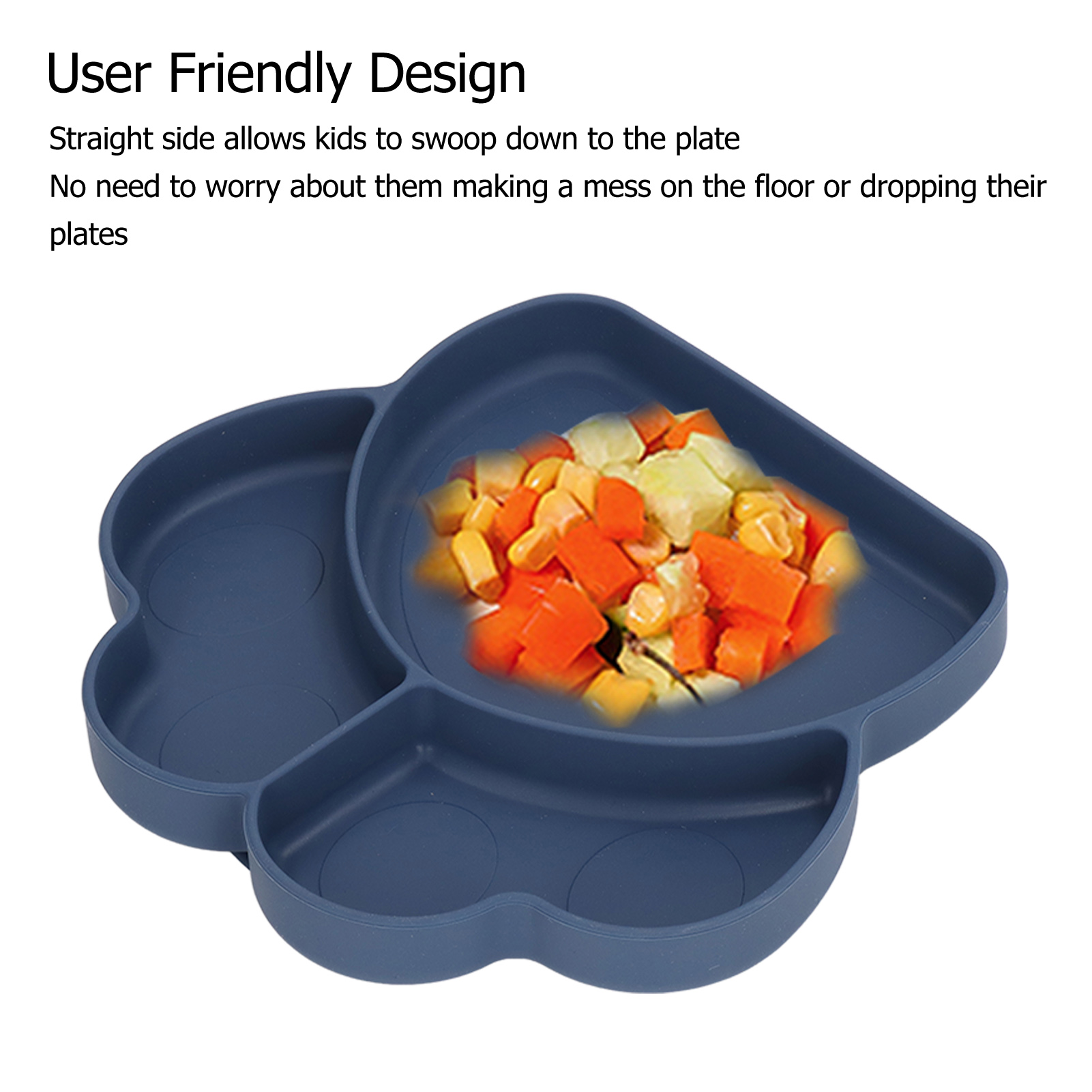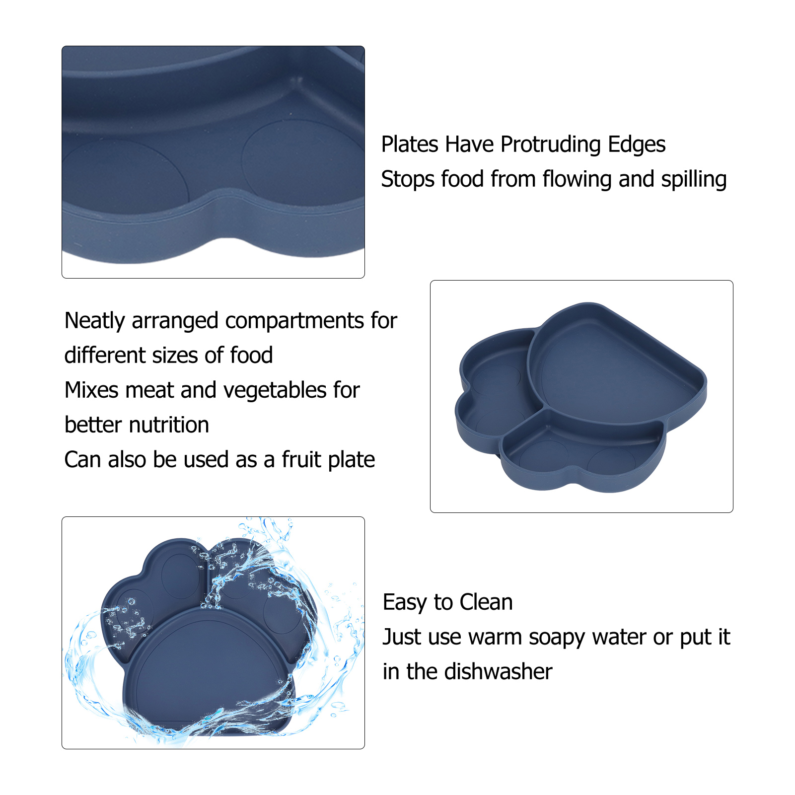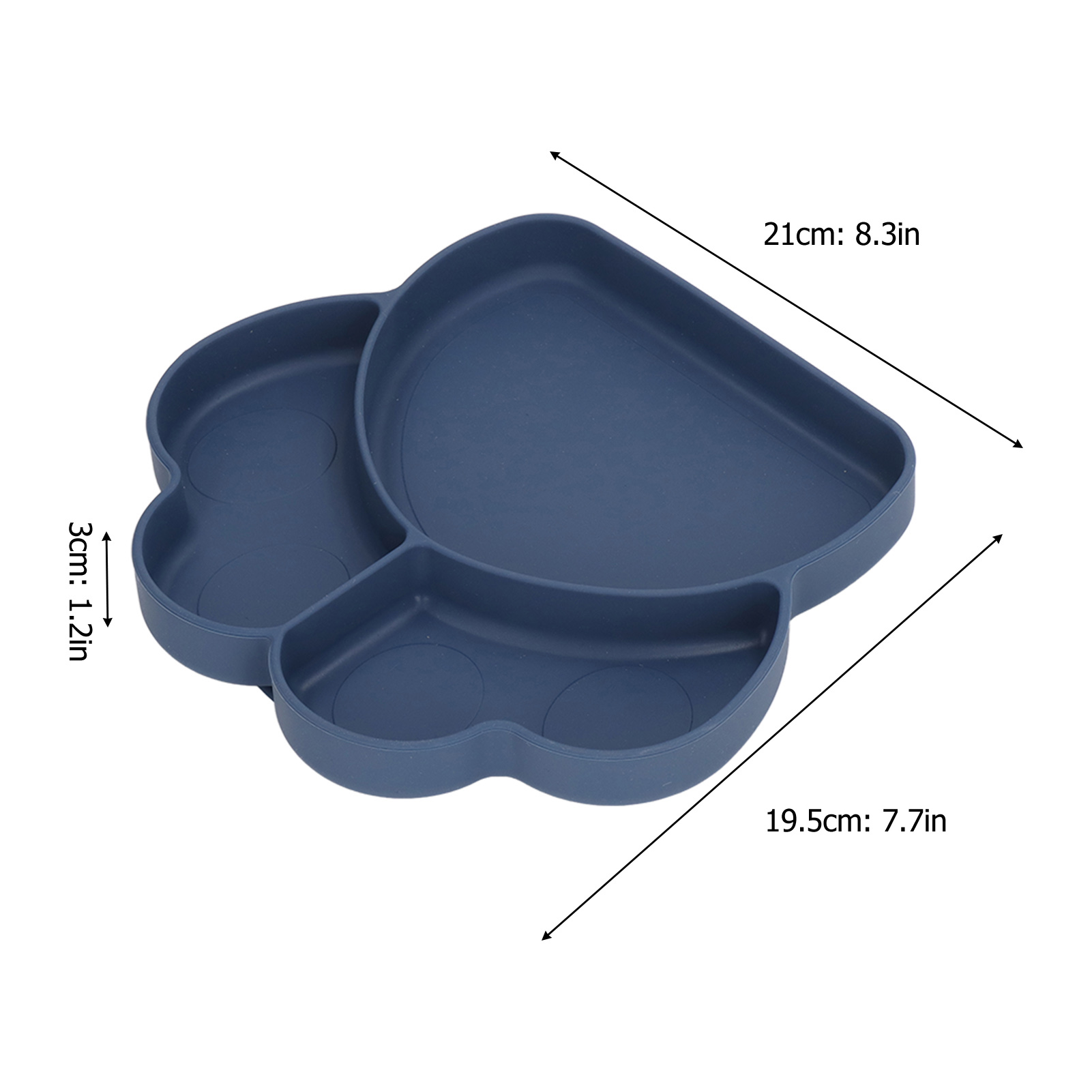 1、Non Slip: Baby suction plate has a suction base to ensure it stays in place, perfect for use on most high chair trays or tables and practical for kids learning to feed themselves. 2、User Friendly Design: Straight side allows kids to swoop down onto the plate without having to worry about them making a mess on the floor or dropping the plate. 3、Safe Material: Toddler plate is made of the premium silicone material, non toxic and non harm for direct food contact, please feel free to use it. Can also be used as a fruit plate. 4、Easy To Use: The protruding edge of the divided plate stops food from flowing and spilling. The size of the compartments are neatly arranged to hold different kinds of food. 5、Quick To Clean: Just use warm soapy water or put plate in the dishwasher. Silicone plate is stain resistant, do not absorb flavors, is heat resistant, dishwasher and microwave safe.