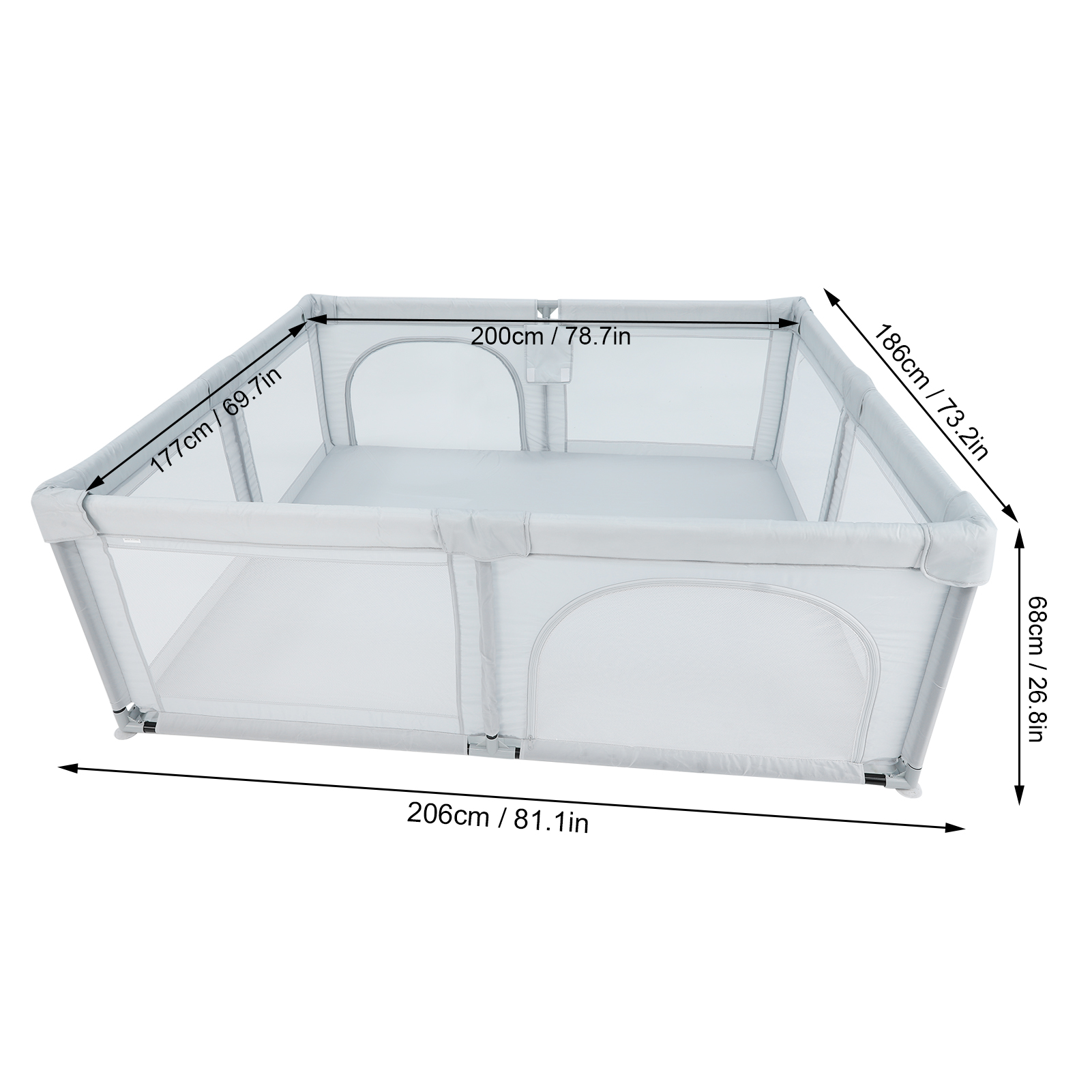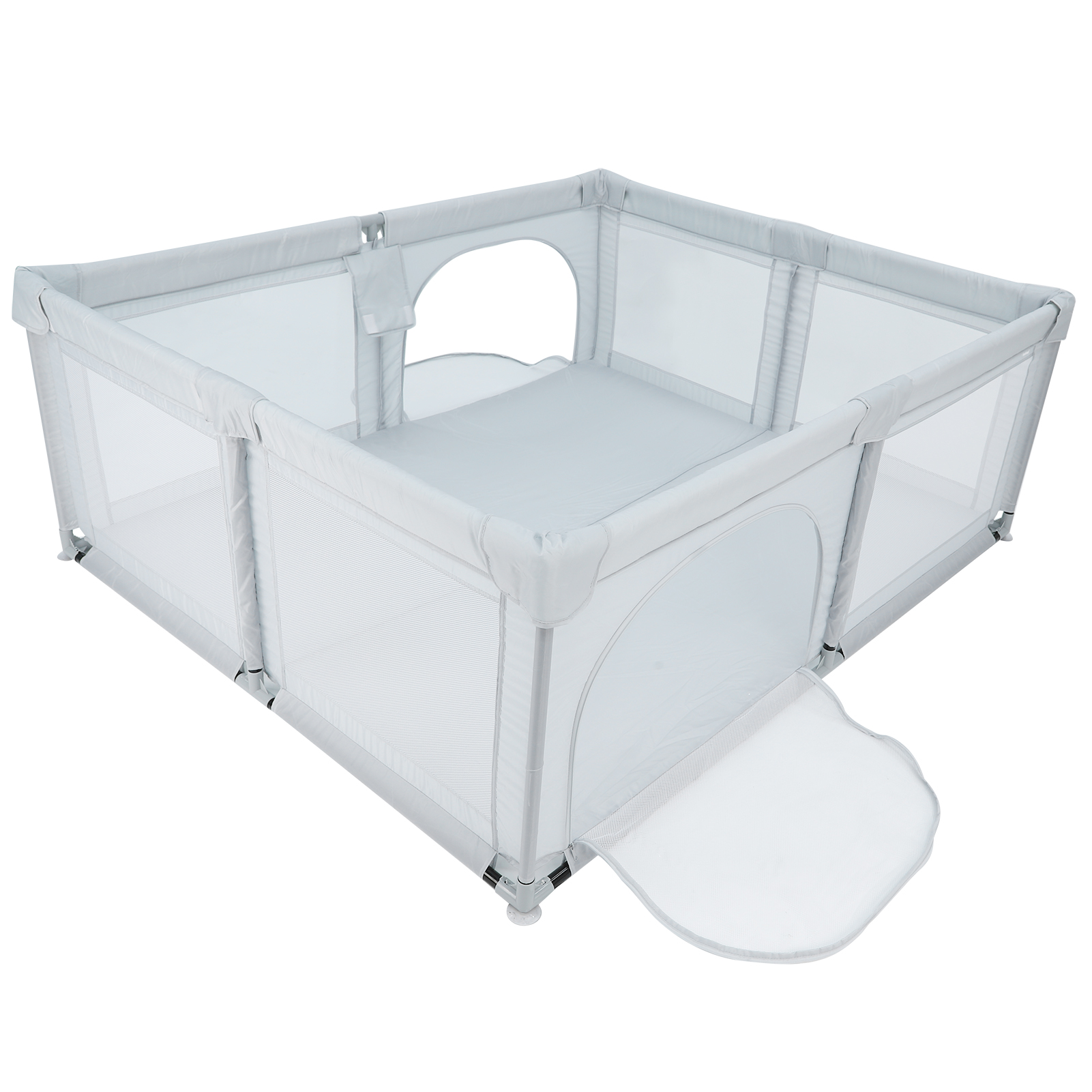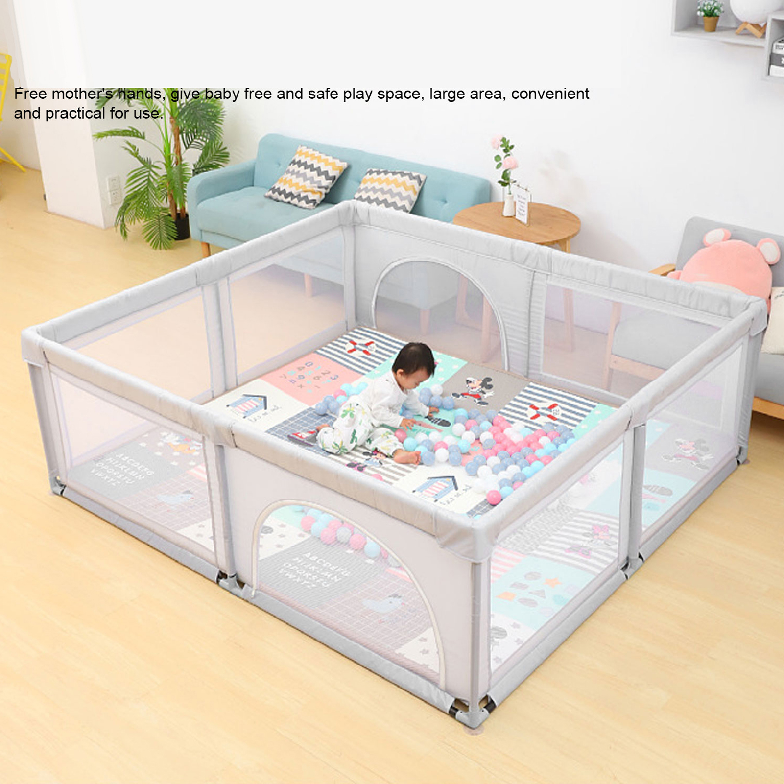 1、Free mother's hands, give baby free and safe play space, large area, convenient and practical for use. 2、Cotton cloth is covered around to prevent children from being injured by bumps. The external zipper prevents the baby from crawling out at will and causing accidental injuries. 3、Simple installation, no peculiar smell, and can be washed with water. High quality material, firm and durable. 4、Comes with a double crawling hole design to facilitate the baby's free entry and exit, make baby have fun. 5、The visualization of the four‑sided net allows mothers to observe the baby's activities at all times and feel more at ease.