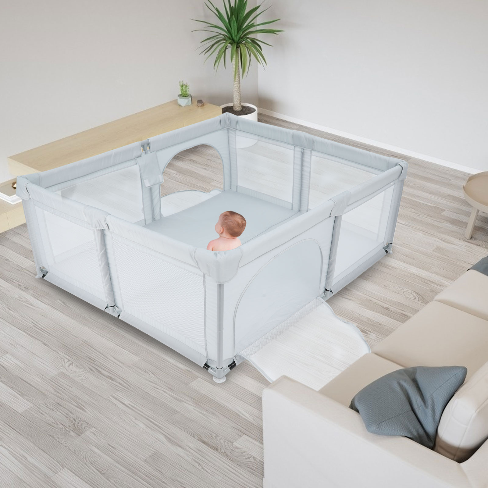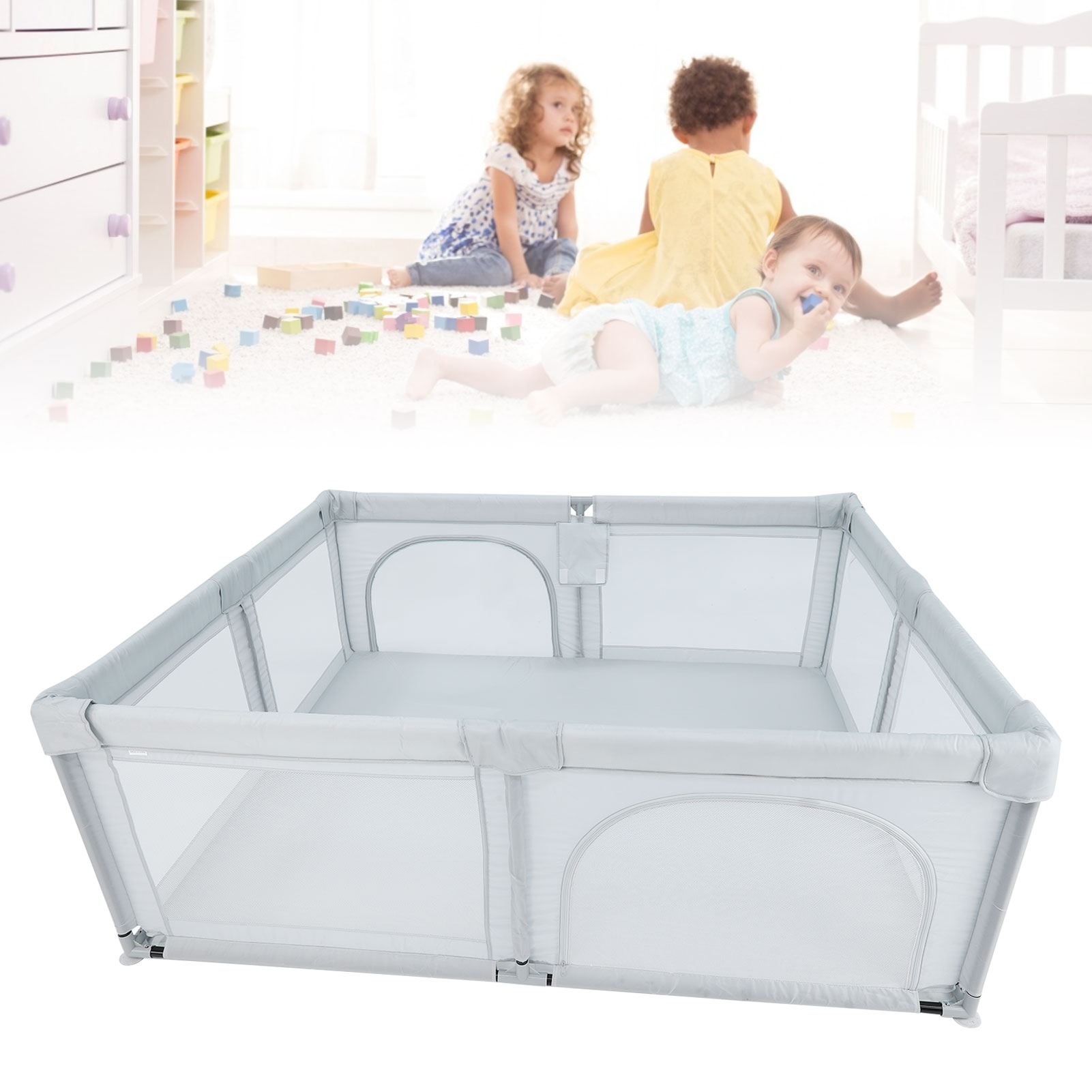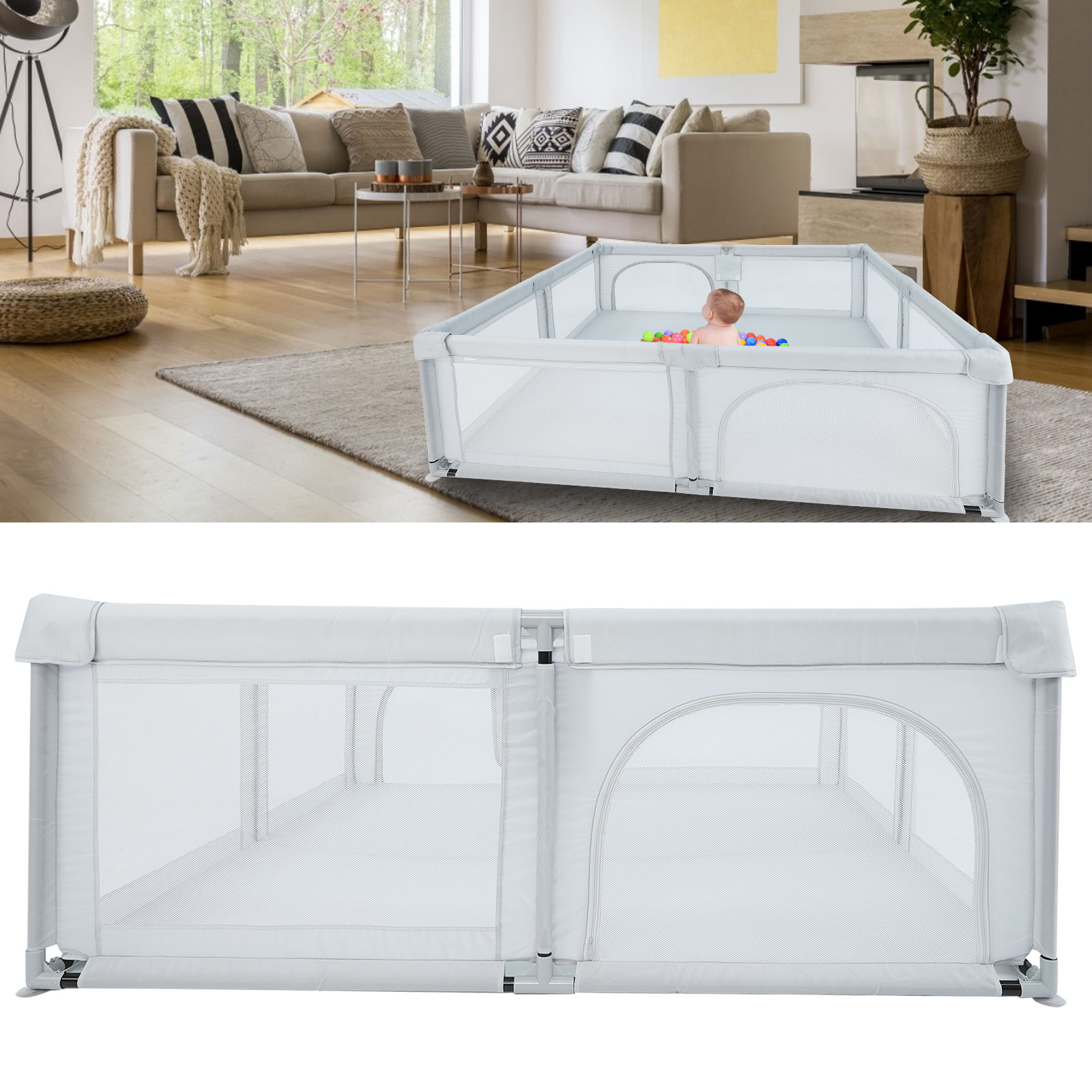 1、Free mother's hands, give baby free and safe play space, large area, convenient and practical for use. 2、Cotton cloth is covered around to prevent children from being injured by bumps. The external zipper prevents the baby from crawling out at will and causing accidental injuries. 3、Simple installation, no peculiar smell, and can be washed with water. High quality material, firm and durable. 4、Comes with a double crawling hole design to facilitate the baby's free entry and exit, make baby have fun. 5、The visualization of the four‑sided net allows mothers to observe the baby's activities at all times and feel more at ease.