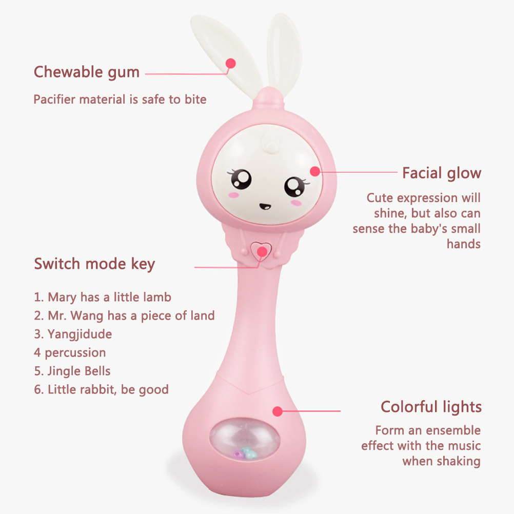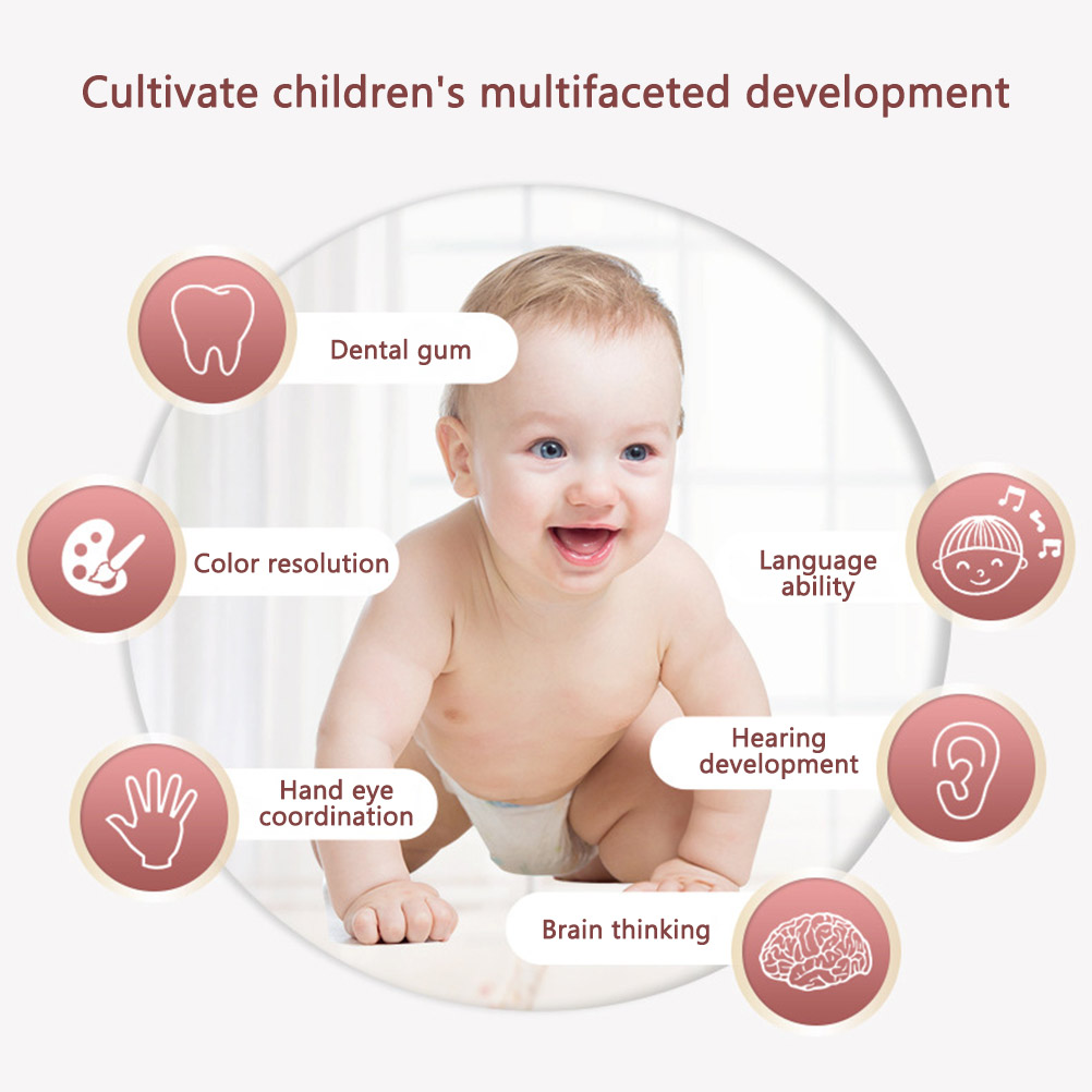 1、1. Baby rattle: The suitable size makes it easy to grasp for small hands, keep your baby's small hands active, and exercise your baby's grip and hand-eye coordination. 2、2. Baby toys: Little hands are active among these colorful figures, and your baby can explore patterns, textures and sounds. It is perfect for having fun at home or on the go. 3、3. Bright lights: The light of the face flickers, and the light of the transparent ball creates a soft, warm and beautiful effect. 4、4. Shaking: Colorful beads and music form a shaking effect to cultivate the baby's hearing development. 5、5. Vision development: Features soft light, bright colors, pearls are good for baby's vision. 6、6. Newborn gifts: Great gifts for Christmas, holidays, birthdays, Halloween, Thanksgiving and New Year.