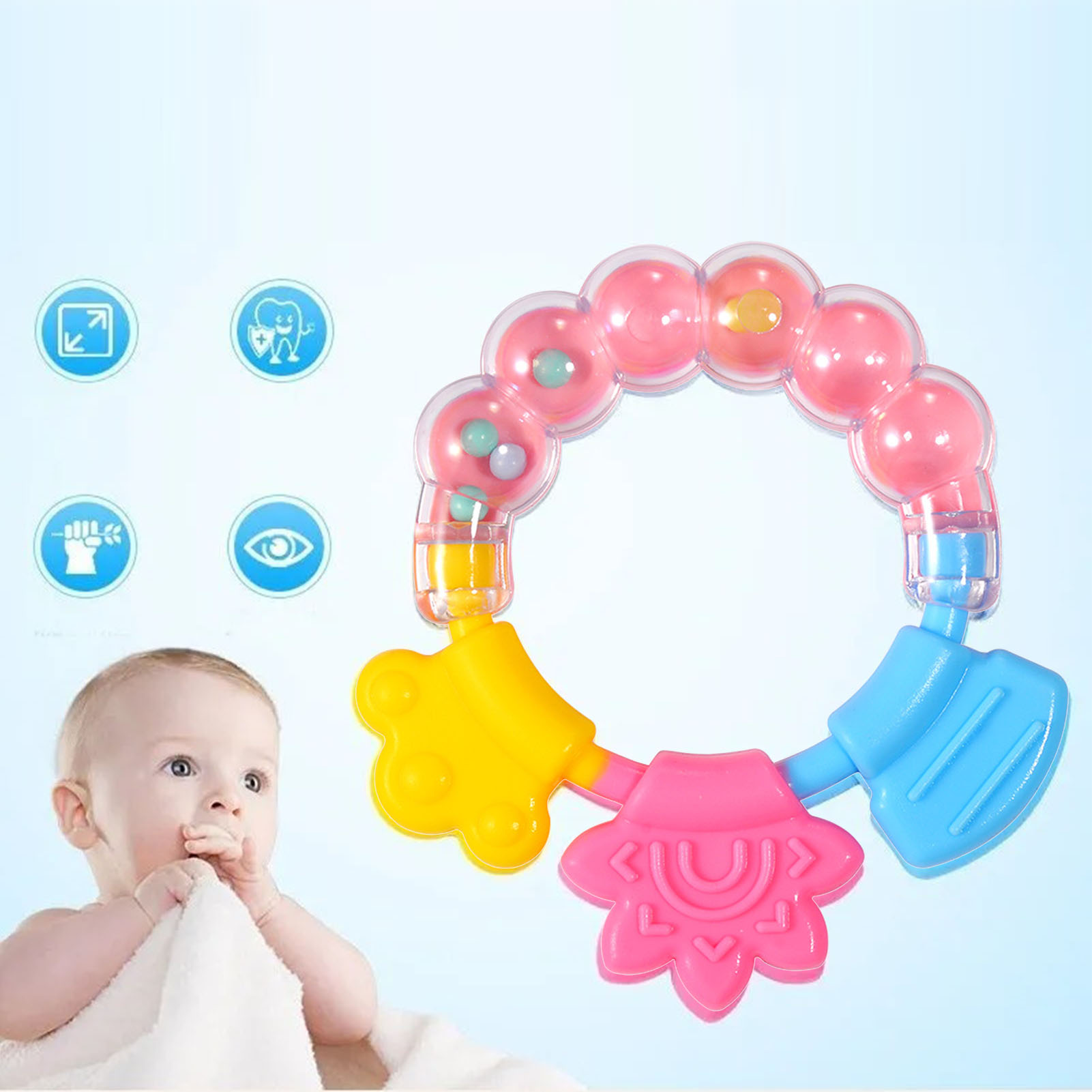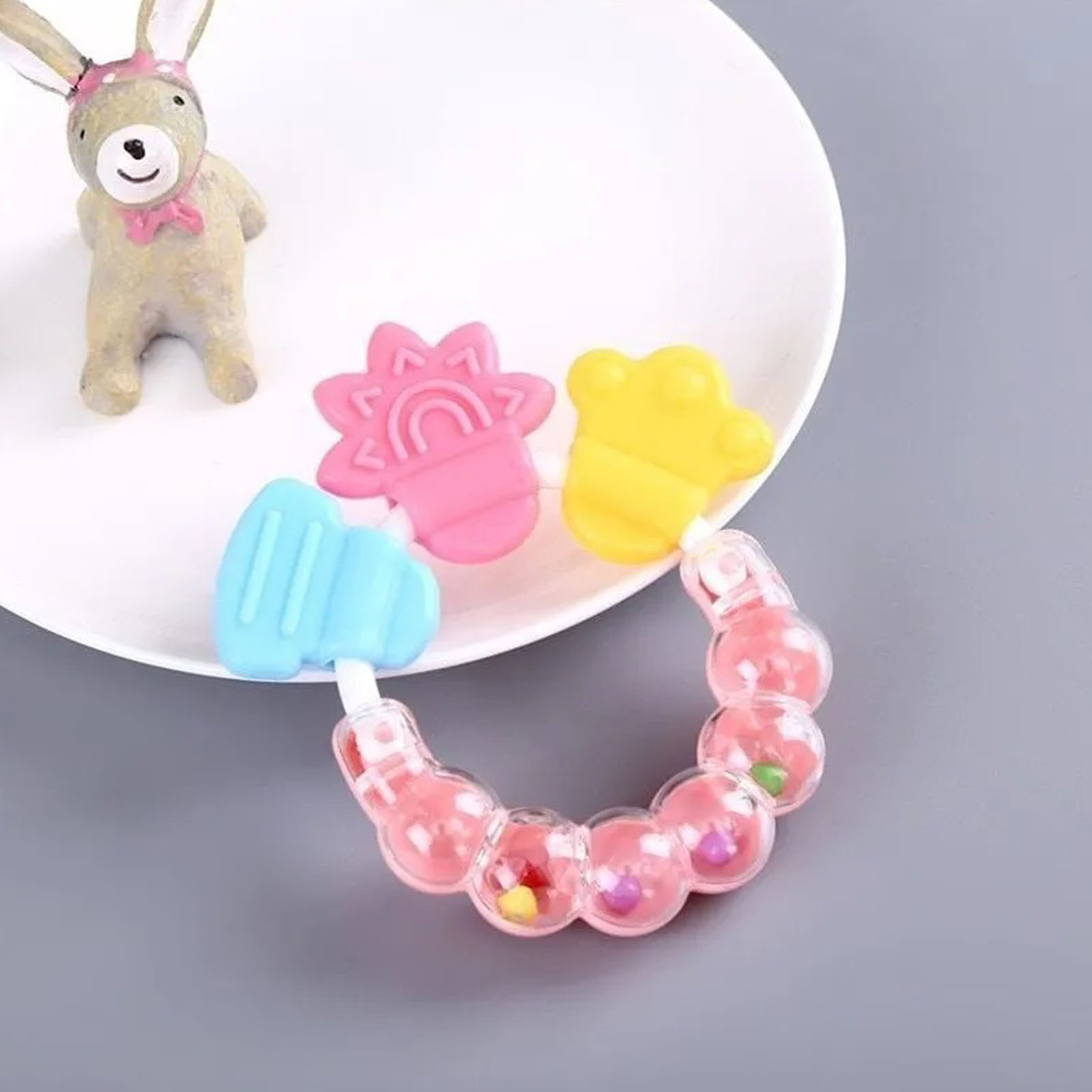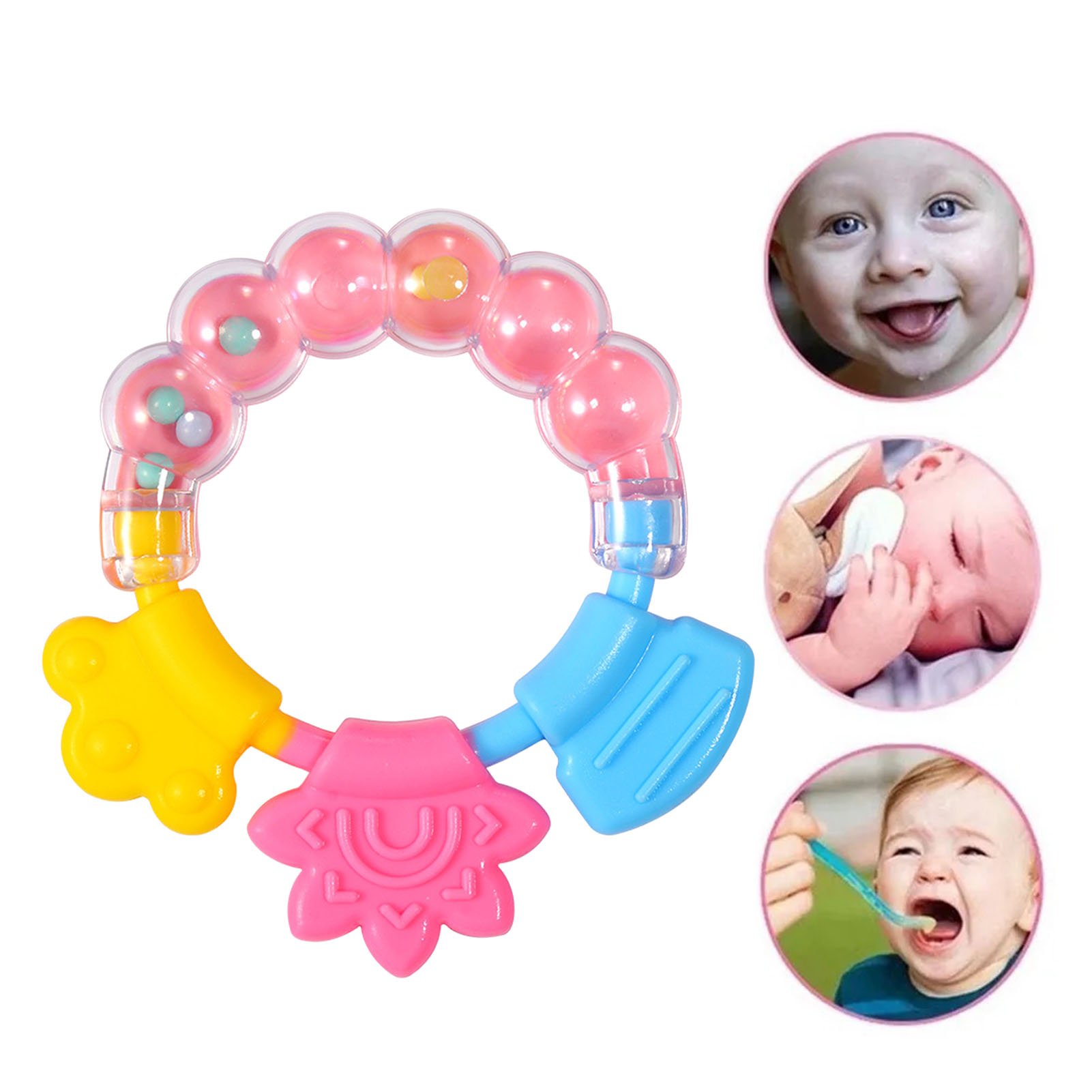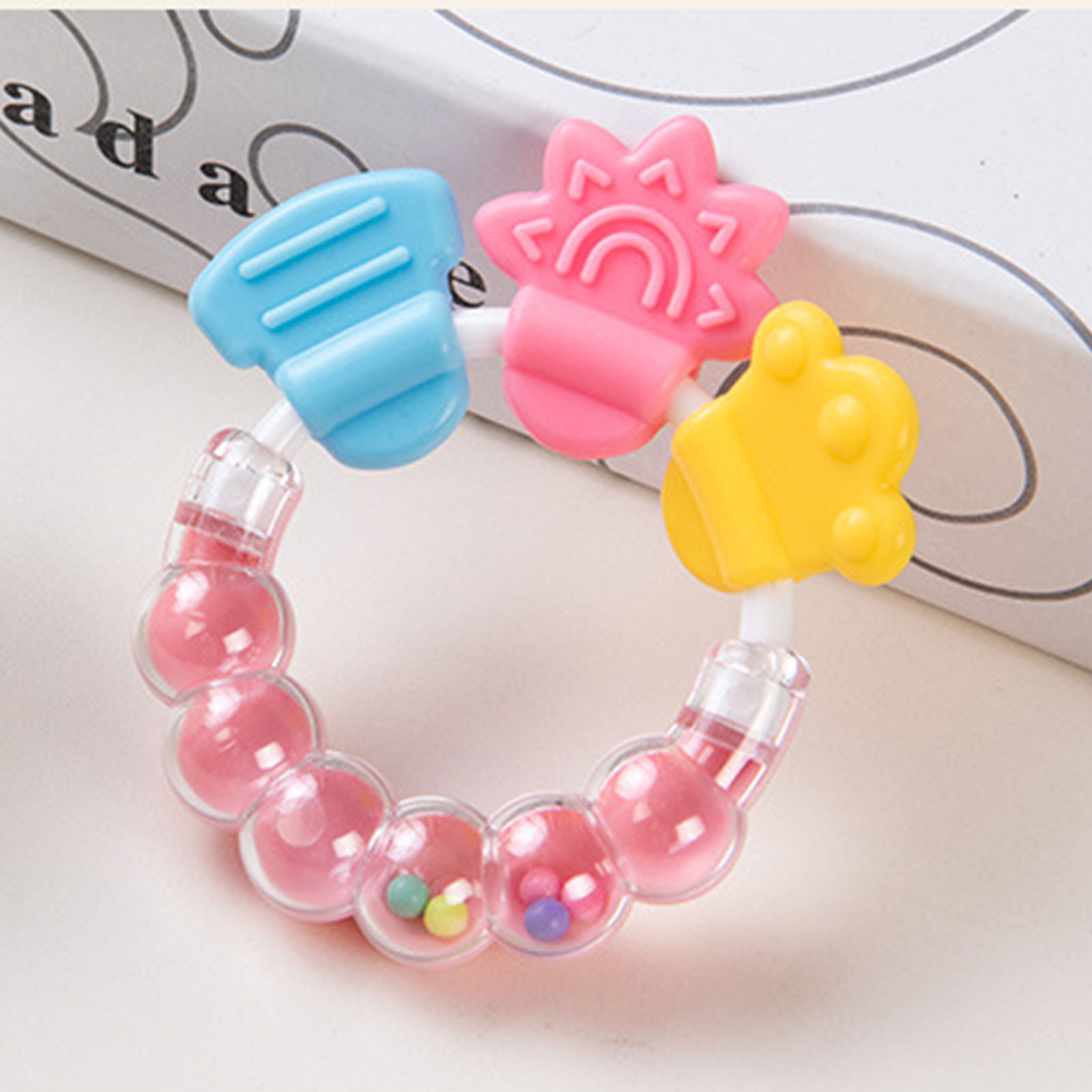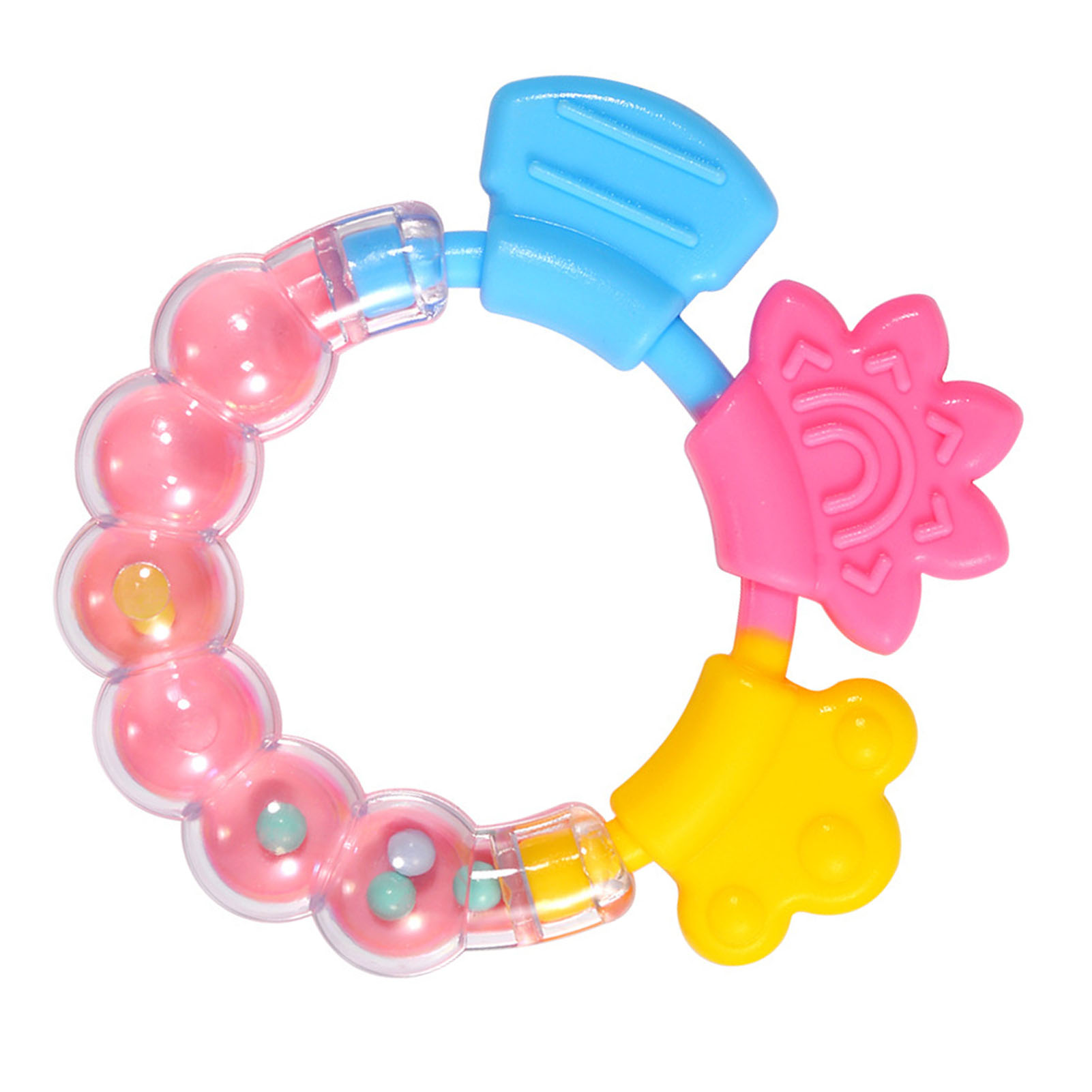 Baby Rattle Teether Gum Multifunctional Bite Resistant Silicone Baby Rattle Chew Toy for Baby Infants Pink