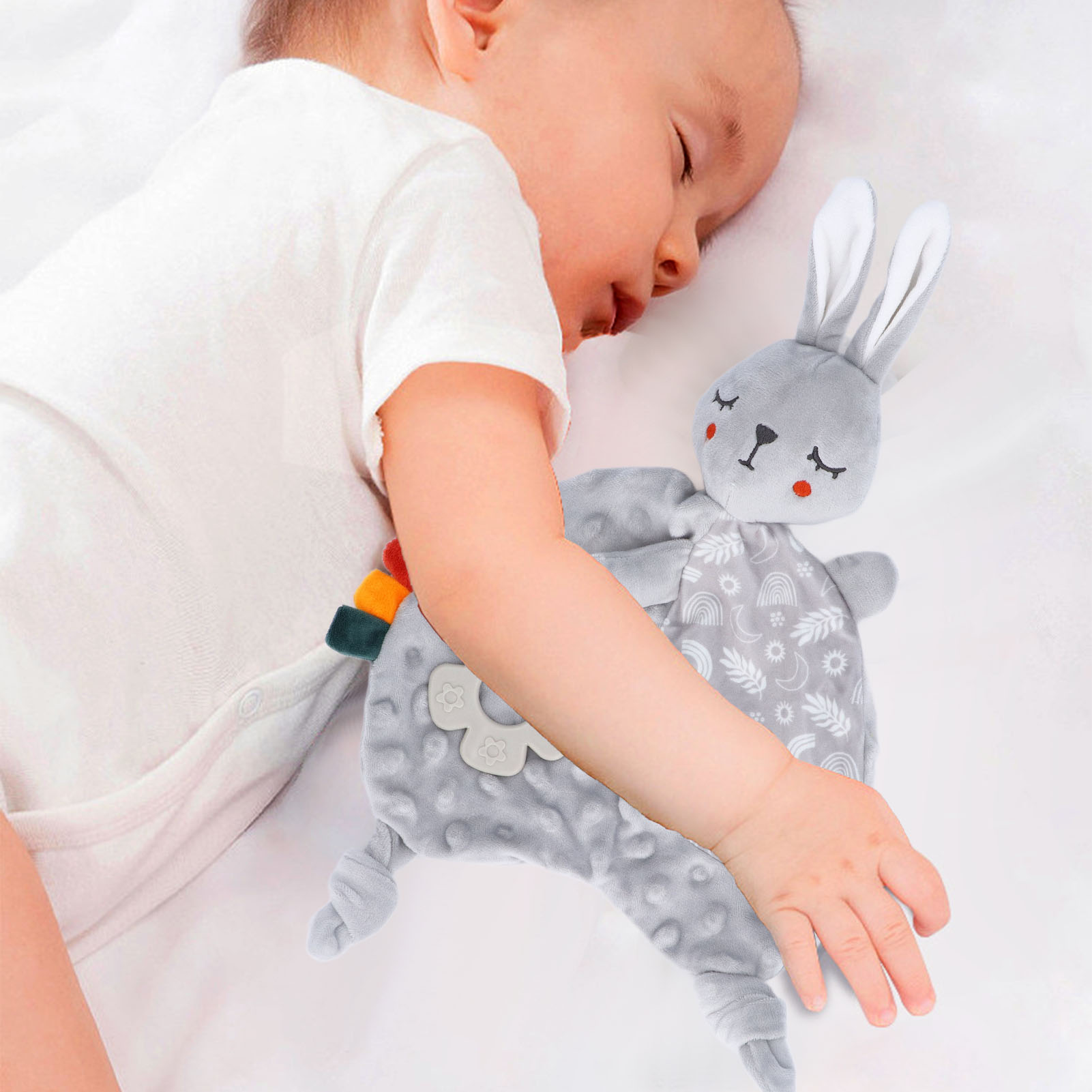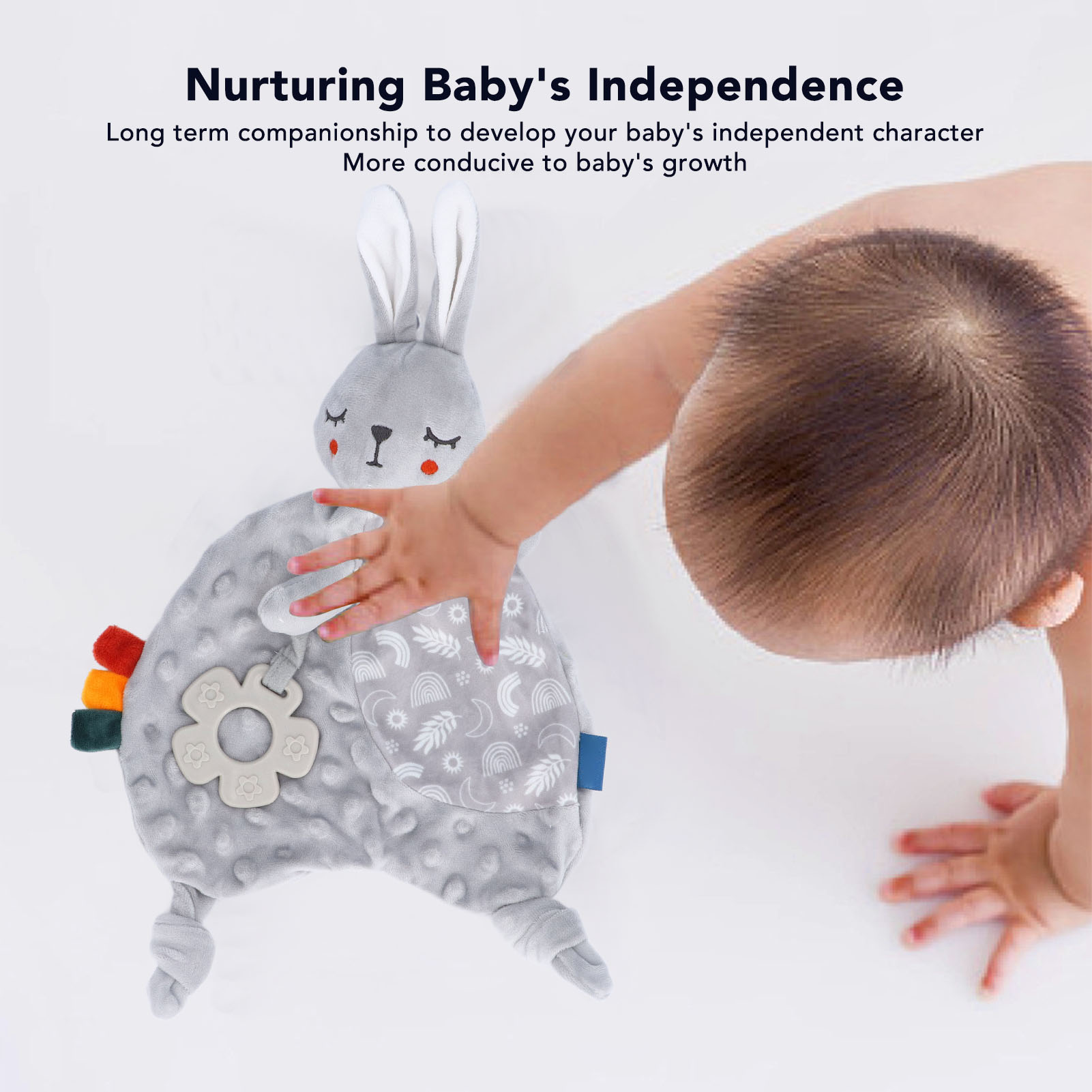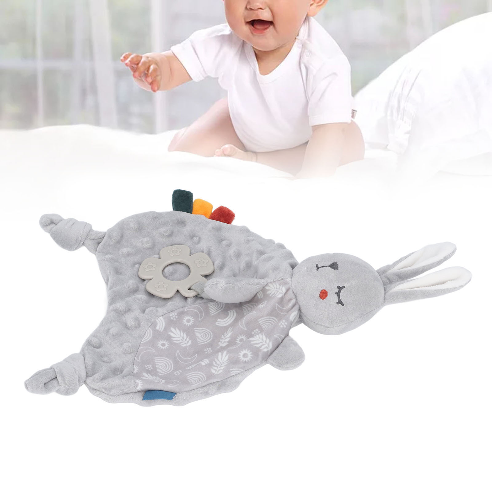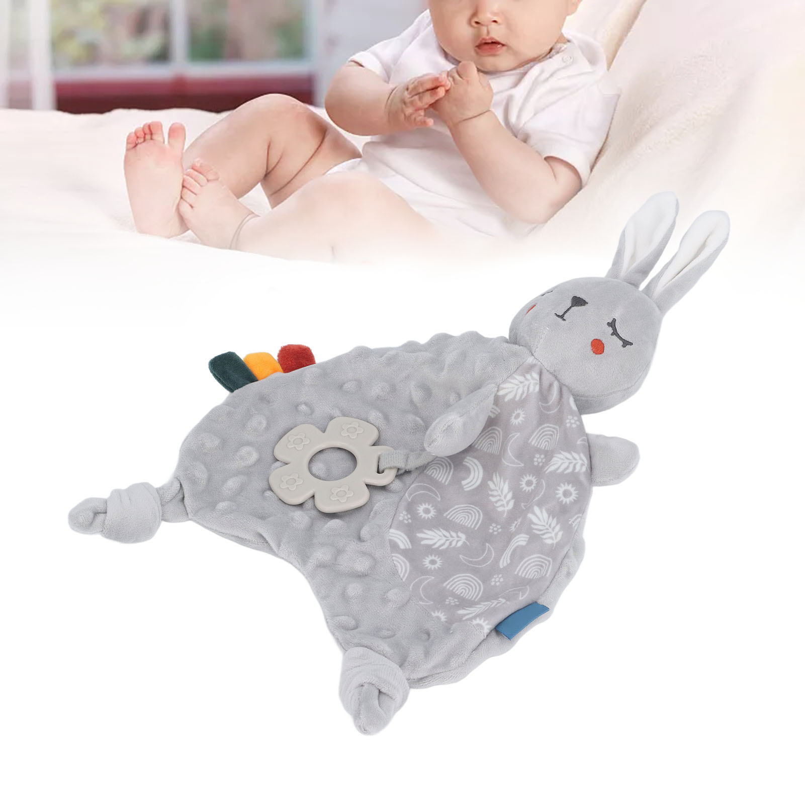 Baby Security Blanket Cute Stuffed Animal Soft Skin Friendly Biting Touch Training Infant Nursery Blanket for Infants Boy Girl Gray Rabbit