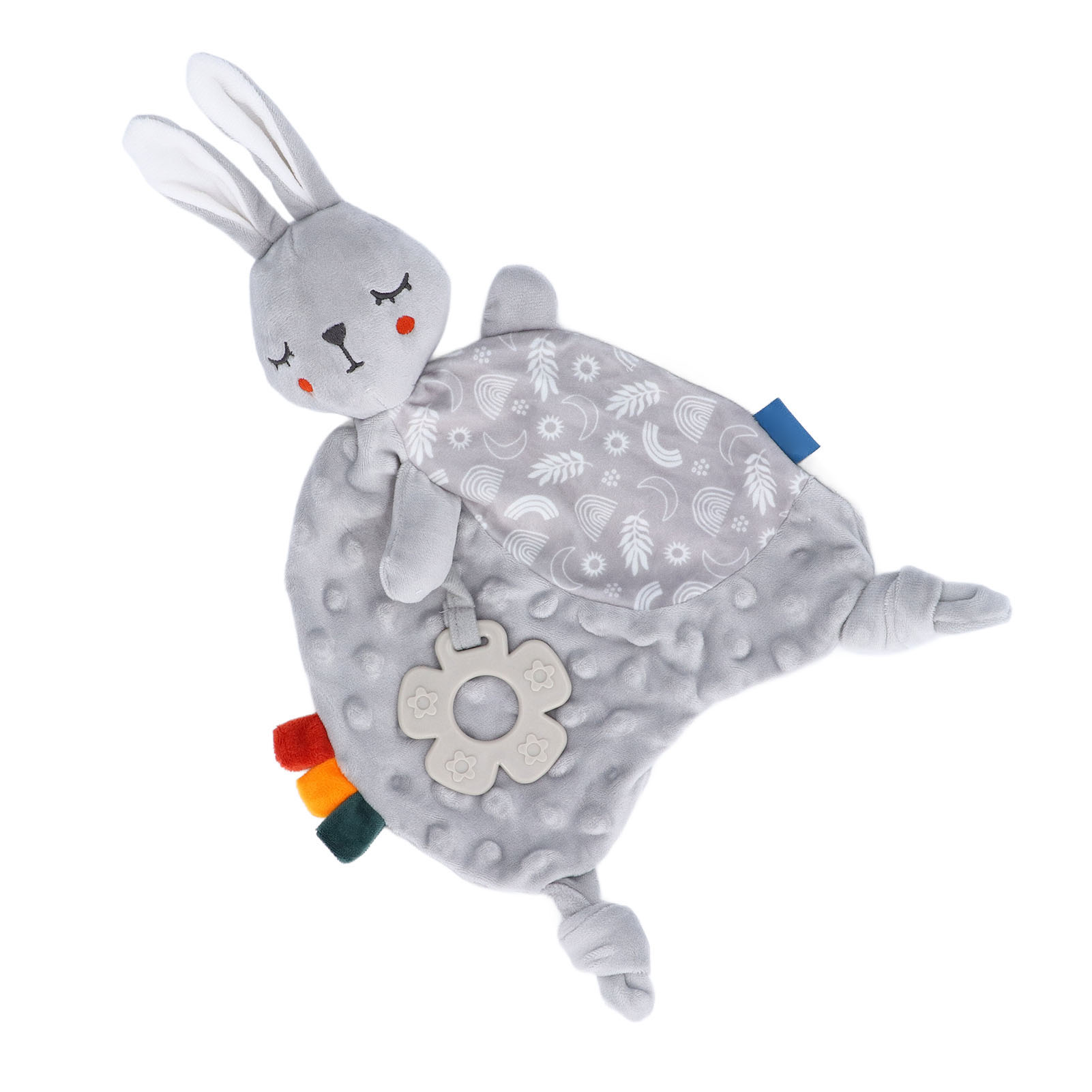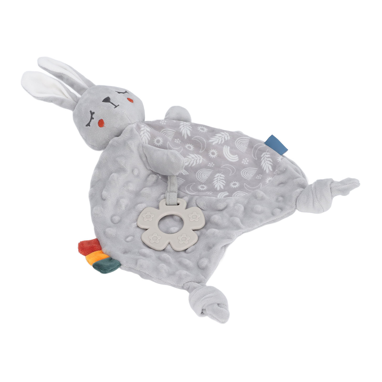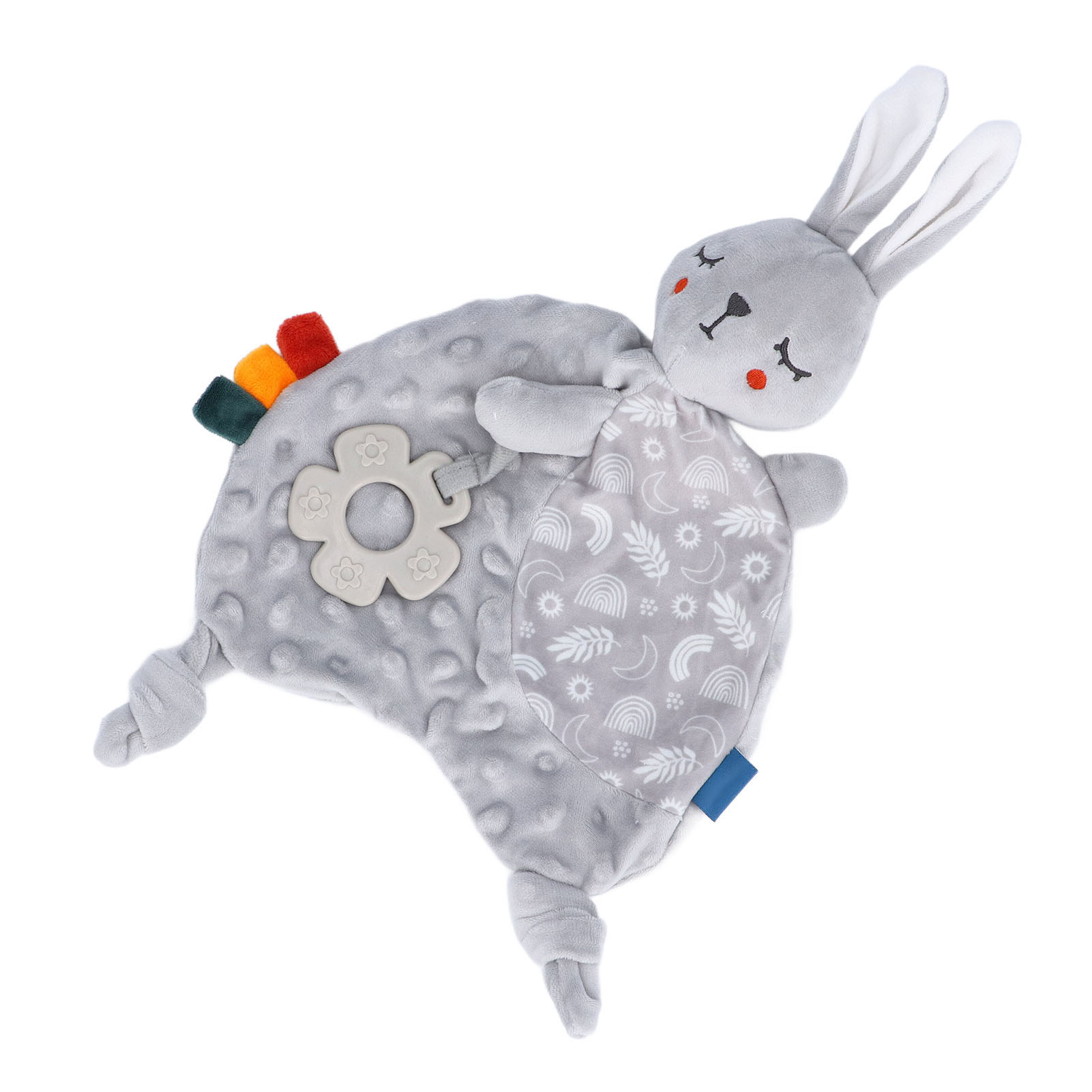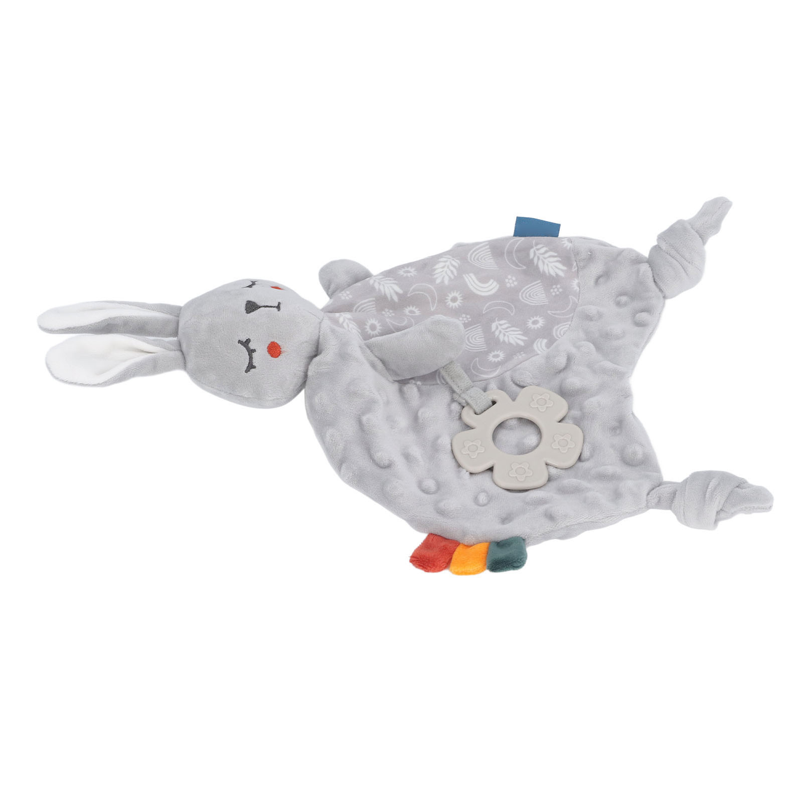 Baby Security Blanket Cute Stuffed Animal Soft Skin Friendly Biting Touch Training Infant Nursery Blanket for Infants Boy Girl Gray Rabbit