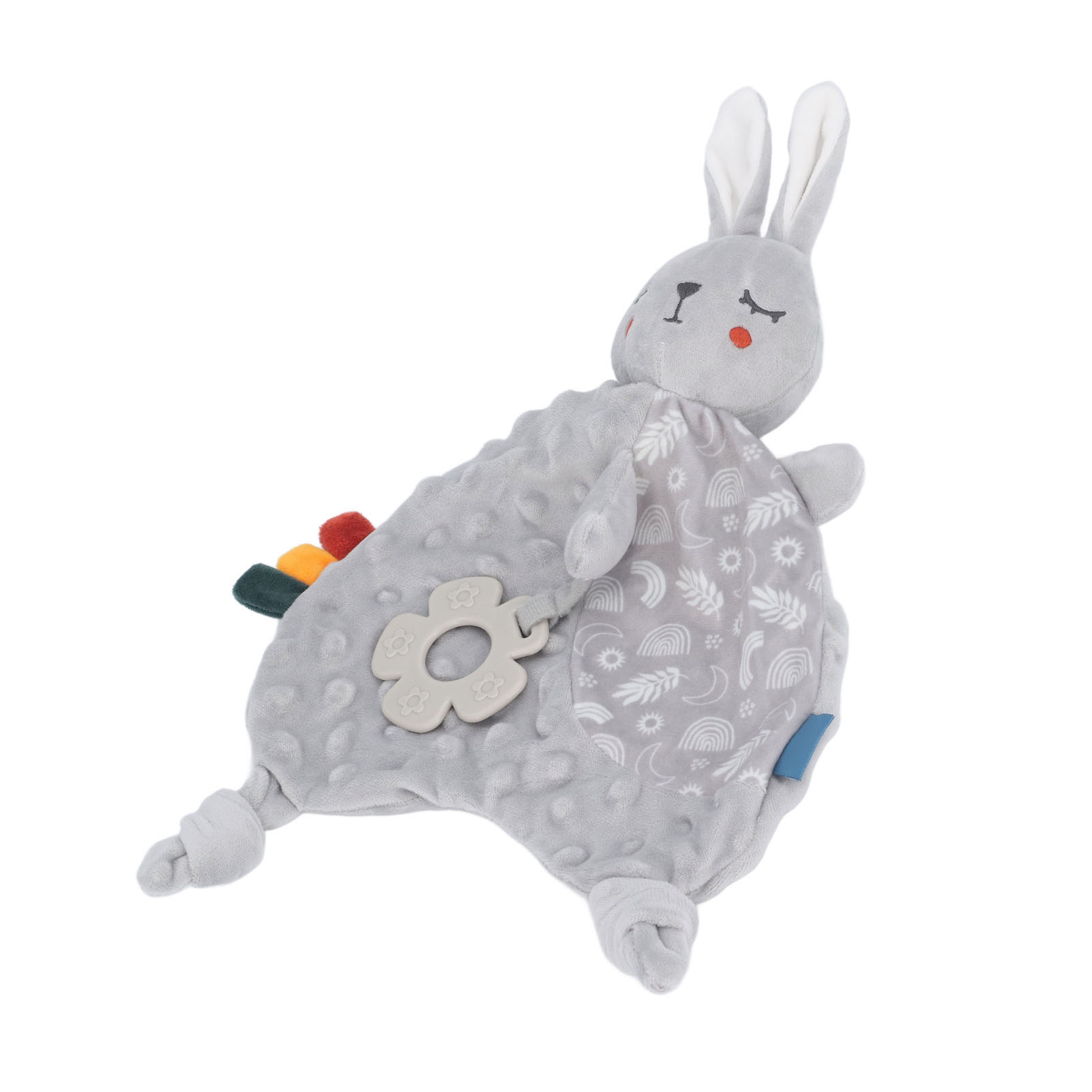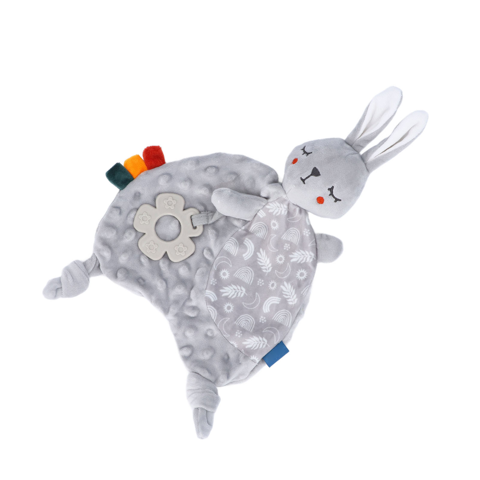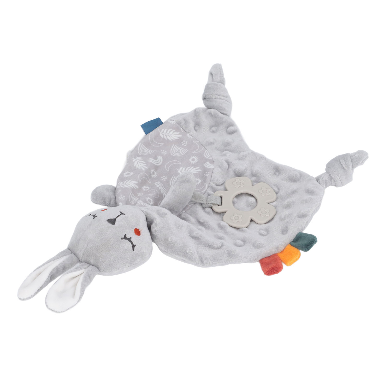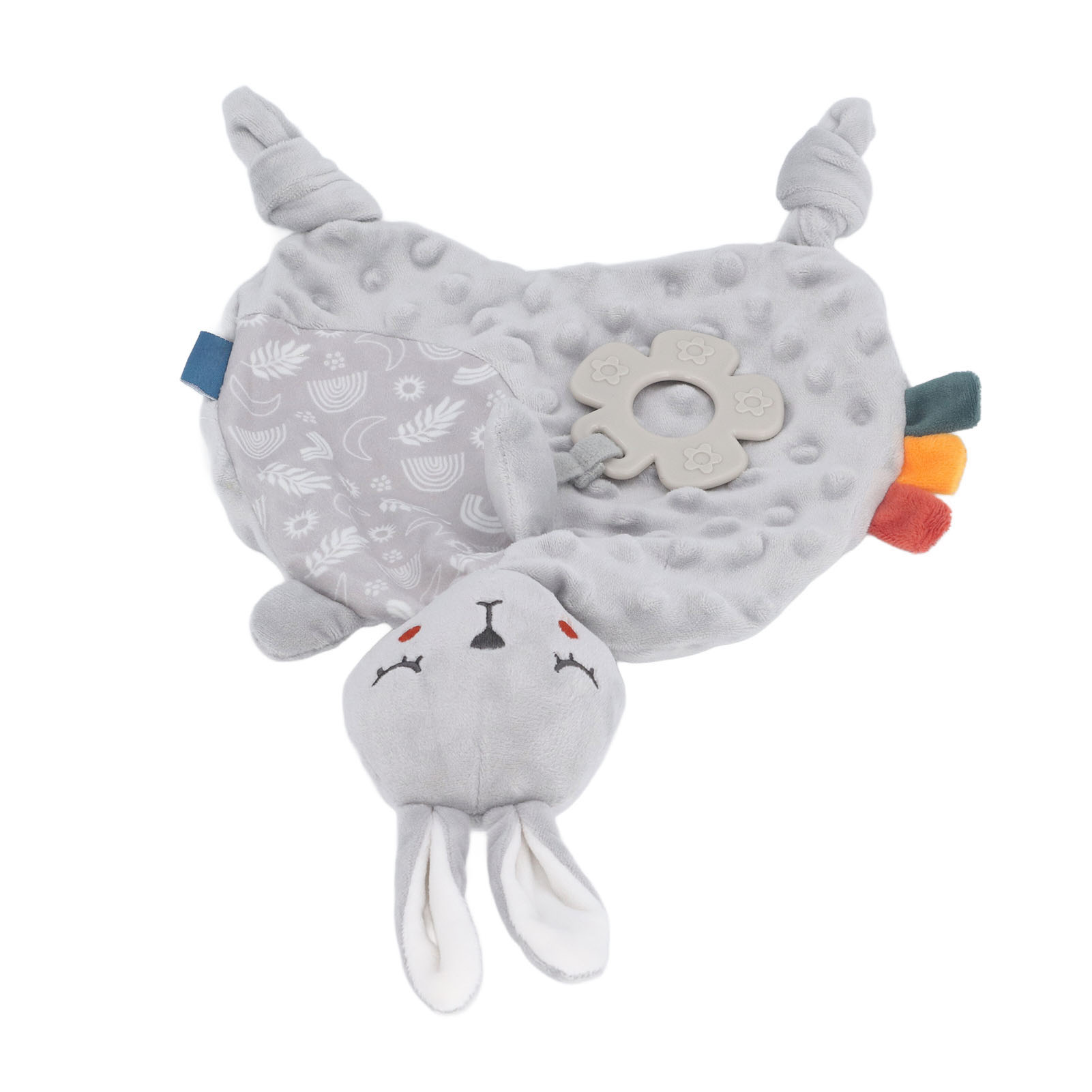 Baby Security Blanket Cute Stuffed Animal Soft Skin Friendly Biting Touch Training Infant Nursery Blanket for Infants Boy Girl Gray Rabbit