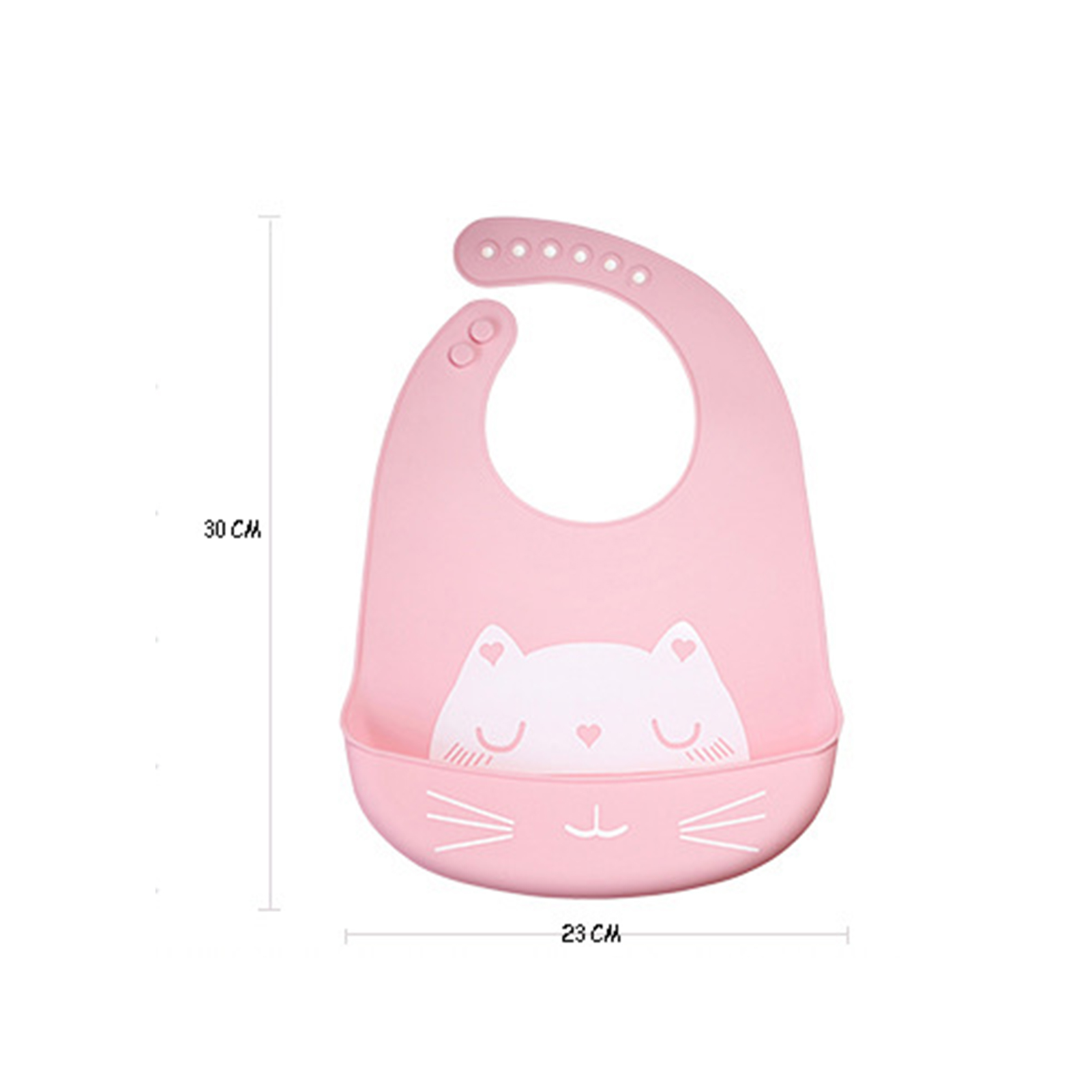 1、Food Pocket: Baby eating bib designed with a food catcher pocket, which can catch food out of baby's mouth, does not spill out, a good helper for babies. 2、Easy Cleaning: Waterproof and oil proof, stains resistance that can be easily cleaned by a simple wipe, also can use soapy or other detergent water to wash the dirt off. 3、Silicone Material: Made of food grade silicone material, tasteless, odorless, and safe for baby use, totally safe for your baby to bite on, and does not hurt your baby's skin. 4、Adjustable: There are 6 buttonholes on the bib, just tie on the neck to prevent pulling off, and facilitate the use of different age groups of infants and young children. 5、Cute Pattern: Cat pattern design on the bib can draw the baby's attention, making your baby more willing to wear the bib when eating. Smoothly edges will not hurt your baby's skin.