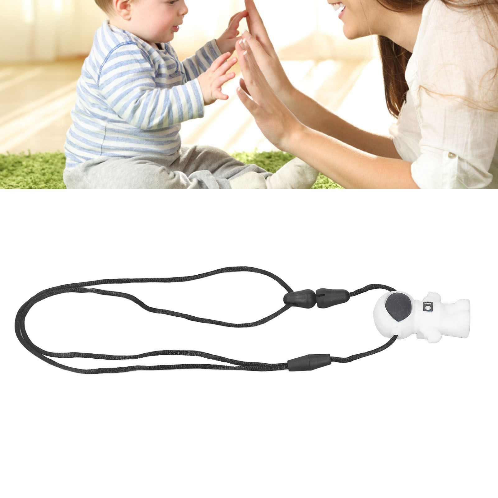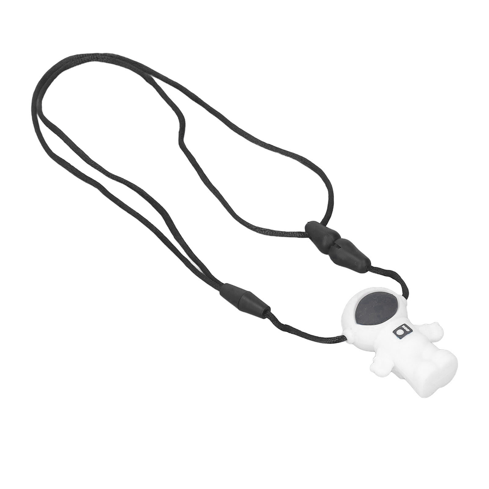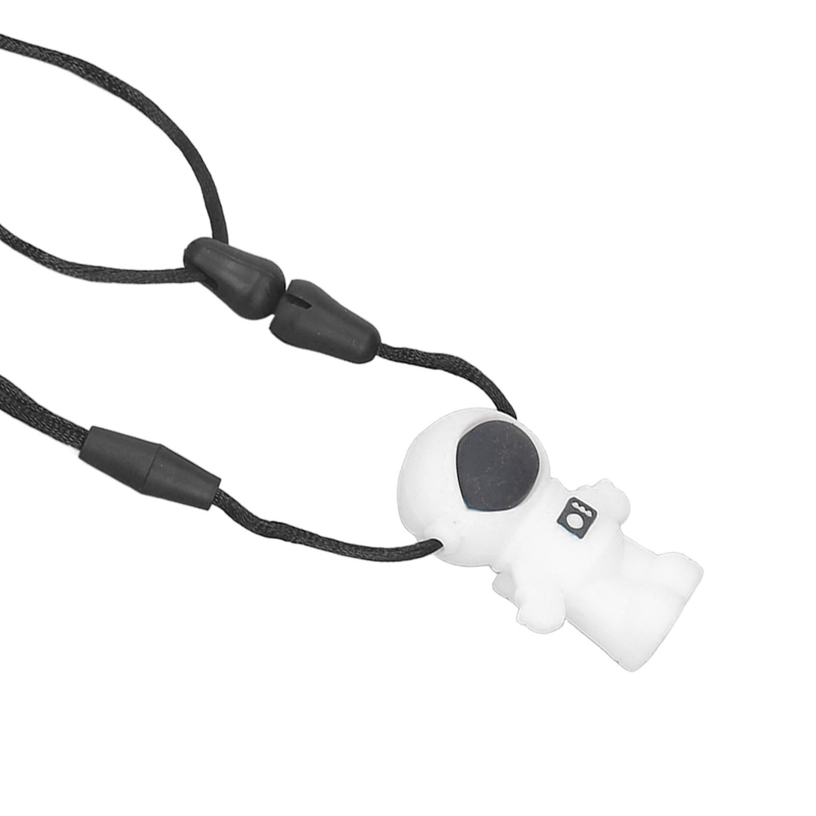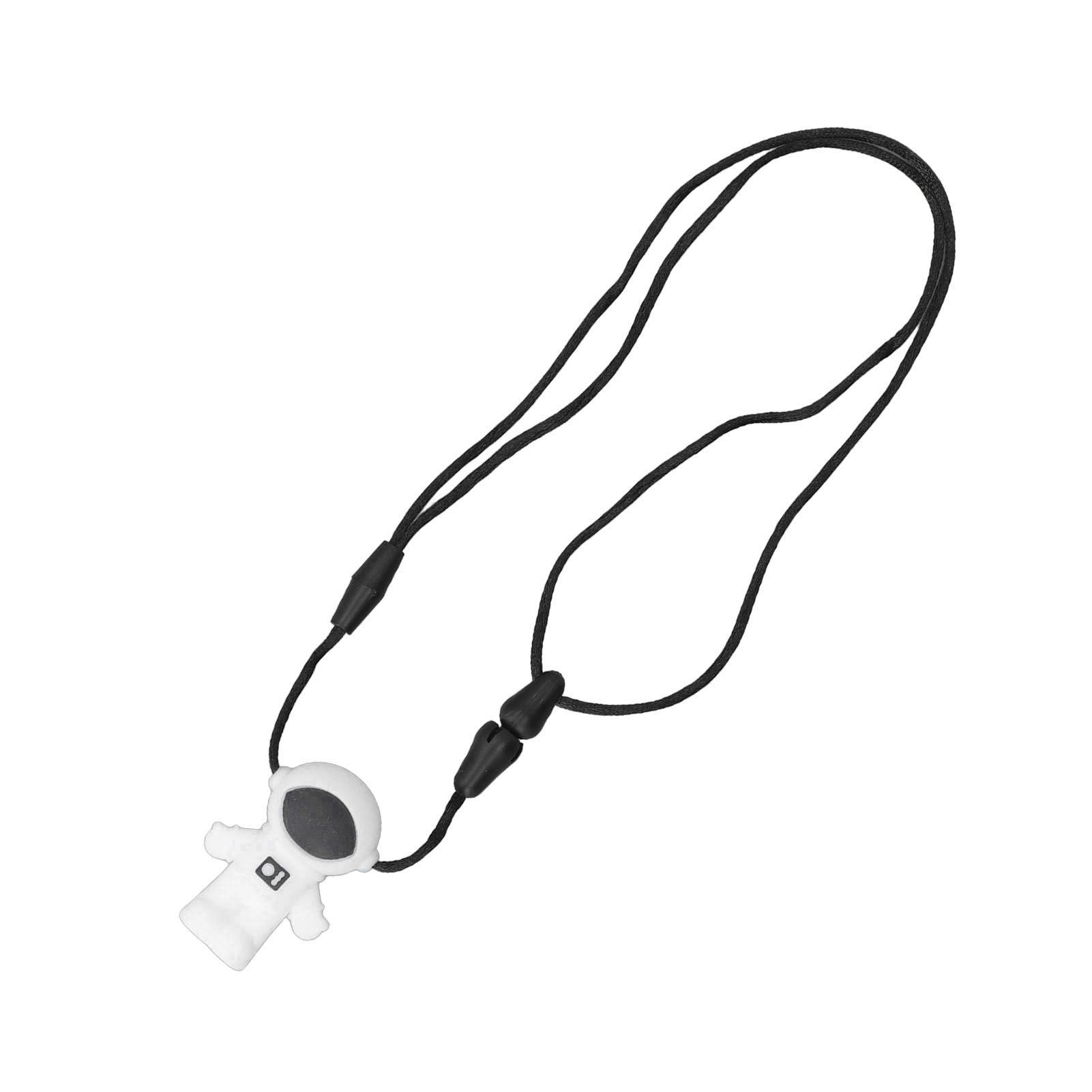 1、GENTLE SOOTHING: This teething pendant fits comfortably on your baby gum and gently relieves teething pain. Beaded edges and multiple chewing surfaces are perfect for massaging sore gums and keeping your baby happy. 2、TEETHING FUNCTION: This teething pendant is a safe chewing choice for baby with sensory needs such as autism, PDD, and ADHD. Instead of biting fingers or chewing clothes, make your child chew on our chew necklace designed for safe chewing. 3、SILLICONE: This baby teething pendant is made of soft silicone material, stretchy and flexible, safe and hygienic, easy to clean, and lightweight. 4、REDUCE ANXIETY: With cartoon spaceman shape, easy to attract baby, can greatly reduce anxiety, promote calm, and provide a safe alternative to chewing on hands, pens, clothing, hard objects, etc. 5、SAFE TO USE: Tasteless, environmental friendly, sanitary and durable, high temperature and low temperature resistance: can be used normally in the range of ‑40 degree centigrade to +250 degree centigrade.
