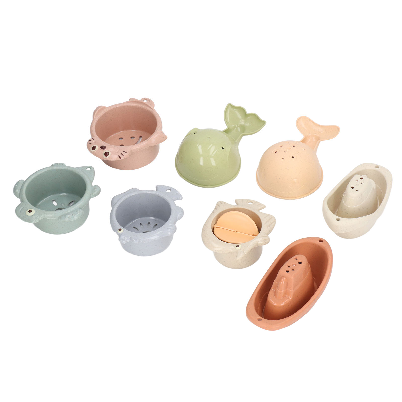1、Hollow Patterns: The bottom of these cups are printed with different lovely hollow out patterns. Babies can use these boats to float, scoop and filter water. 2、Stackable: Cups and boats can not only be used to play in the water, but also be stacked and used to build castles on the beach. The edges are glossy and will not collide with children's hands. 3、With Suction Cups: It contains two powerful suction cups that children can play in the bathtub. 4、Applicability: Applicable to window sills, mirrors, marble, doors or other glossy surfaces. (The suction is great after wetting with water.) 5、Versatility: Children always like to choose colorful bathtub toys, which encourage interaction by letting your baby find colors or animals to help develop children's psychological and coordination abilities. The cup and boat can let the baby learn numbers during play, and promote the baby's early intellectual development.