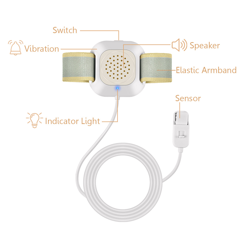 1、The alarm goes off with loud sound, strong vibration and bright light to wake your child. 2、Easy to wear around baby\u0027s upper arm, adjustable elastic armband to ensure fit snugly and comfortably. 3、High sensitivity sensor detects the urine and alerts the child as soon as bedwetting occurs. 4、Mini sized alarm is easy to hide under clothes, good to use for potty training and help to cure the bed wetting problem. 5、Suitable for babies, children, elders or people who cannot take care of themselves.