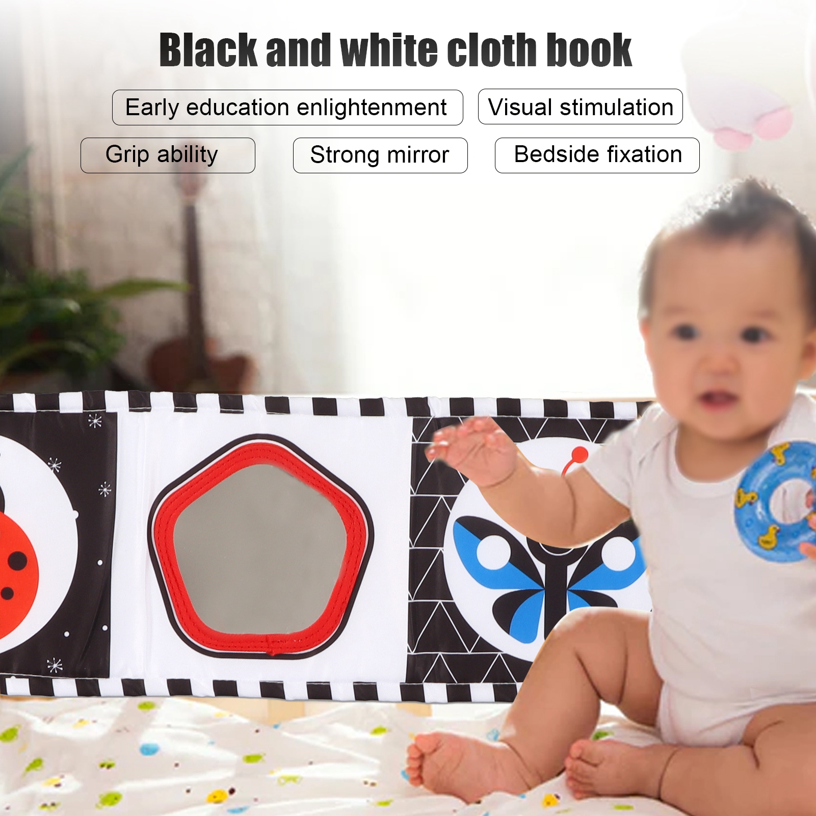 1、Visual Development: Black and white high contrast book can effectively stimulate the baby's optic nerve, while stimulating the baby's brain development. 2、Grasping Ability Training: Let your baby turn over the black and white cloth book with fingers to exercise your baby's hand eye coordination and grasping ability; you can also tie it to a crib, make your baby move. 3、Cognition Of Item: Various colorful cartoon patterns are on the cloth book to exercise the baby's cognition of items. Funny mirror, not easy to break. 4、Portable Design: Fine workmanship, tight stitching. Light weight and compact, easy to store and carry, perfect for home and travel use. 5、Polyester Fiber: Baby cloth book adopts high quality polyester fiber, soft and skin friendly, washable and reusable, not easy to fade, durable for use.