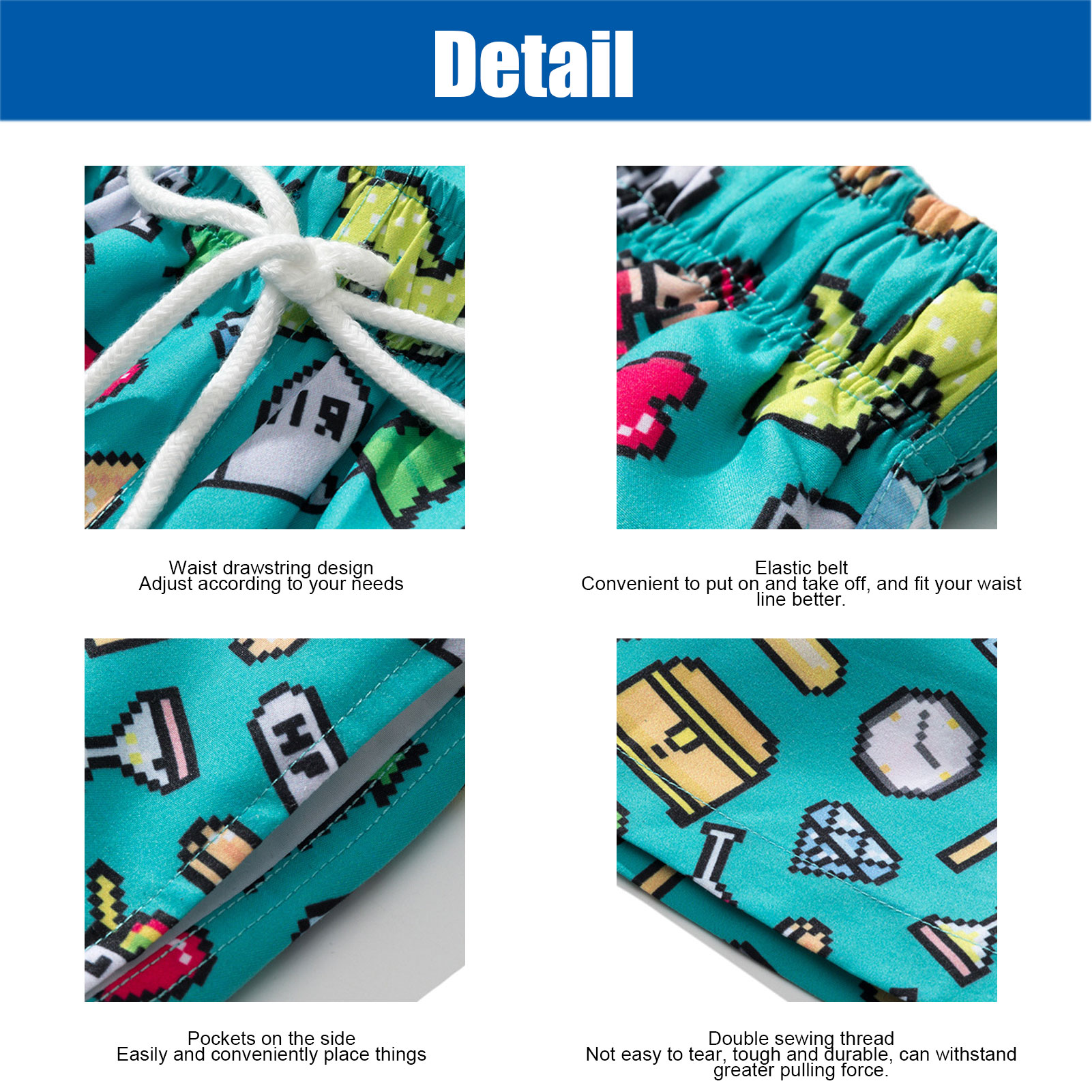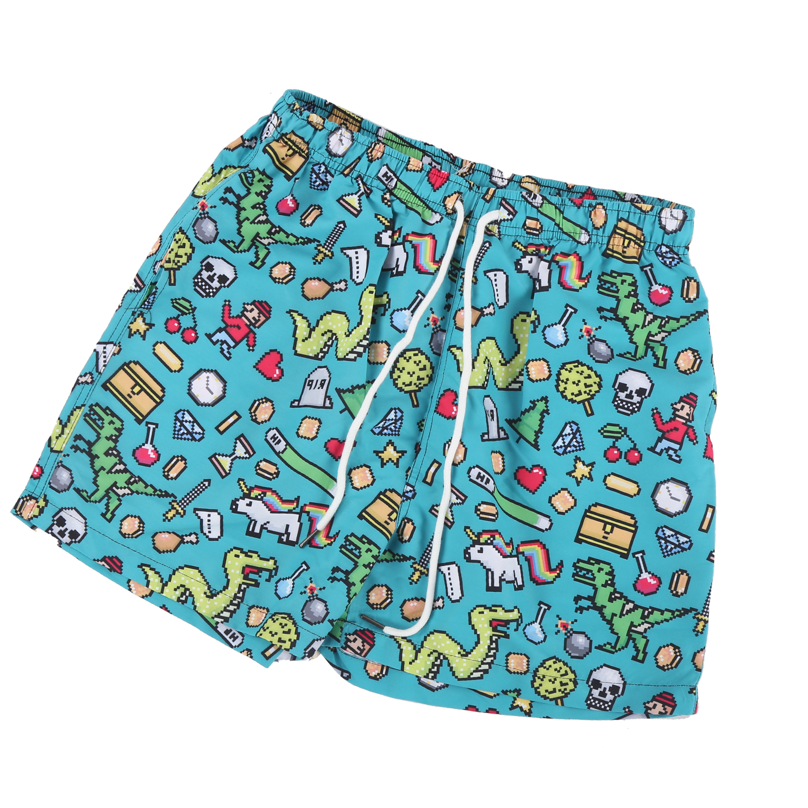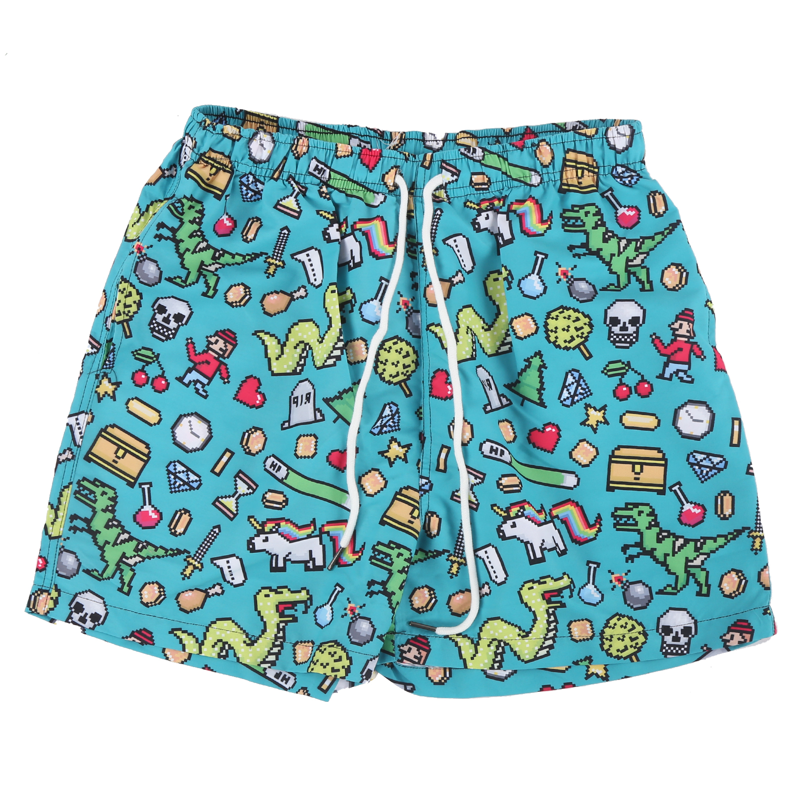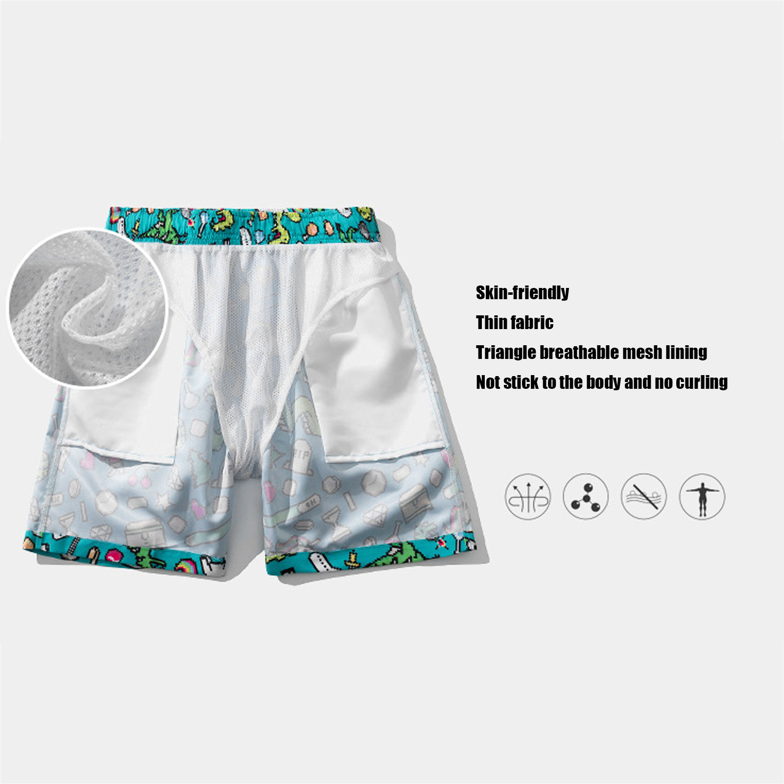 1、Lightweight, skin‑friendly and quickly dry, it features UPF 50+ sun protection, blocking 90% of sunlight and ultraviolet rays. 2、Designed with funny patterns, elastic waistband, drawstring, breathable mesh lining, and two pockets on both sides. 3、Adjustable drawstring easily fits your needs and waist line, convenient to put on and take off. 4、The shorts is not easy to tear, tough and durable, can withstand greater pulling force with double sewing thread. 5、Suitable for water sports, walking, running, swimming, surfing, hanging out on the beach or at home, etc.