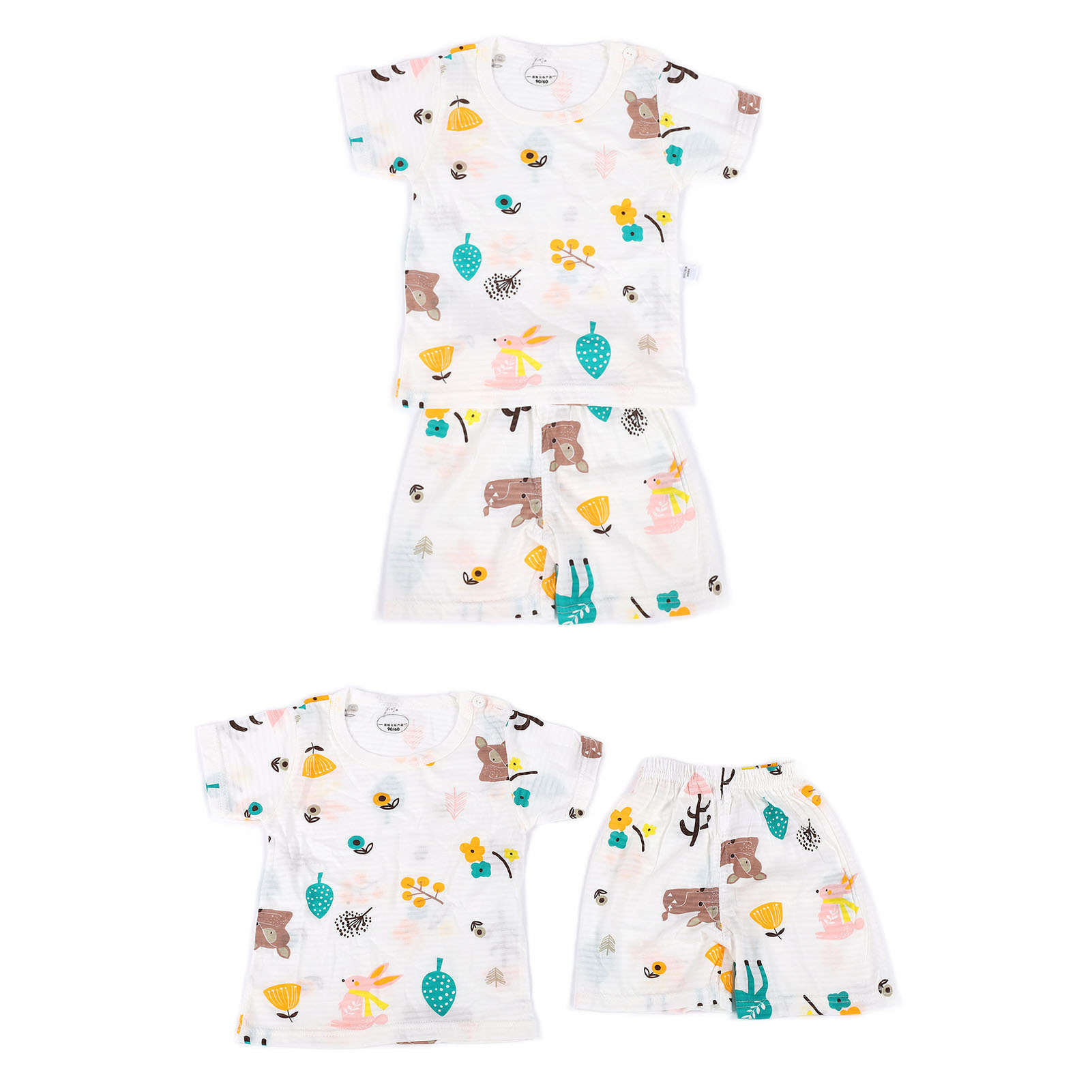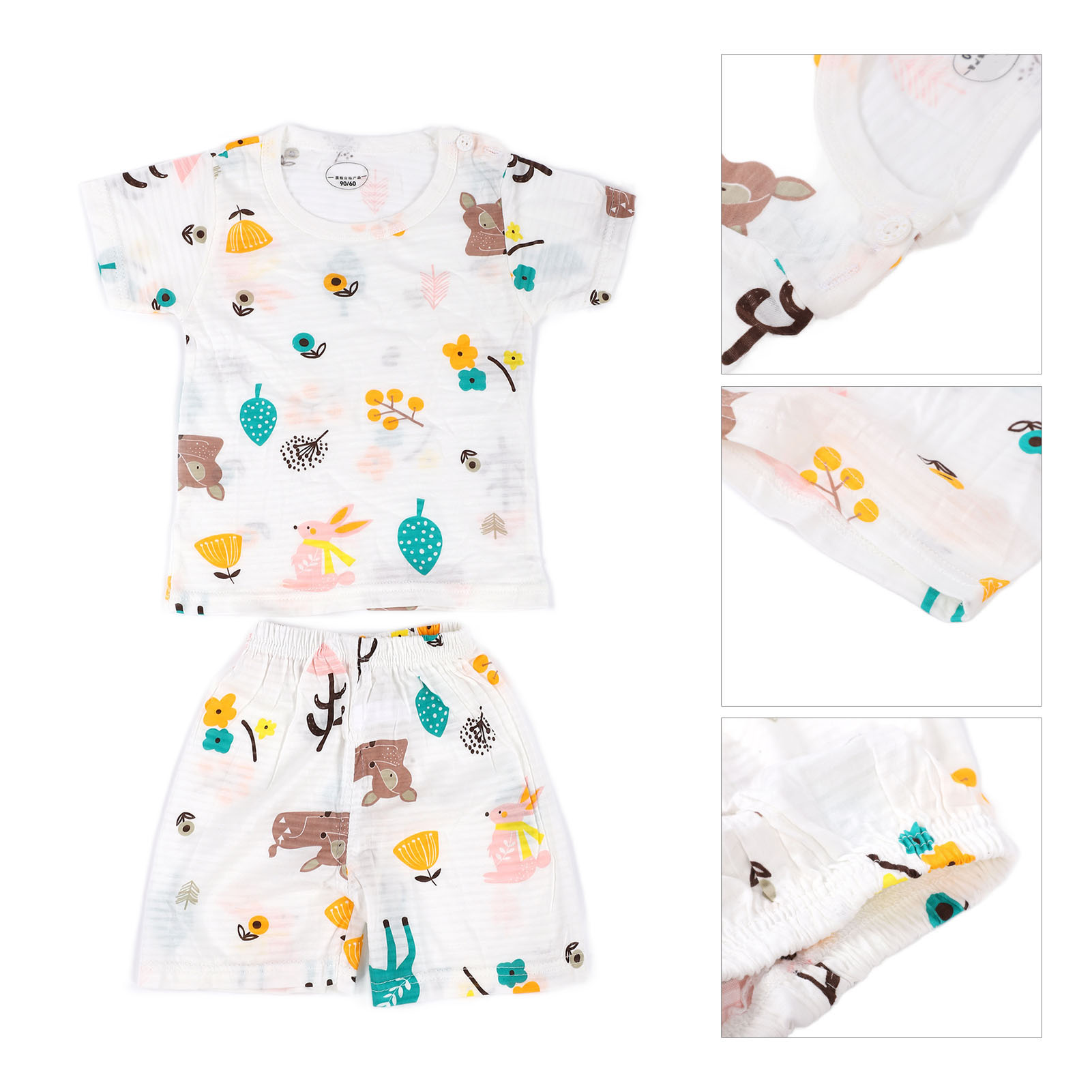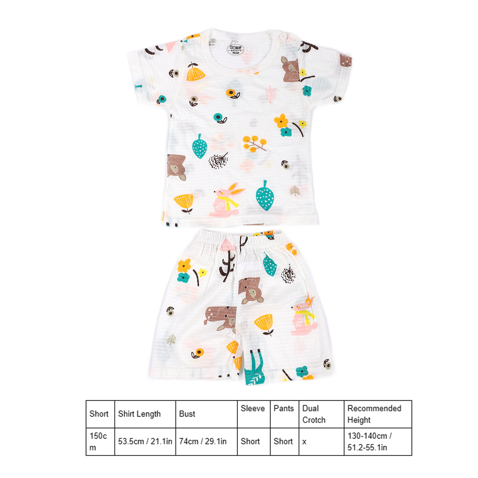 1、Made of cotton, soft and skin friendly, breathable and comfortable, very suitable for indoor play. 2、With cute cartoon patterns, elements that children are very interested in can attract their attention. 3、Breathable and sweat absorbing, fashionable and cute, no need to wash by hand, you can put it in the washing machine directly. 4、Contain short sleeved T shirts and shorts to save you the trouble of matching clothes. 5、There are many sizes and sizes for you to choose, suitable for babies of all shapes.