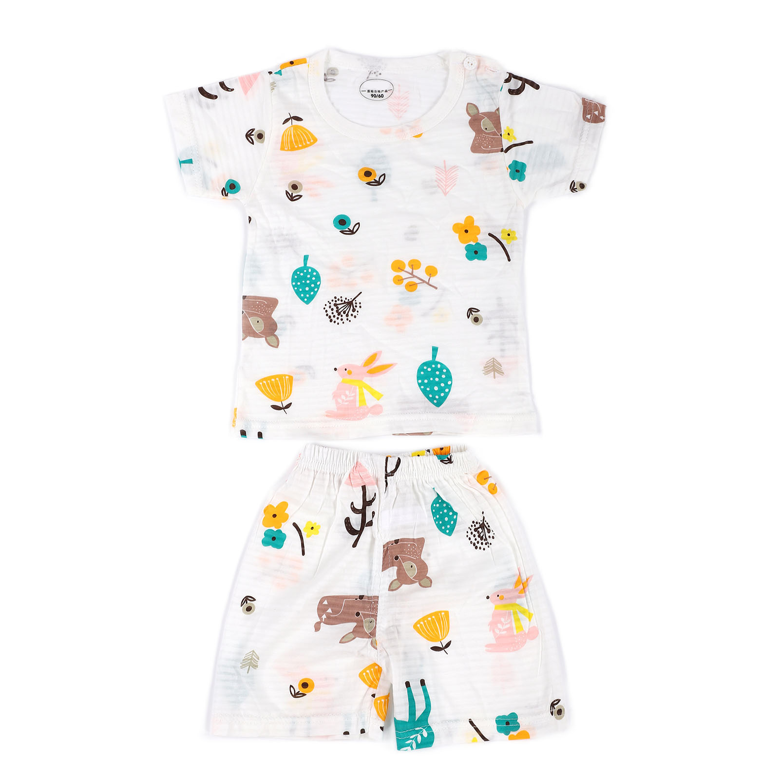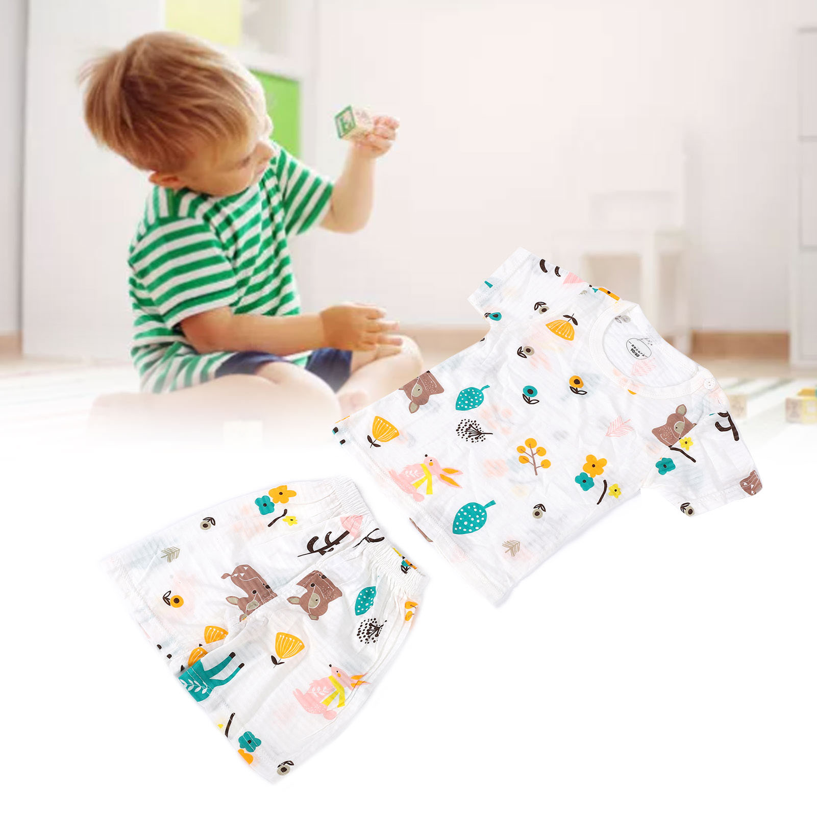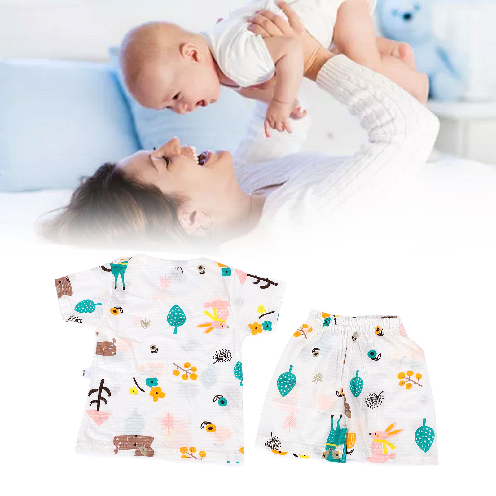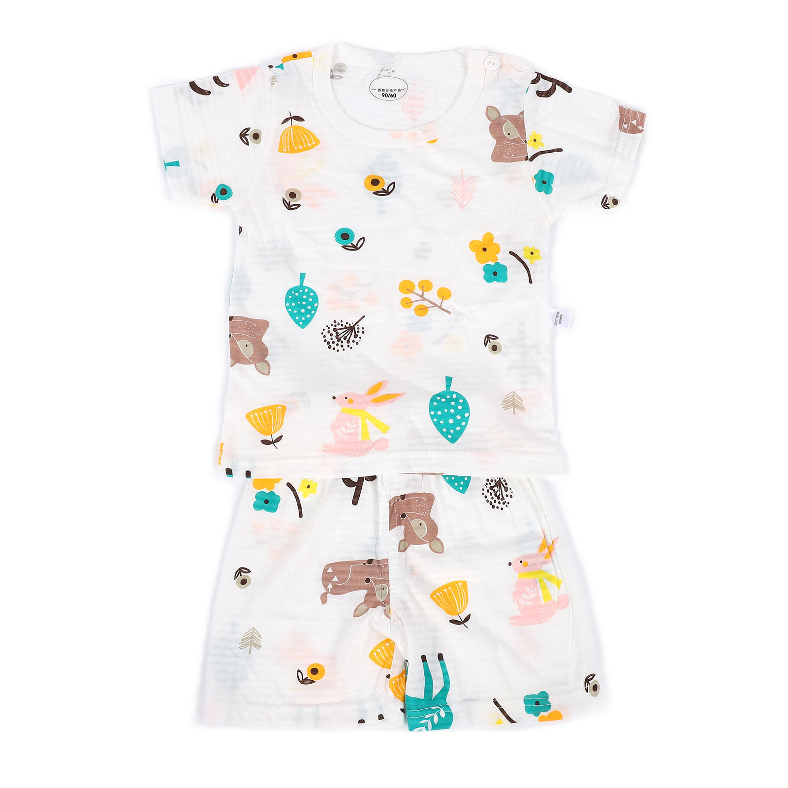 1、Made of cotton, soft and skin friendly, breathable and comfortable, very suitable for indoor play. 2、With cute cartoon patterns, elements that children are very interested in can attract their attention. 3、Breathable and sweat absorbing, fashionable and cute, no need to wash by hand, you can put it in the washing machine directly. 4、Contain short sleeved T shirts and shorts to save you the trouble of matching clothes. 5、There are many sizes and sizes for you to choose, suitable for babies of all shapes.
