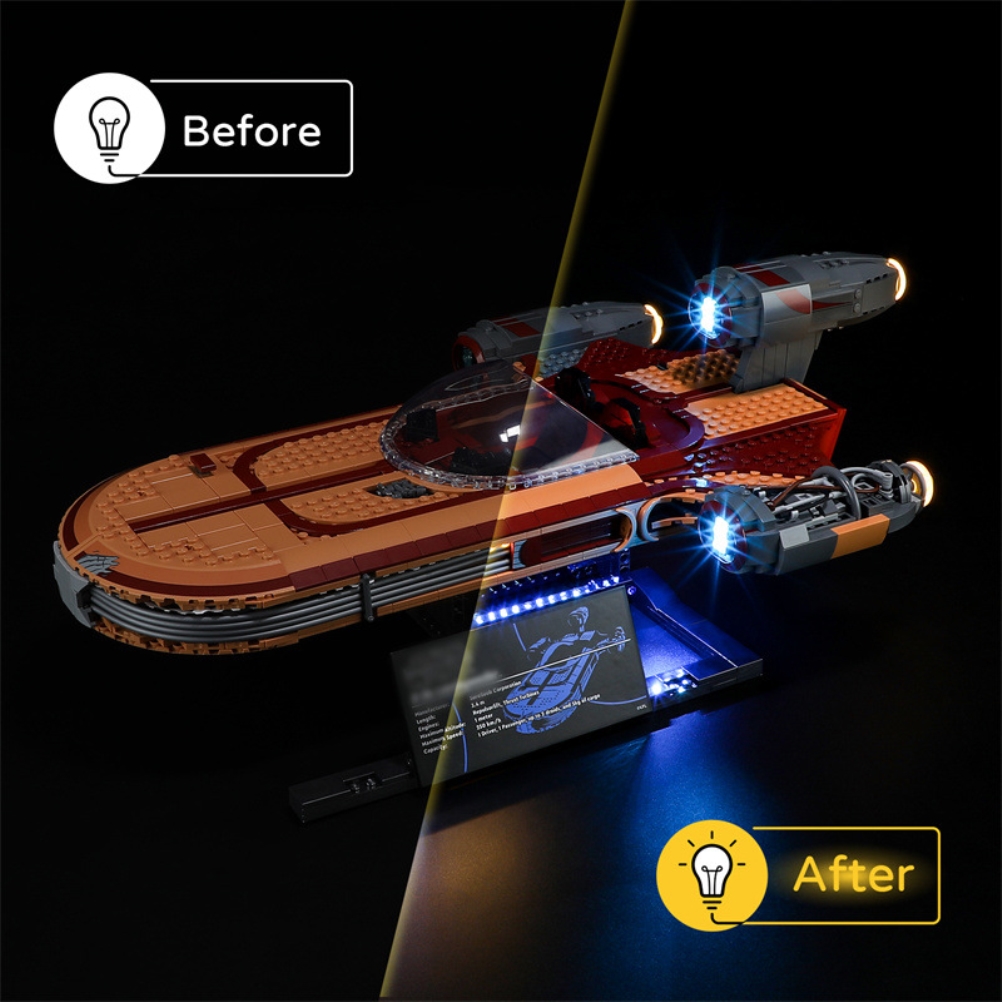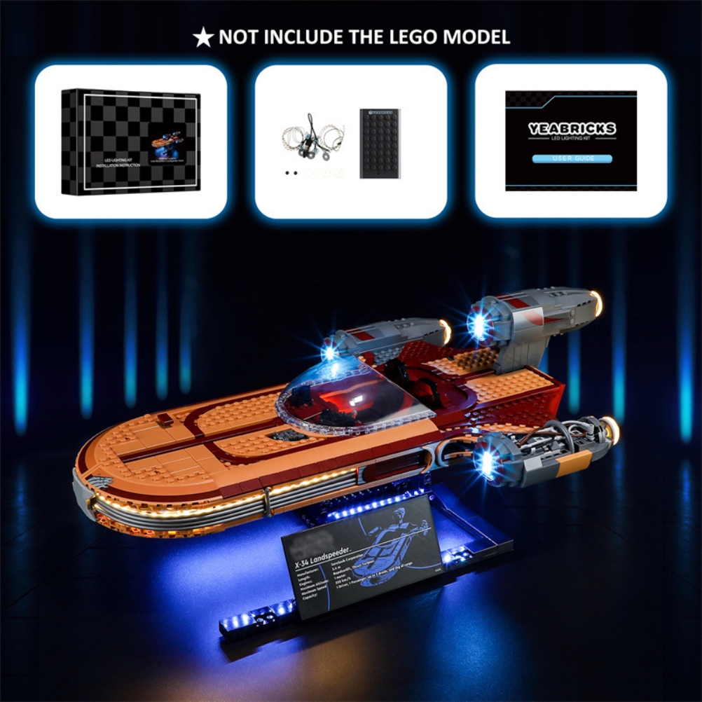 Building Blocks Kit with Light Compatible for LEGO 75341 Luke Skywalker's Landspeeder Collectible Building Kit