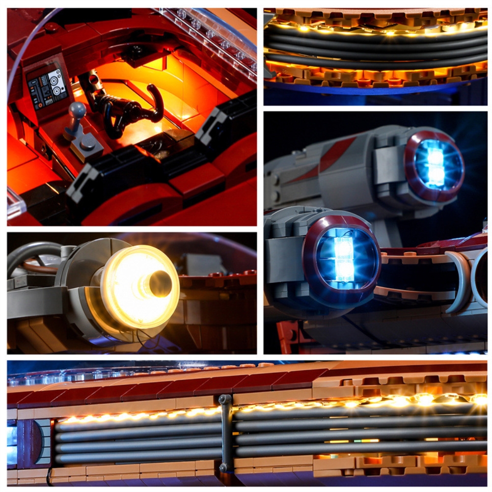 1、1. Unique design: designed compatible for Lego Luke Skywalker's Landspeeder 75341 (2022) set, you can bring your building block model with the lighting set from dark to bright and bring it to life. (Please note that only the LED light set is included.) 2、2. Safe material: all parts for this LED light set are all handmade from safe friendly original material, the surface of the LED lights feels smooth, no hidden safety risks such as burrs and odors. All LEDs have a uniform light pattern and the cable connectors fit together nicely. 3、3. Easy to build: with a detailed step-by-step photo guide you will find an easier way to upgrade your favorite building kit. Make your creations unique with your rich imagination and creativity. 4、4. Installation tips: please install your LED light carefully, with no overlapping and bending or shaking. Powered by batteries (3 x AA, but not included) or USB. For a brighter effect, a USB is recommended. The voltage should be less than 1A 5V to avoid damage. 5、5. Gift for a friend: This light is very beautiful and suitable for a friend who loves blocks as a gift to embellish his favorite collectible gift, he will be very happy.