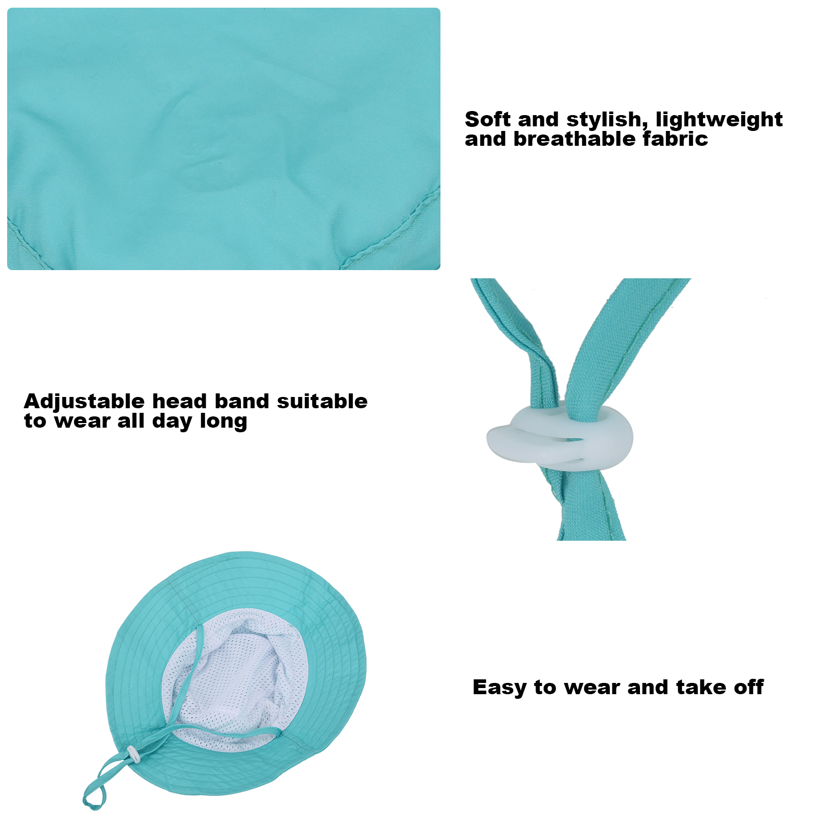 1、Soft and stylish, lightweight and breathable fabric, allows air to enter and provides good ventilation; The foldable design makes it easy to carry. 2、Provide optimal sun protection for infants, toddlers and children. Protect children's head, eyes, face, neck from strong light exposure, keeps the baby cool, comfortable and absolutely cute. 3、Adjustable head band suitable to wear all day long, adjustable chin strap helps ensure the hat stays in good condition in windy weather. 4、Easy to wear and take off, include soft chin straps so they stay safe all day long, not easy to be blown away. 5、Easy to wear and match with other clothes, breathable, durable and lightweight design makes it easy to carry and travel. Suitable for fishing, travel, camping, boating, etc.