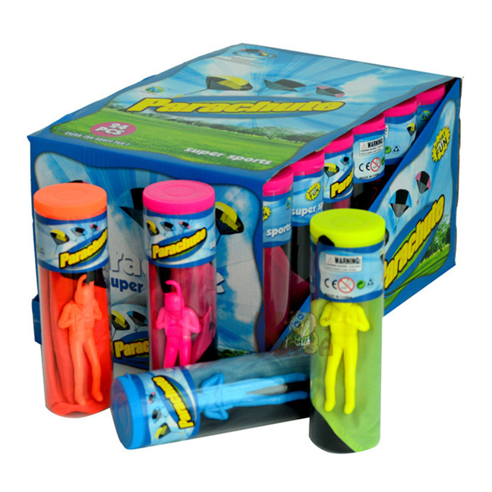 1、Made of Eco-friendly plastic material, safe and durable to use. 2、Tangle free parachute, just toss it high and watch it fly and land. 3、Bright color and lively chutist design make to draw children's attention to the toy. 4、This parachute land slowly by using the landing principle of the real parachute and it can improve children's manipulative ability. 5、Perfect parachute toy for your children to have fun in outdoor activities.