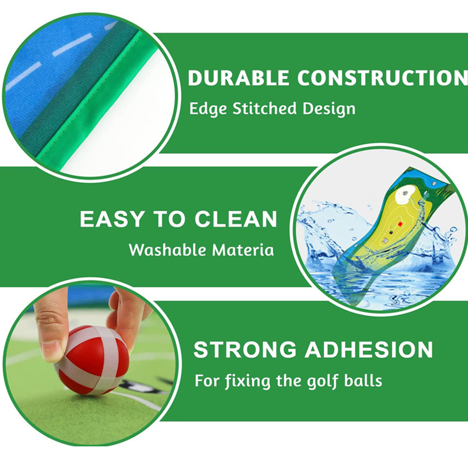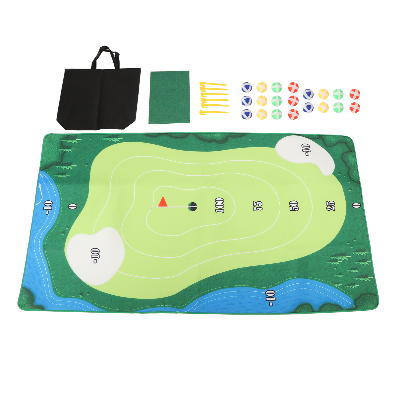 1、TRAINING: The chipping game set can not only be a training aid for chipping, help improve your game; This outdoor toy is also a great way to introduce the game to kids and be able to improve their skills and develop their passion for the game. 2、GAME EQUIPMENT: This is a perfect sports game equipment, the whole set of equipment can be installed in a few dozen seconds; The mat can be placed anywhere, suitable for indoor and outdoor activities. 3、TRAVEL: This game mat set can not only be played indoors, but also suitable for outdoor parties, long or short trips. Everything fits neatly into your carrying case, so it's a good choice to take it with you when you're out. 4、STRONG ADHESION: This version of the sports toy set with strong adhesion can be strongly attached to the ground, so you will not feel anxious and angry when you practice when it falls, and you can play as much as you want without any worries. 5、JOY OF COMPETITION: This game mat comes with a scoring logo, so you can have a tense and exciting game with friends or family anytime. You can also hang the game mat on the wall to make the score more visible at a glance.