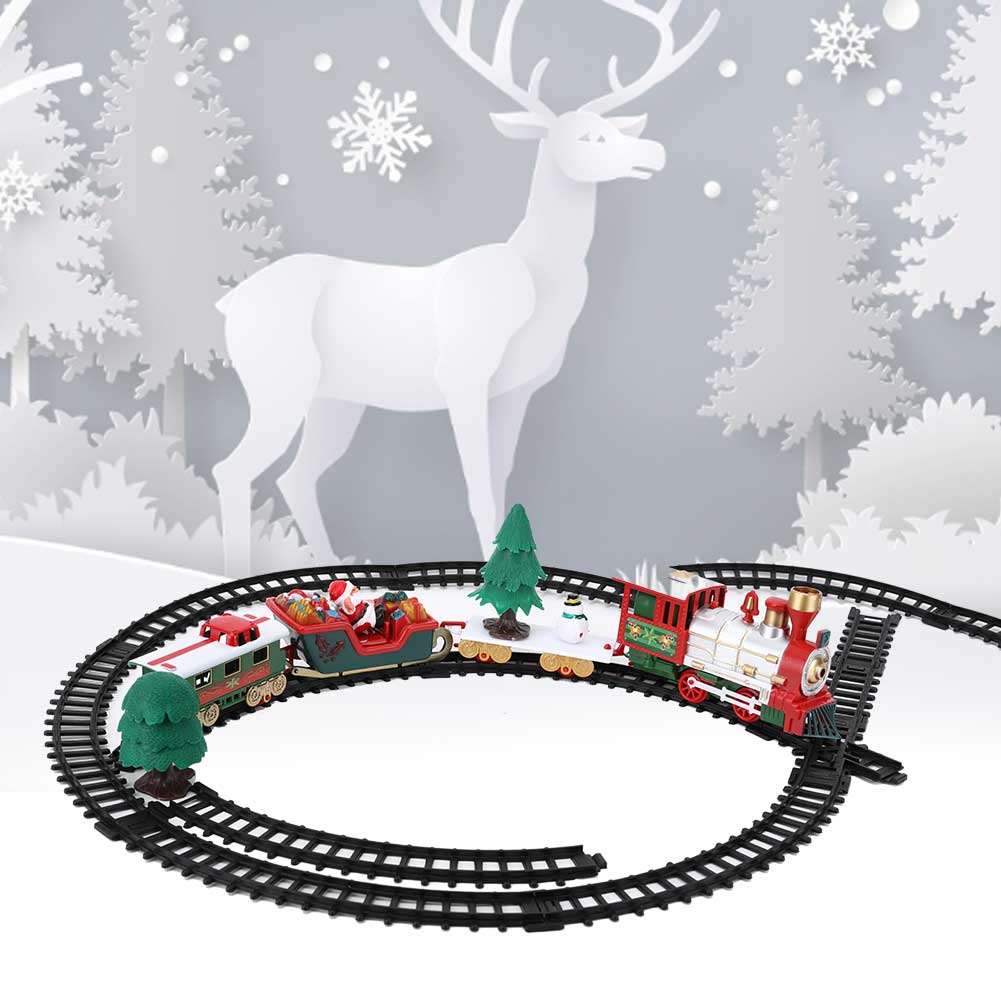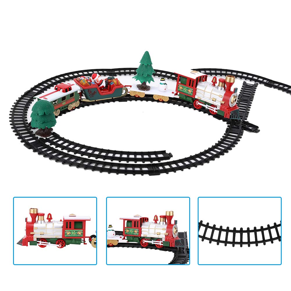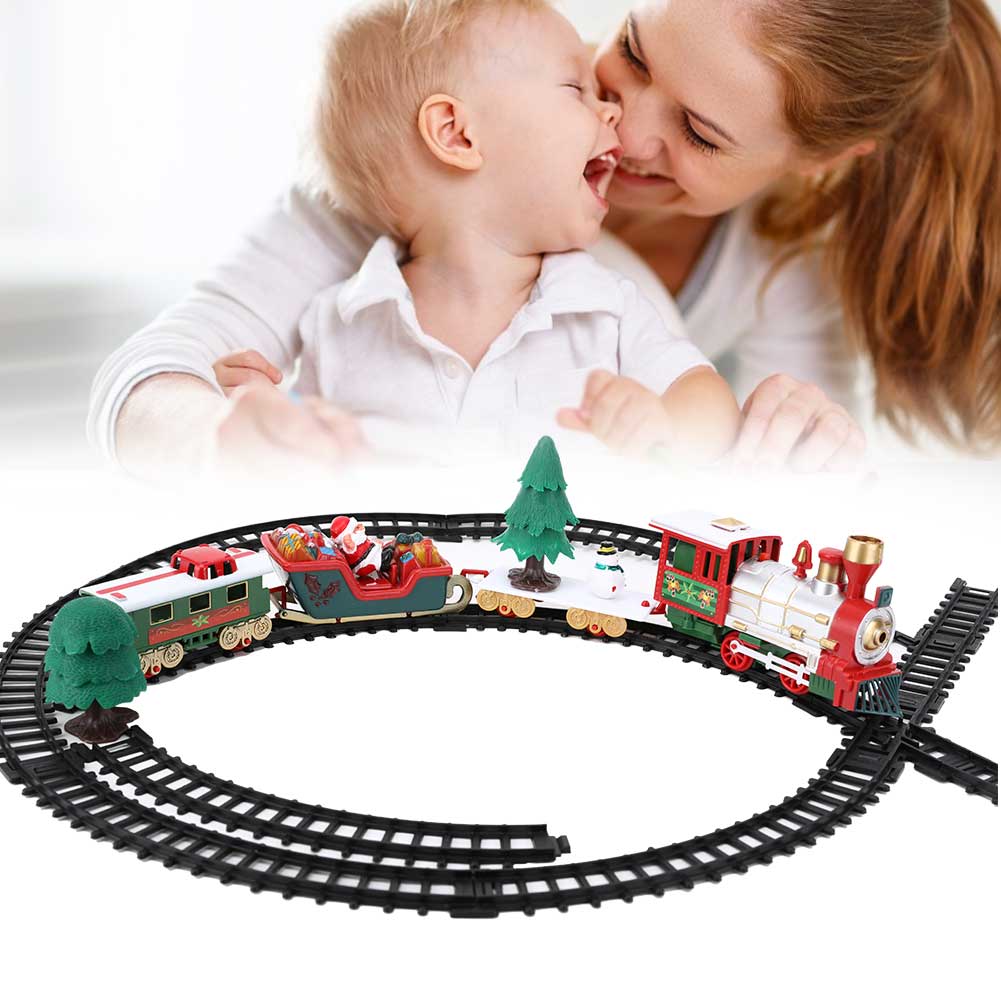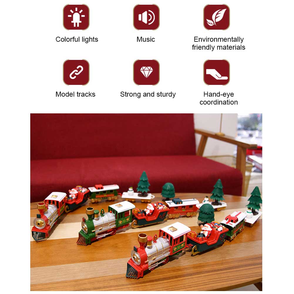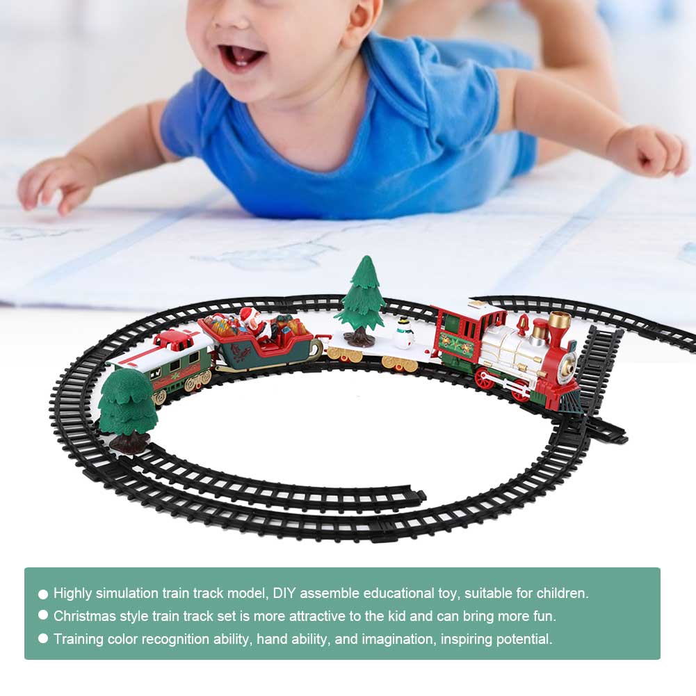 1、Highly simulation train track model, DIY assemble educational toy, suitable for children. 2、Christmas style train track set is more attractive to the kid and can bring more fun. 3、Training color recognition ability, hand ability, and imagination, inspiring potential. 4、Children can play with families or friends to enhance their interaction and communication. 5、Using plastic material, burr-free, making it smoother, safe material, healthy and non-toxic.
