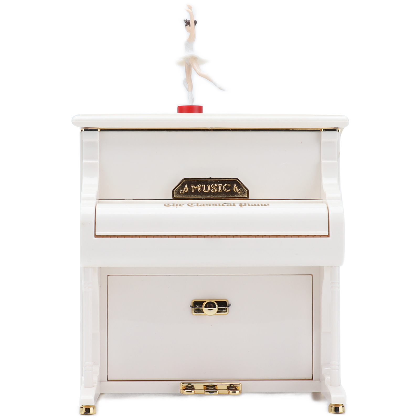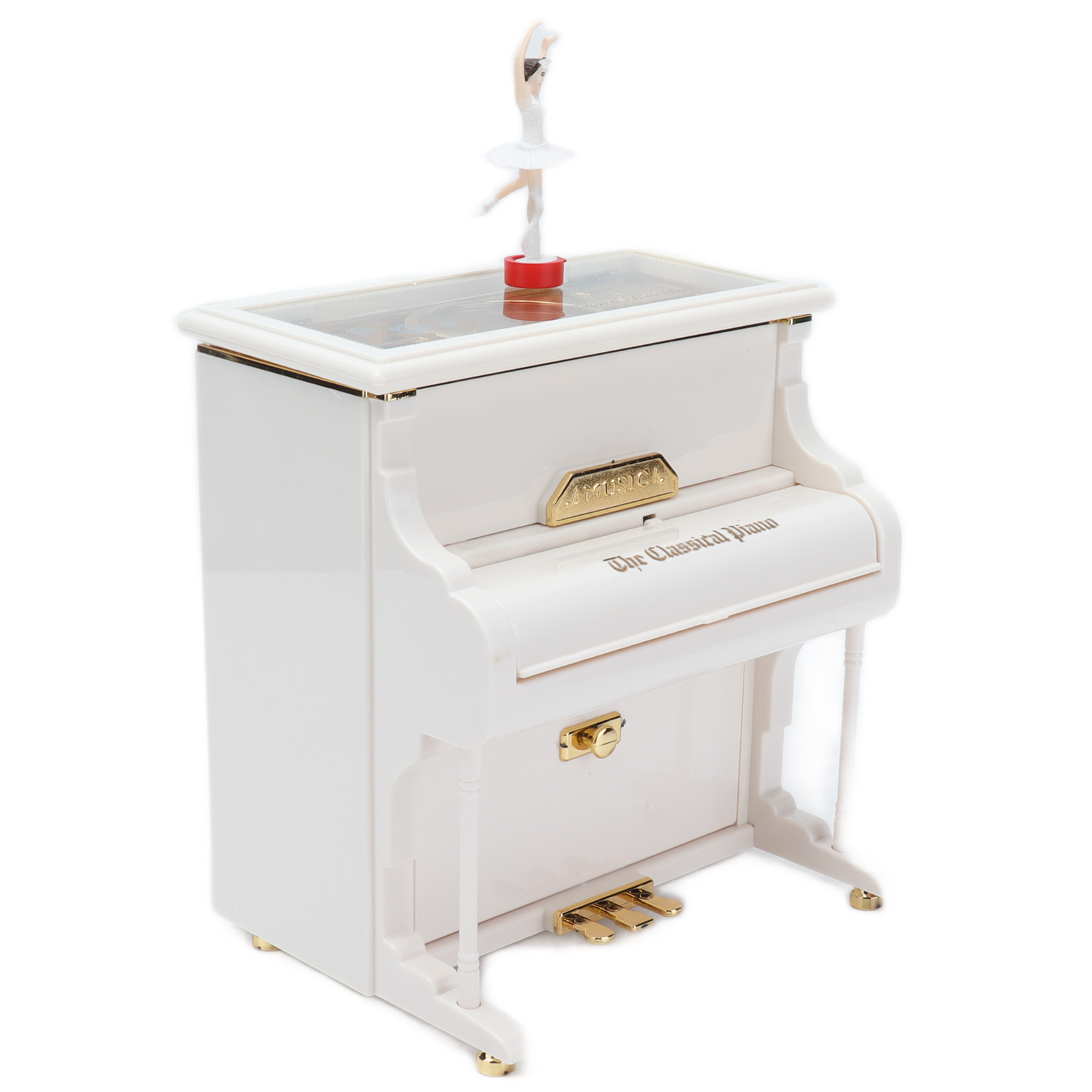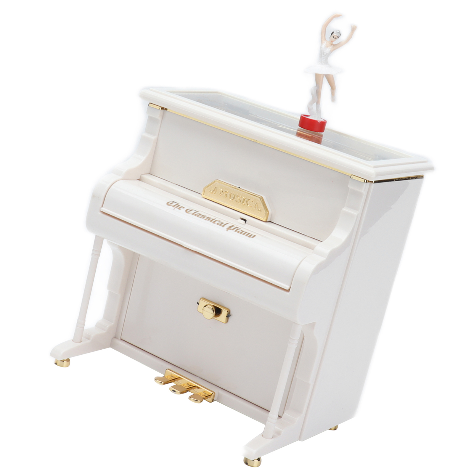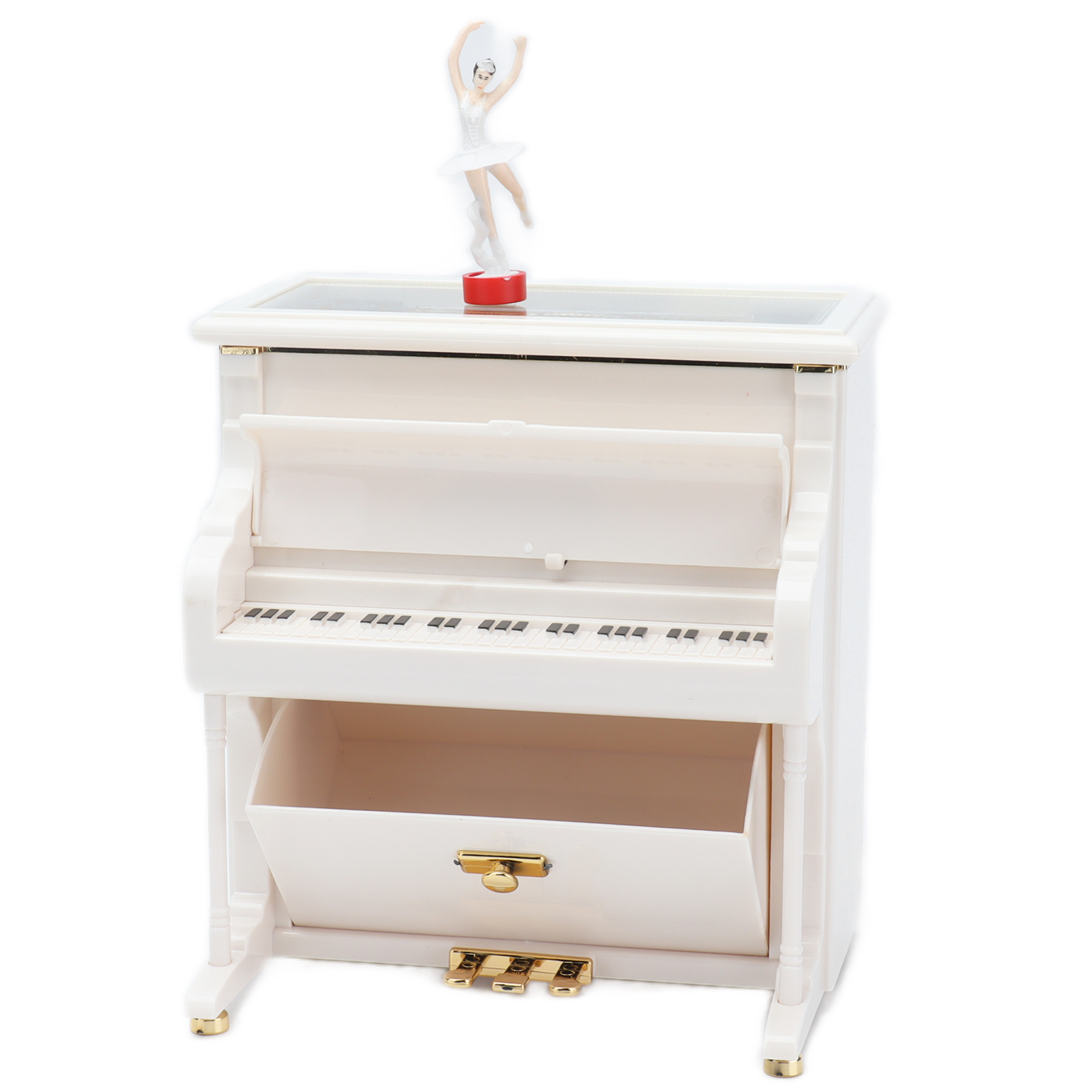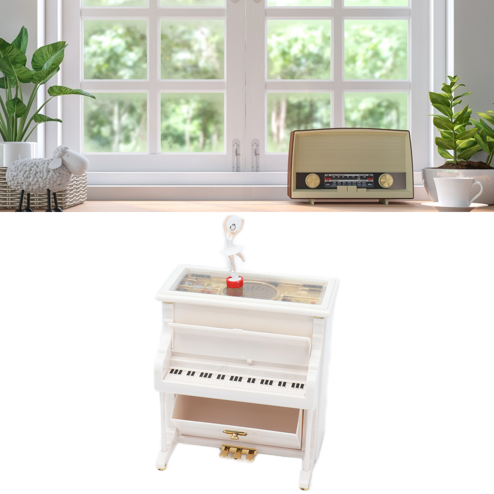 1、Mechanical Music Box: No batteries, turn the spring, the ballerina will rotating slowly, and you will hear soft music. 2、Exquisite Workmanship: Beautiful ballerinas dance on pianos with black and white keys, graceful and delicate. 3、Multifunctional: Piano music box can also be used as desktop decorations,friend or holiday gift and children's toys, etc. 4、Excellent Material: Piano shell is made of high quality ABS material, wear resistant and durable, not easy to damage. 5、Ideal Gift: Perfect adorable gift for kids or lover, for Wedding, Anniversary, Children's Day, Valentines day, baby shower, Christmas, etc.