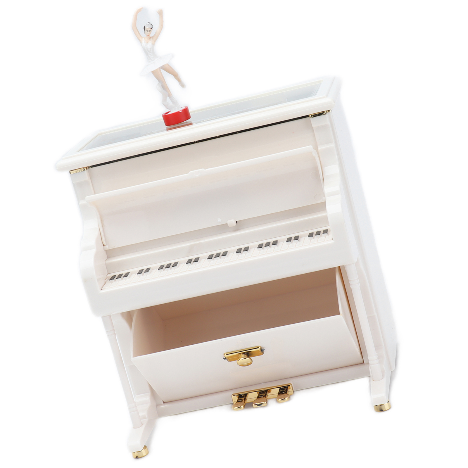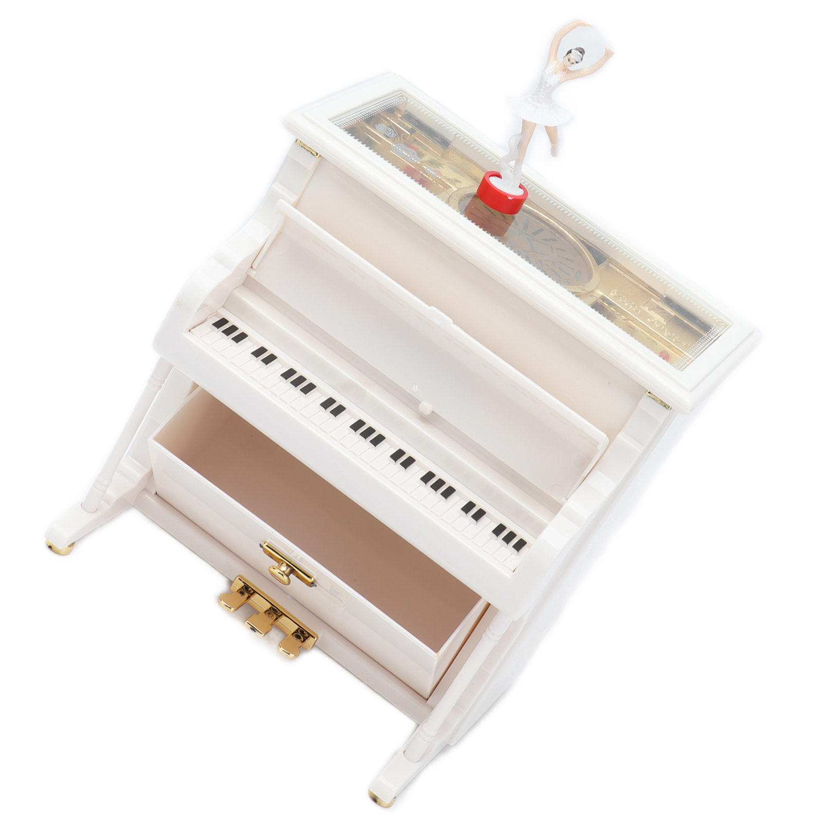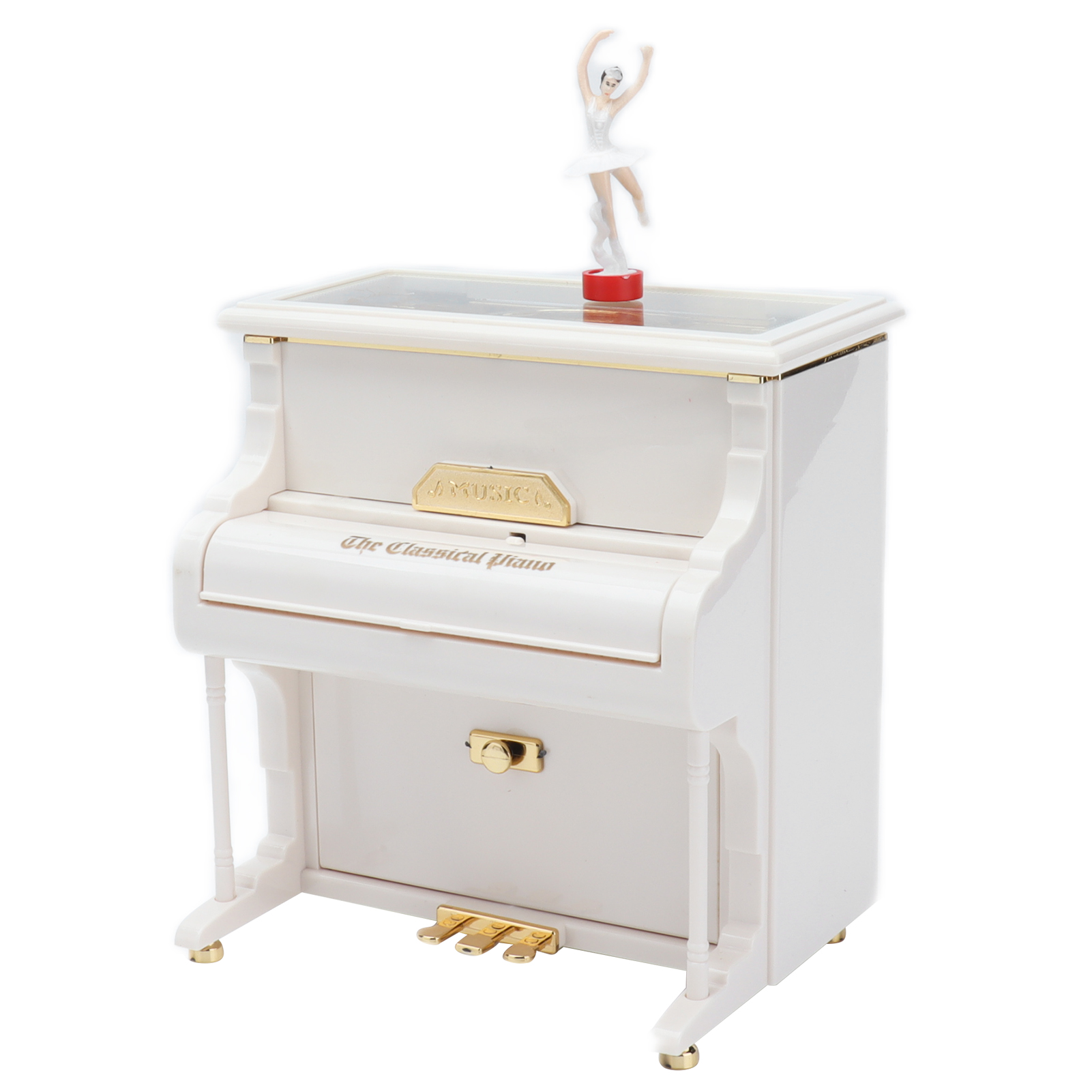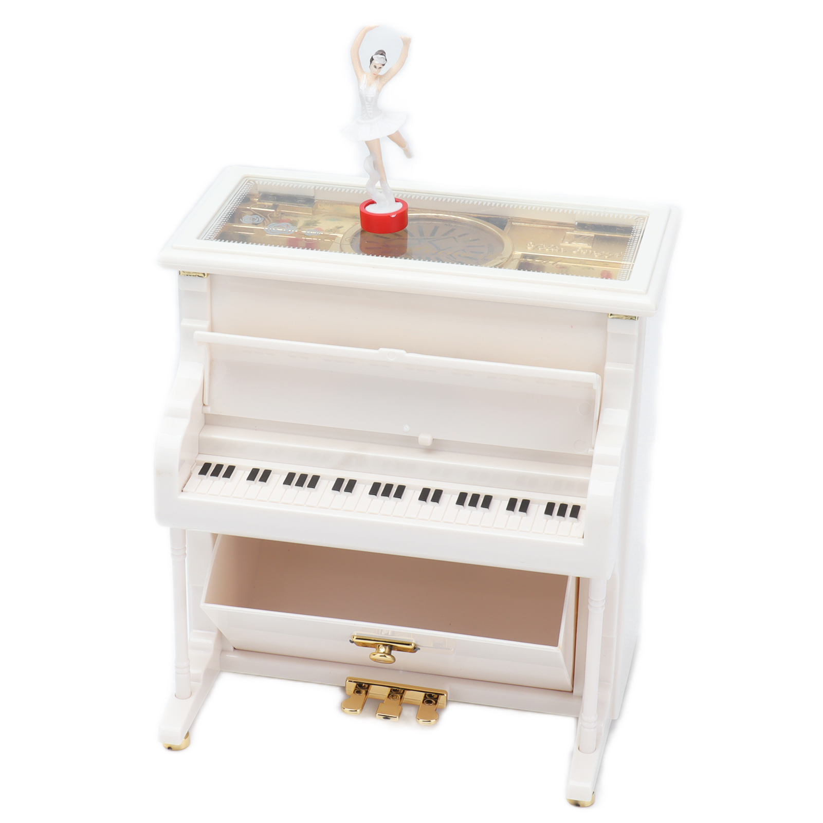 1、Mechanical Music Box: No batteries, turn the spring, the ballerina will rotating slowly, and you will hear soft music. 2、Exquisite Workmanship: Beautiful ballerinas dance on pianos with black and white keys, graceful and delicate. 3、Multifunctional: Piano music box can also be used as desktop decorations,friend or holiday gift and children's toys, etc. 4、Excellent Material: Piano shell is made of high quality ABS material, wear resistant and durable, not easy to damage. 5、Ideal Gift: Perfect adorable gift for kids or lover, for Wedding, Anniversary, Children's Day, Valentines day, baby shower, Christmas, etc.