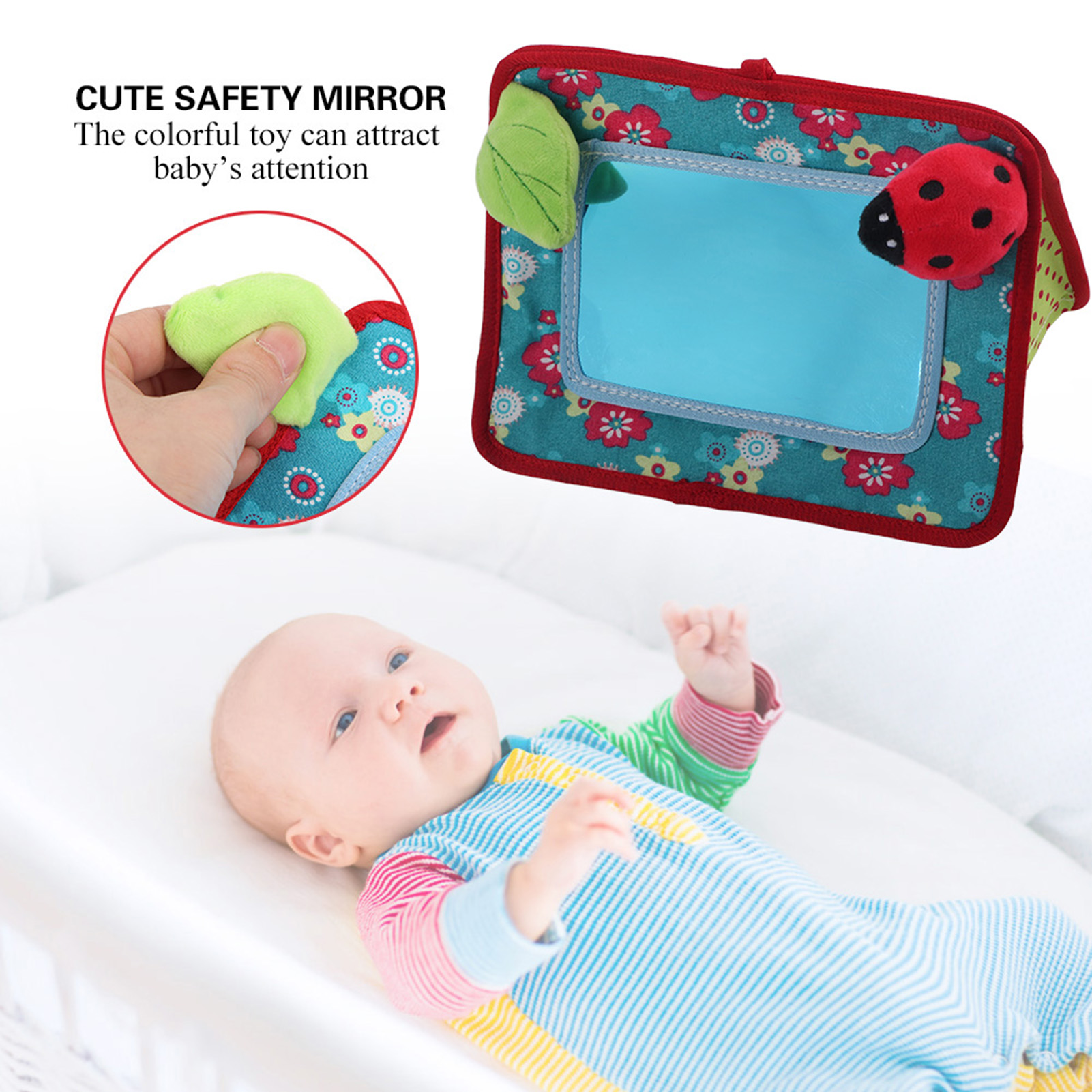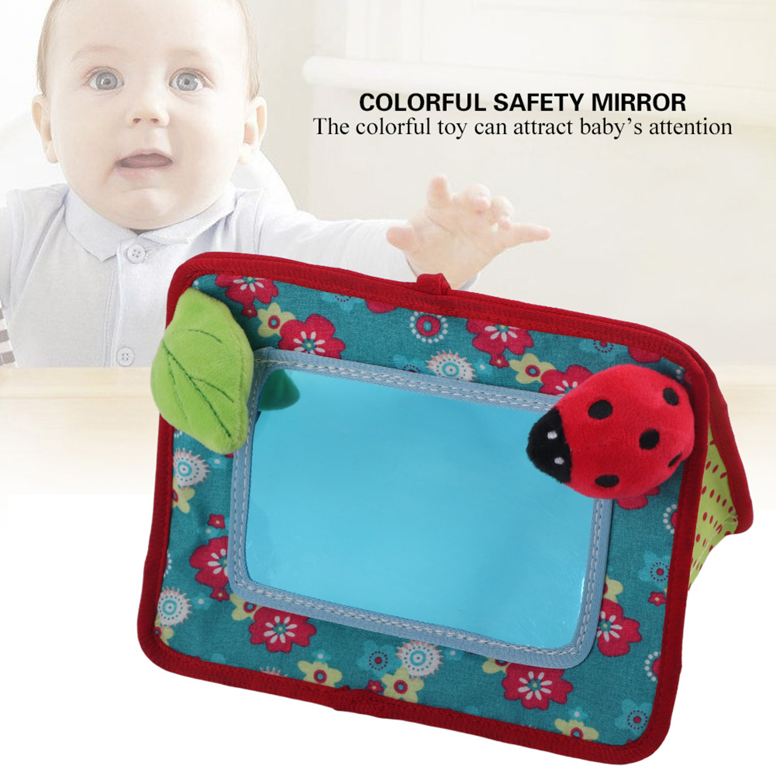 1、High quality fabric material, safe and non‑toxic; it can be used to develop kid's listening ability and hand‑eye coordination ability 2、Your baby can have the knowledge of safety mirror of baby stroller 3、Before you use the safety mirror, please peel off the protective film 4、The colorful safety mirror can attract kid's attention 5、Reusable and durable: it can be used repeatedly and durable for long time use