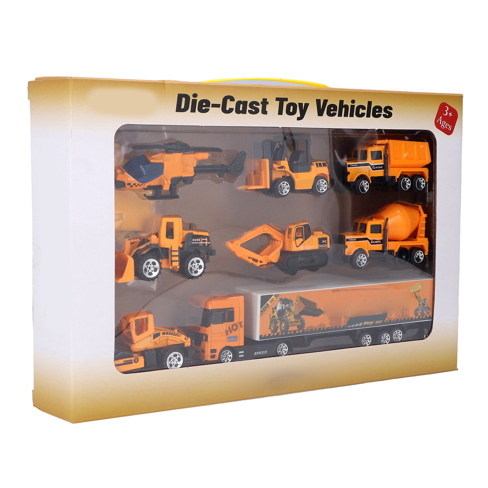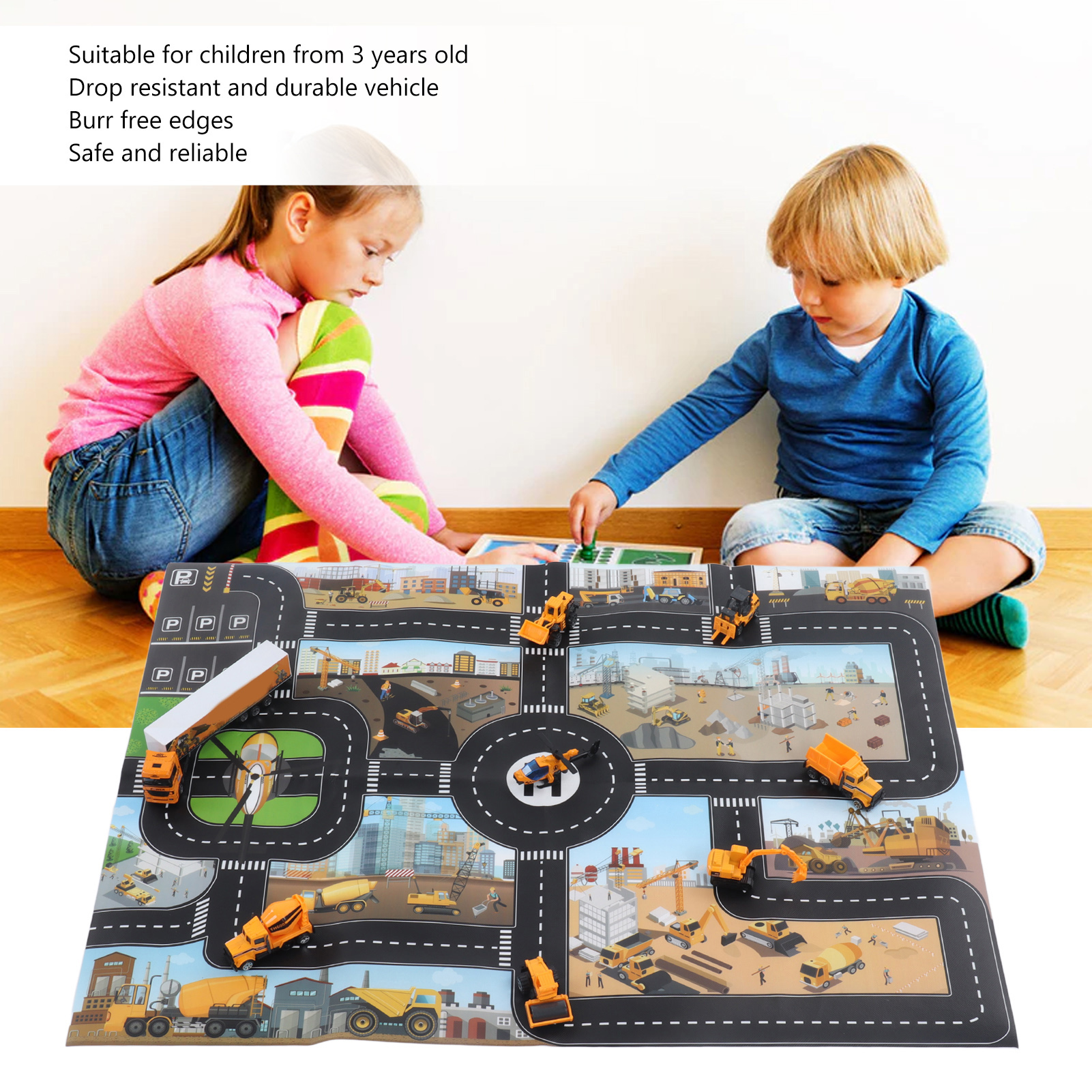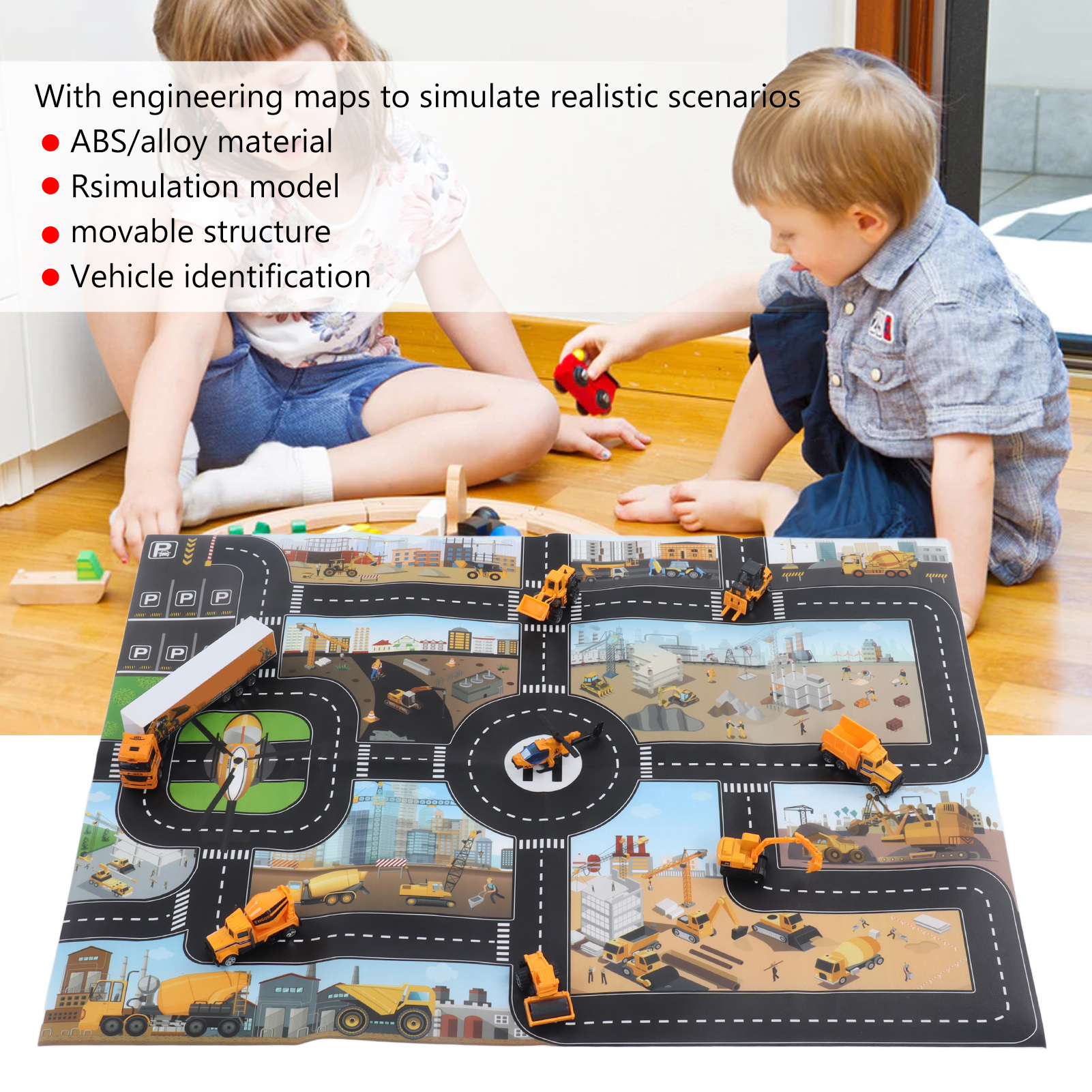 1、CONSTRUCTION VEHICLE SIMULATION TOYS: Use different kinds of trucks and lifelike simulations of construction site scenes. Create a new world of engineering for children to explore freely. 2、RICH ACCESSORIES: The engineering vehicle playset includes a wide range of signposted obstacles and other scene accessories for imaginative play. 3、EASY TO OPERATE: The construction site vehicles toy set simulates the operation of engineering, with no limitations on joint movement. Inertial glide, simple push and go. 4、EDUCATIONAL TOYS: Kids engineering truck playset develop key early education skills. Exercises children's thinking skills, creativity as well as shape recognition, object identification, creativity and hand‑eye coordination. 5、SAFE MATERIALS: The construction vehicle truck toy set is made of high quality alloy and ABS, sturdy and durable, corrosion resistant, with burr free edges, safe and reliable.