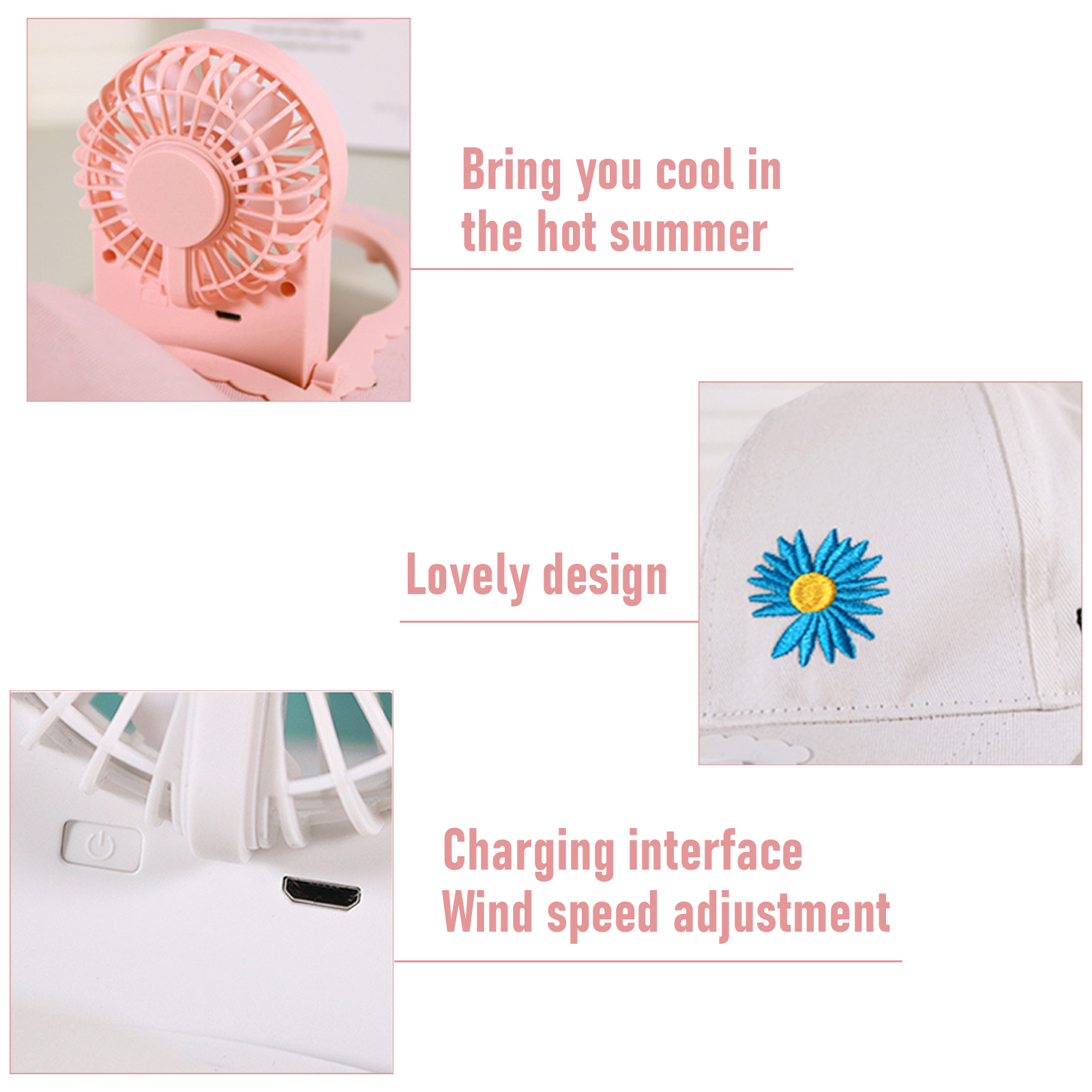1、The fan hat is light, portable, comfortable and breathable, and there are three gears to adjust the wind speed. 2、Equipped with a USB cable, rechargeable design, you can use the power supply to charge the fan at any time when there is no electricity. 3、Normally, you can't do exercise in high temperature and humidity, but this hat with a fan helps you a lot. 4、This fan hat is easy to operate, and the strap on the back of the hat is adjustable, suitable for people with various head sizes. 5、With this hat, you can work comfortably in the hot outdoors instead of sweating all the time.