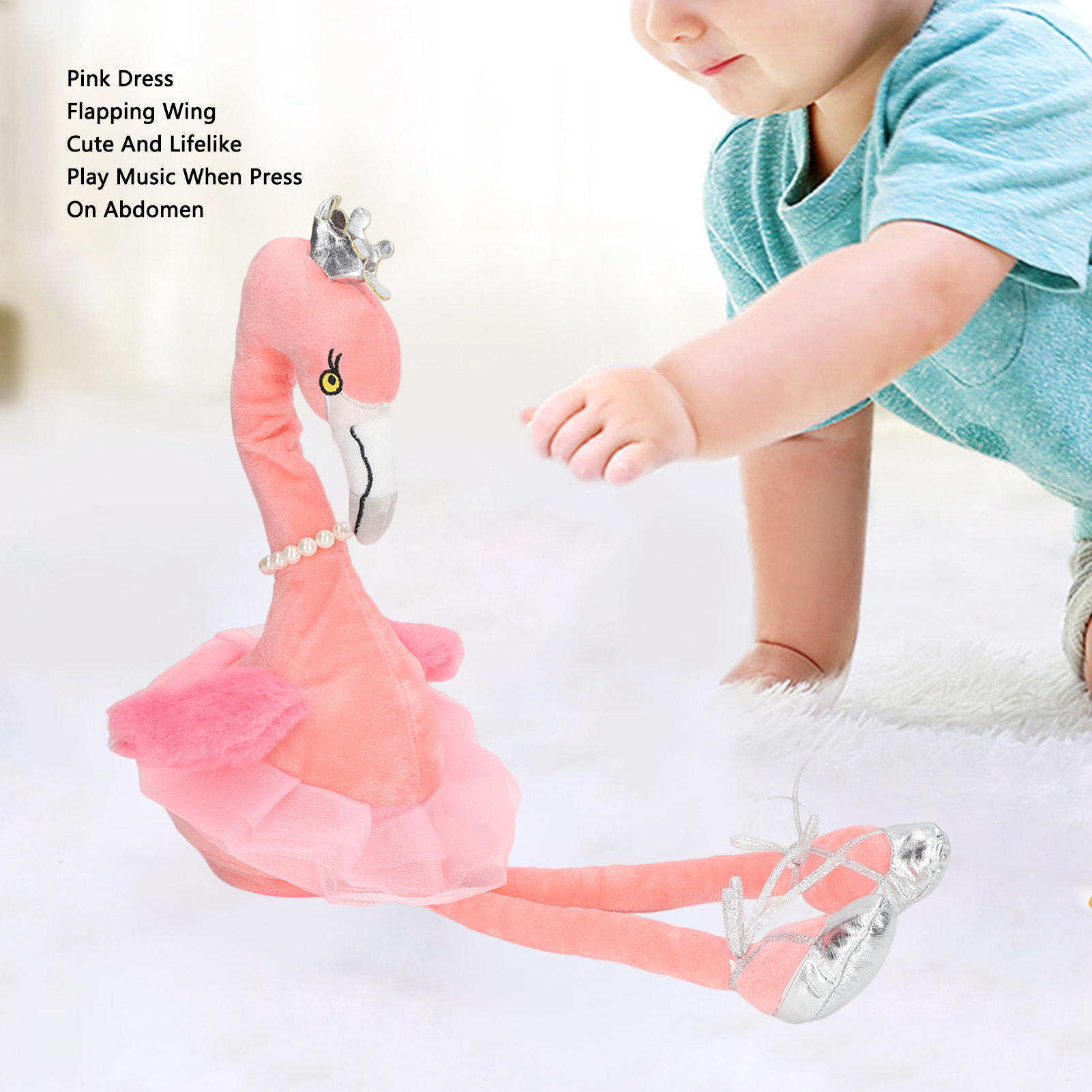 1、Sensory Toys: Ideal entertainment toys for babies and toddlers, animal plush doll with wing that can flap, can have interaction with babies, and develop baby sense of touch. 2、Play Music Function: Dancing animal plush doll will sing and play music when you press on its abdomen. Bring more fun and joy for you and baby. 3、Lovely Appearance: With long neck, signature pink appearance, and lovely pink dress make dancing animal plush doll look very lifelike and cute, suit for give to girls. 4、Portable Design: In addition playing at home, can also be placed in the car as decoration, also convenient for children to join doll theme party. 5、Soft Touching: Made of PP cotton material, feels comfortable, soft and skin friendly, will not scratch kids delicate skin, will not cause skin allergy, and use securely.