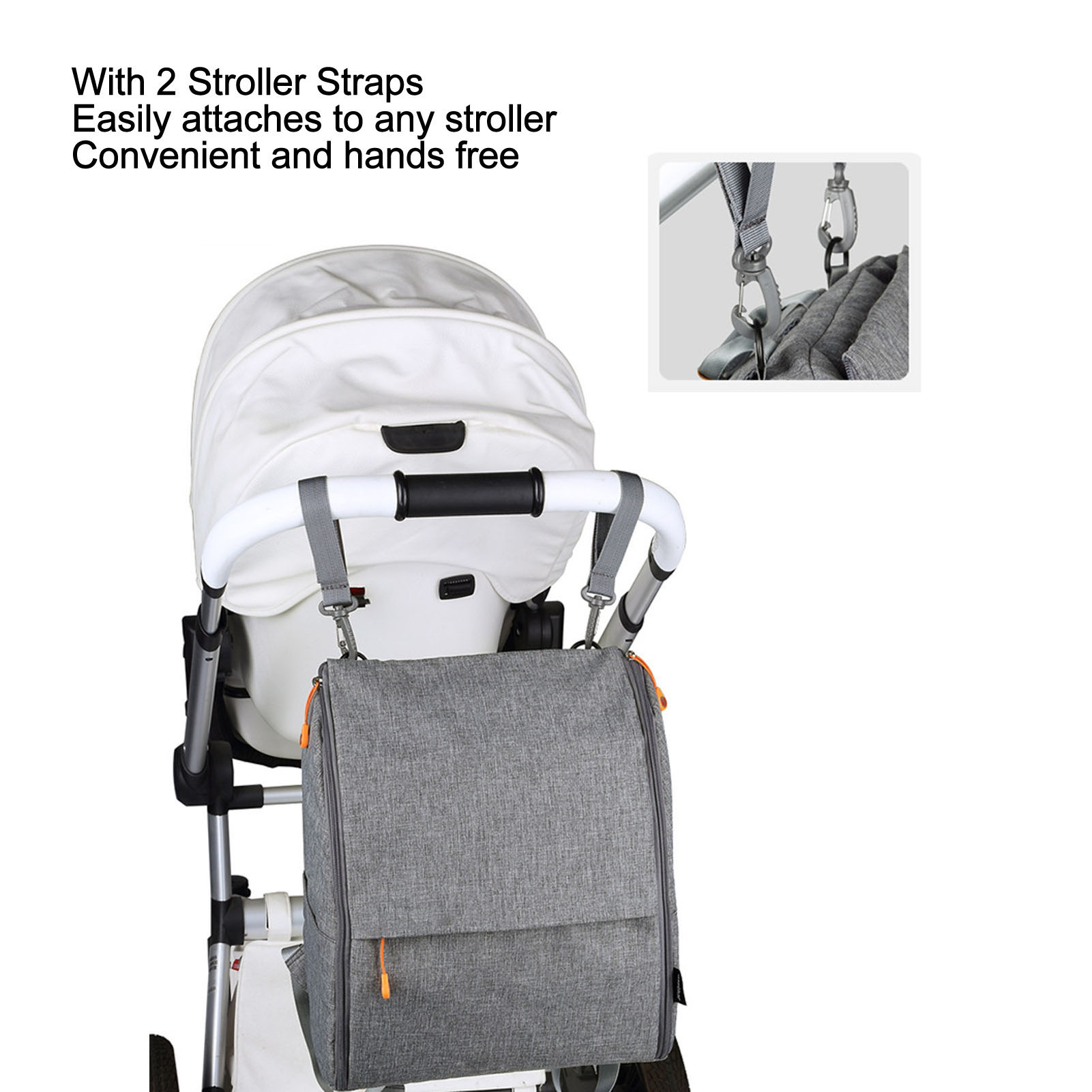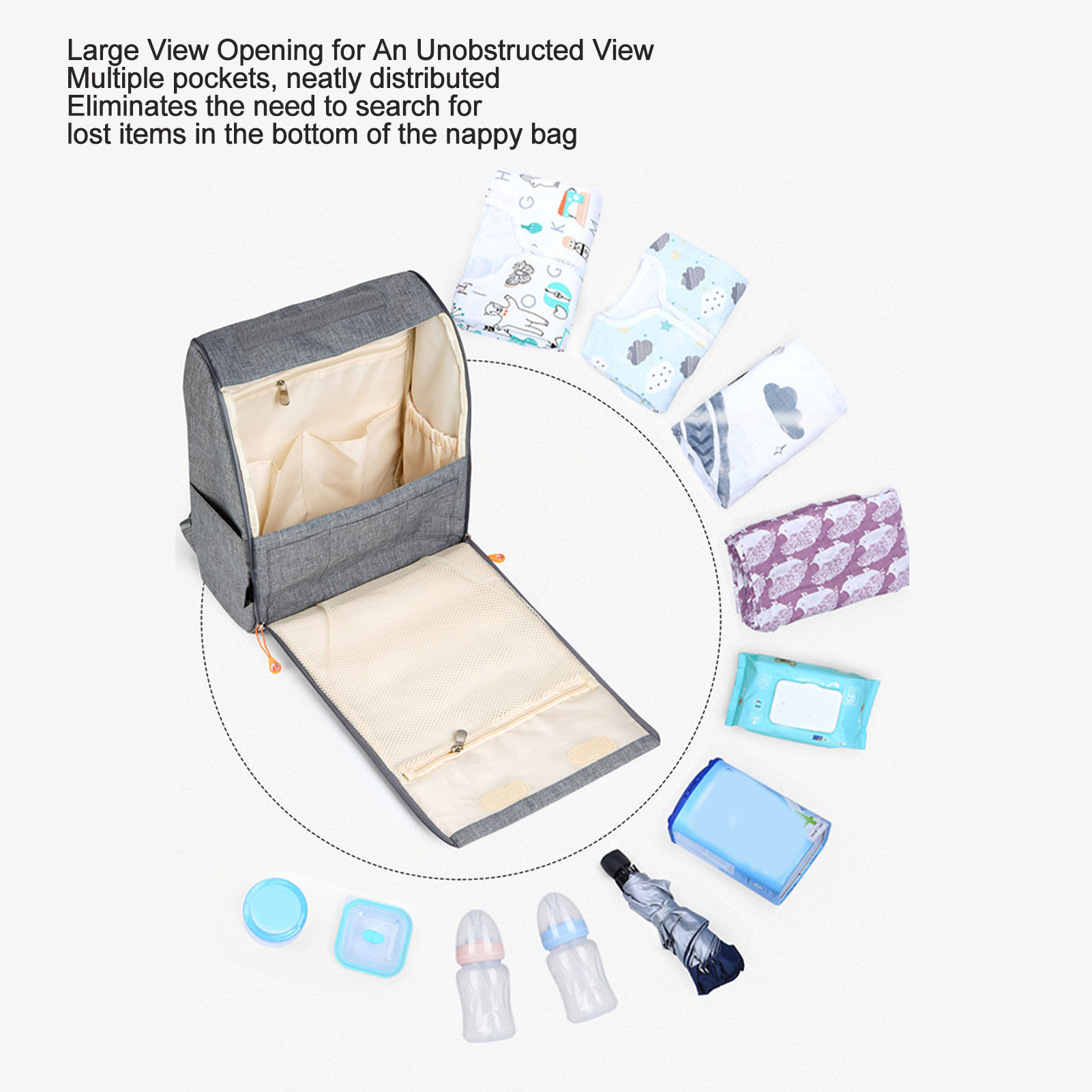 1、Neat Storage: With multiple pockets and a large opening, this nappy bag keeps things neat and organised so you do not have to search for lost items in the bottom of the bag. 2、With Fixing Straps: Nappy bag comes with 2 stroller straps that can be easily attached to any pram. Or securely on top of your carrying luggage. Convenient and freeing up your hands. 3、Functional: The nappy bag easily converts into a backpack or stroller organisation to take you from home to work. Both stylish and functional for travel and outdoor activities. 4、Gift Choice: Baby nappy backpack is made of polyester and is tear resistant, making it a great gift choice for baby welcome parties, new parents, wives and Mothers Day. 5、Large Capacity: Multifunctional baby nappy backpack with lots of space and pockets and a zip closure to store many baby necessities such as baby bottles, tissues, etc.