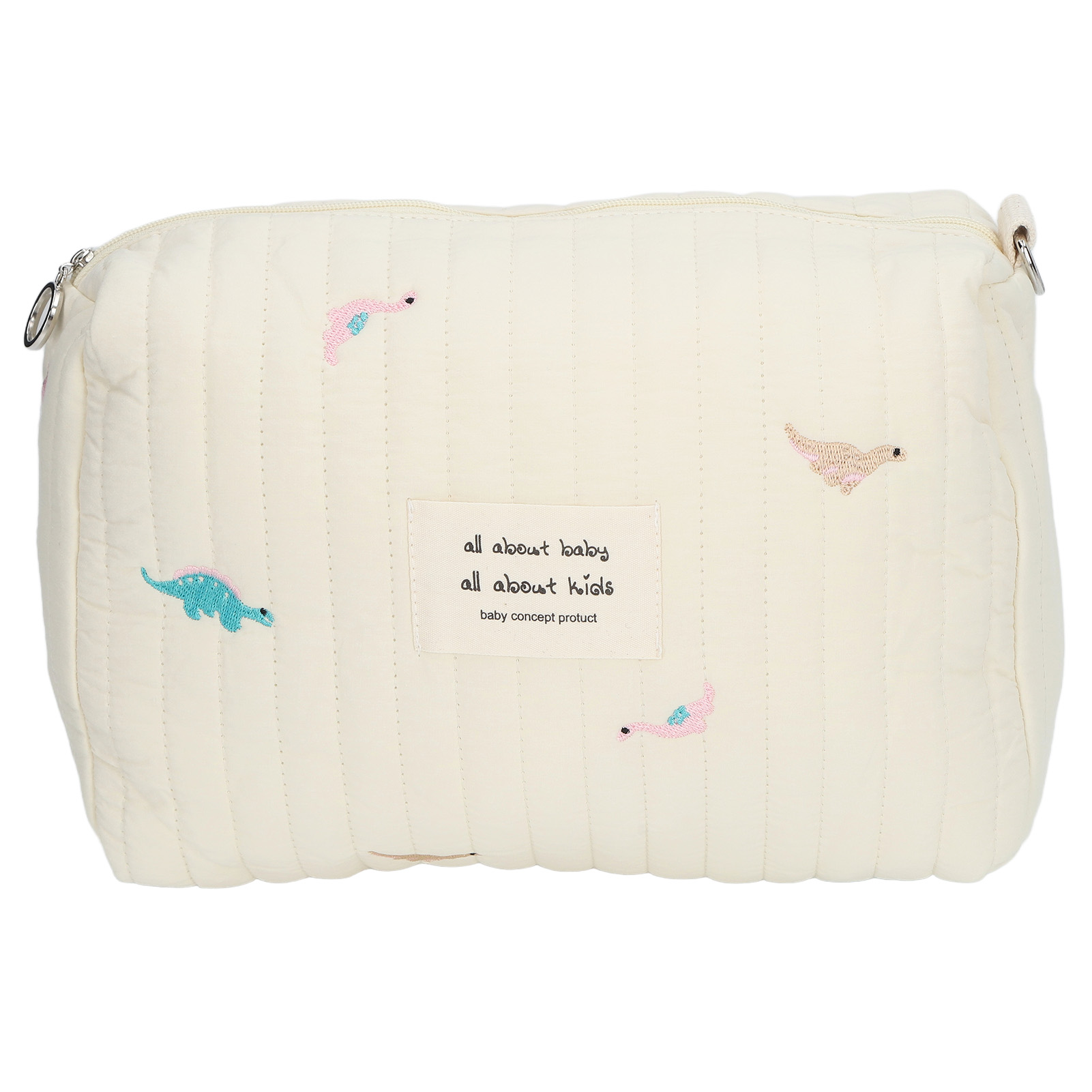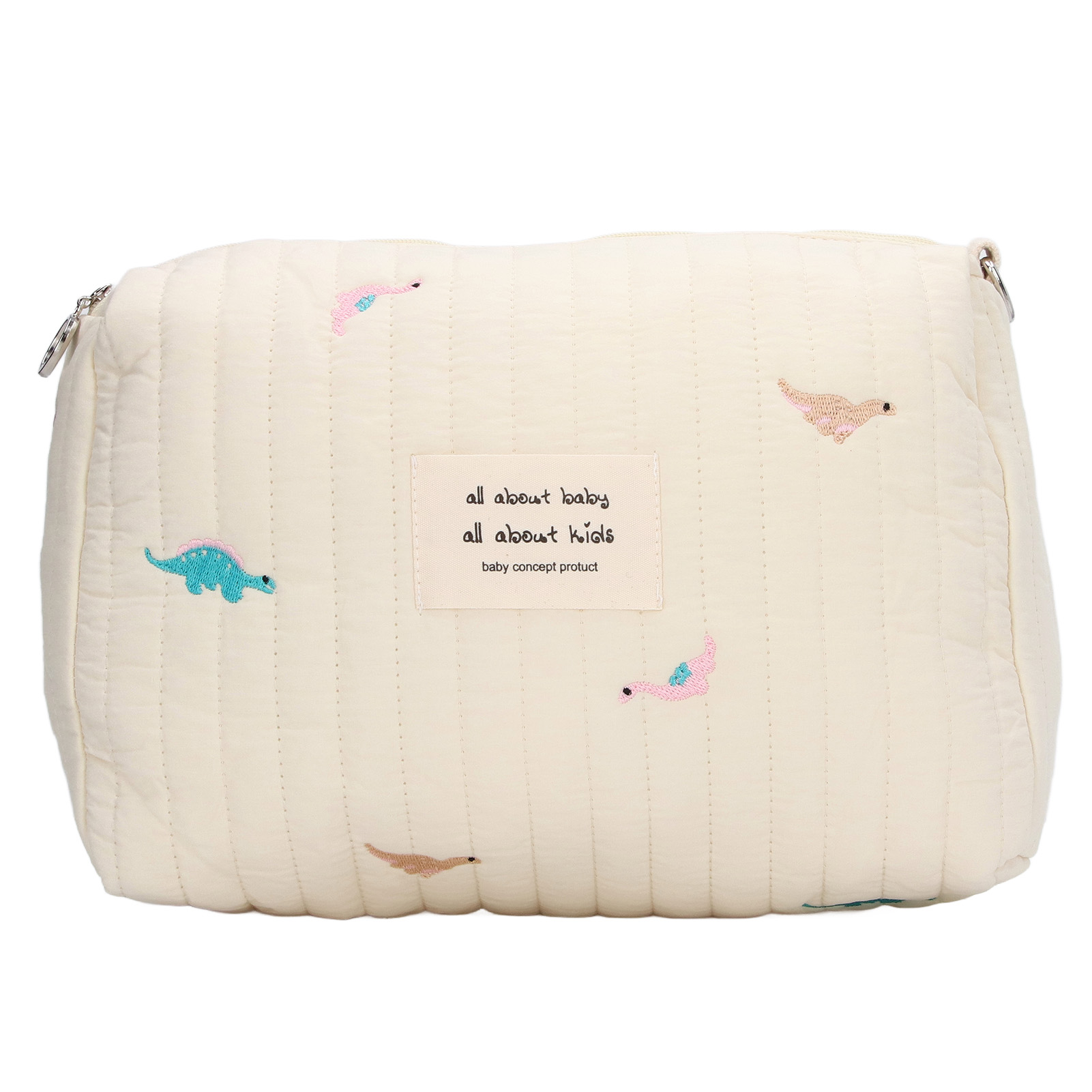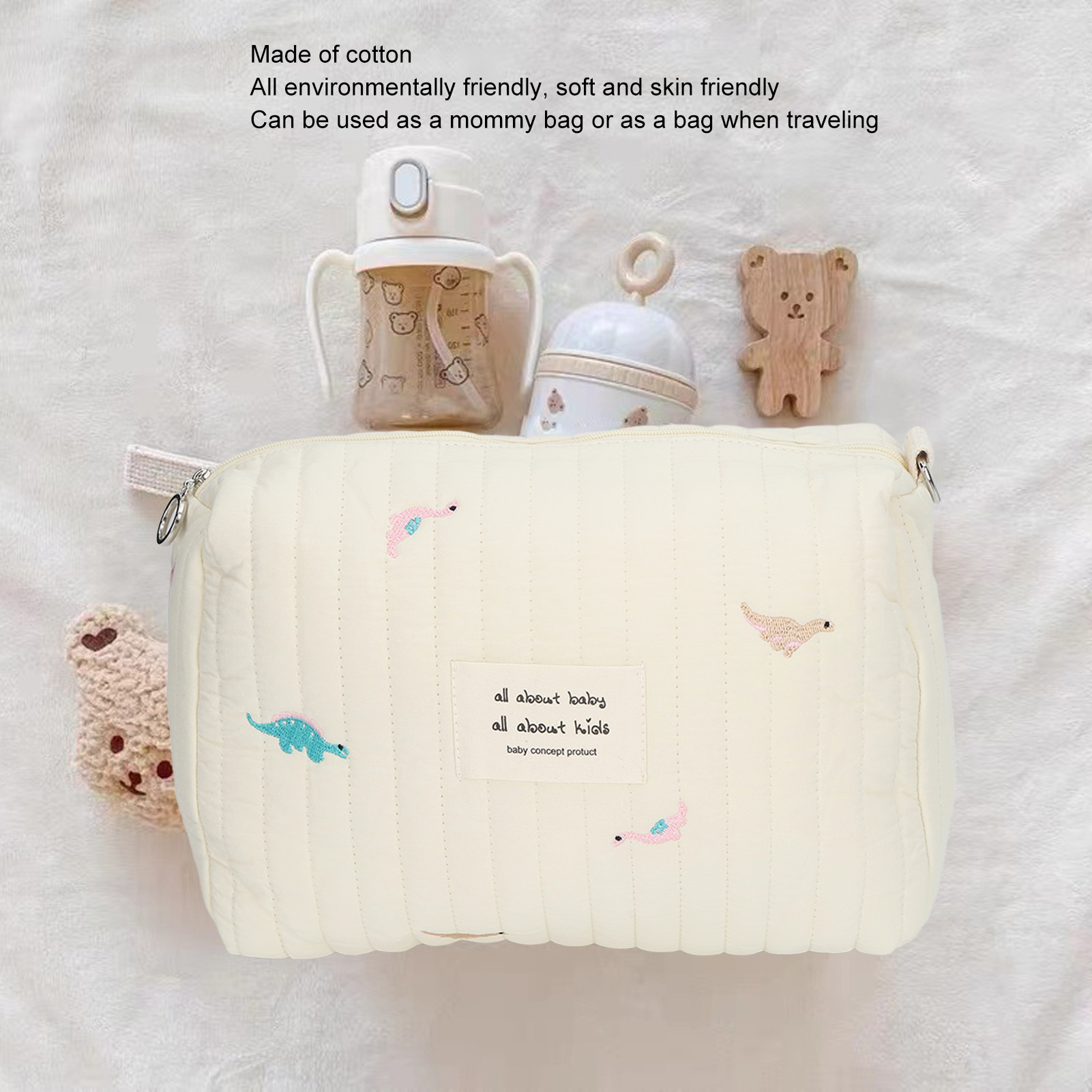 Diaper Bag Organizing Pouch Exquisite Embroidery Soft Cotton Large Capacity Stroller Bag Organizer for Travel Dinosaur