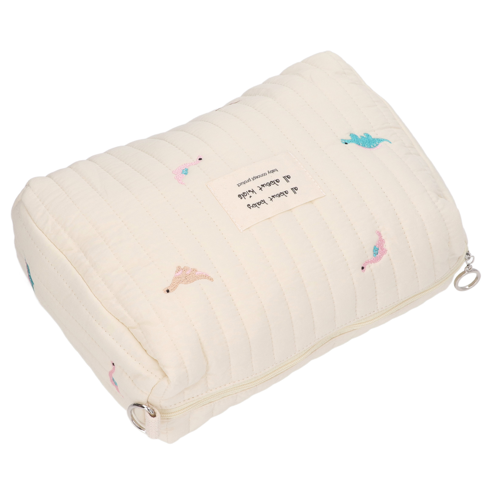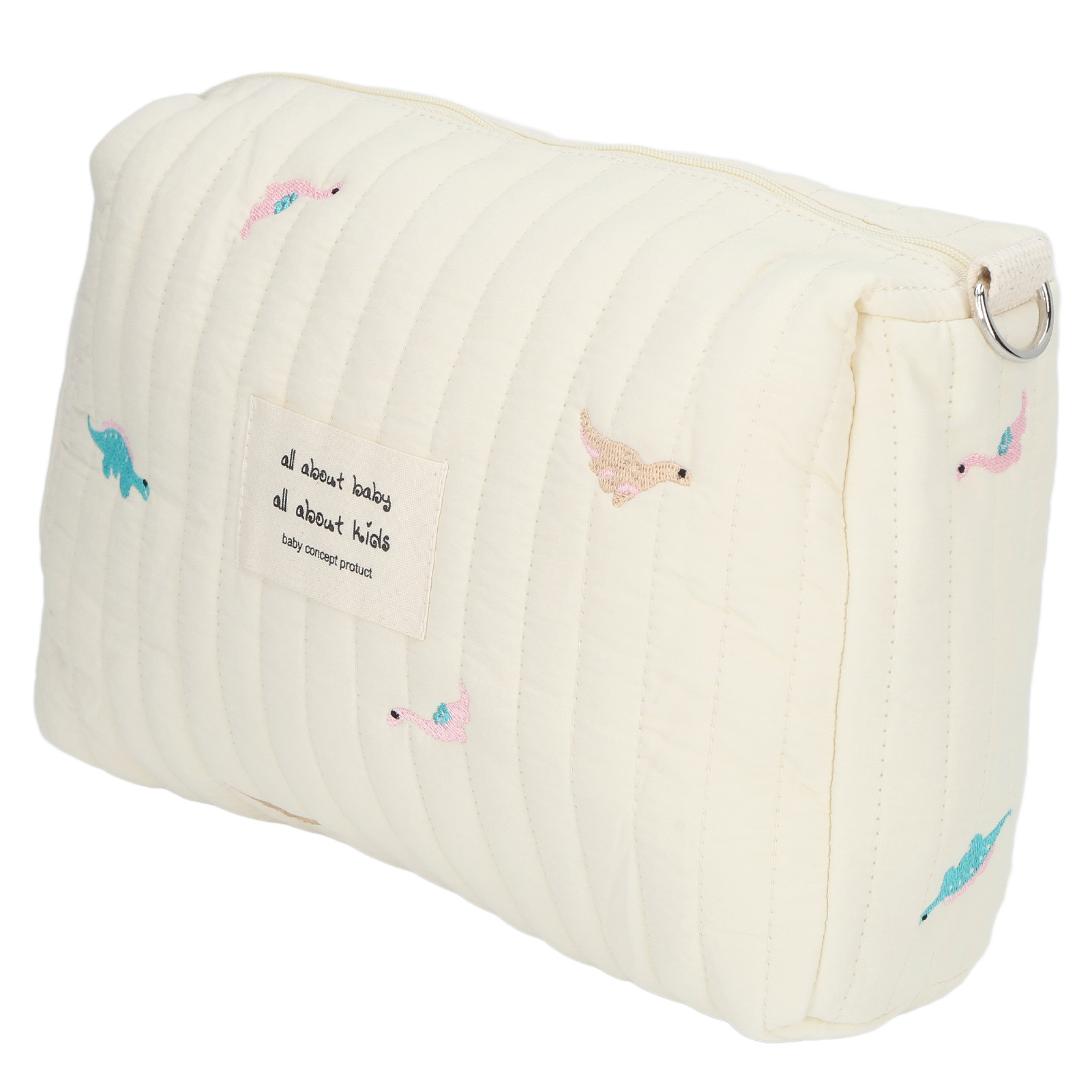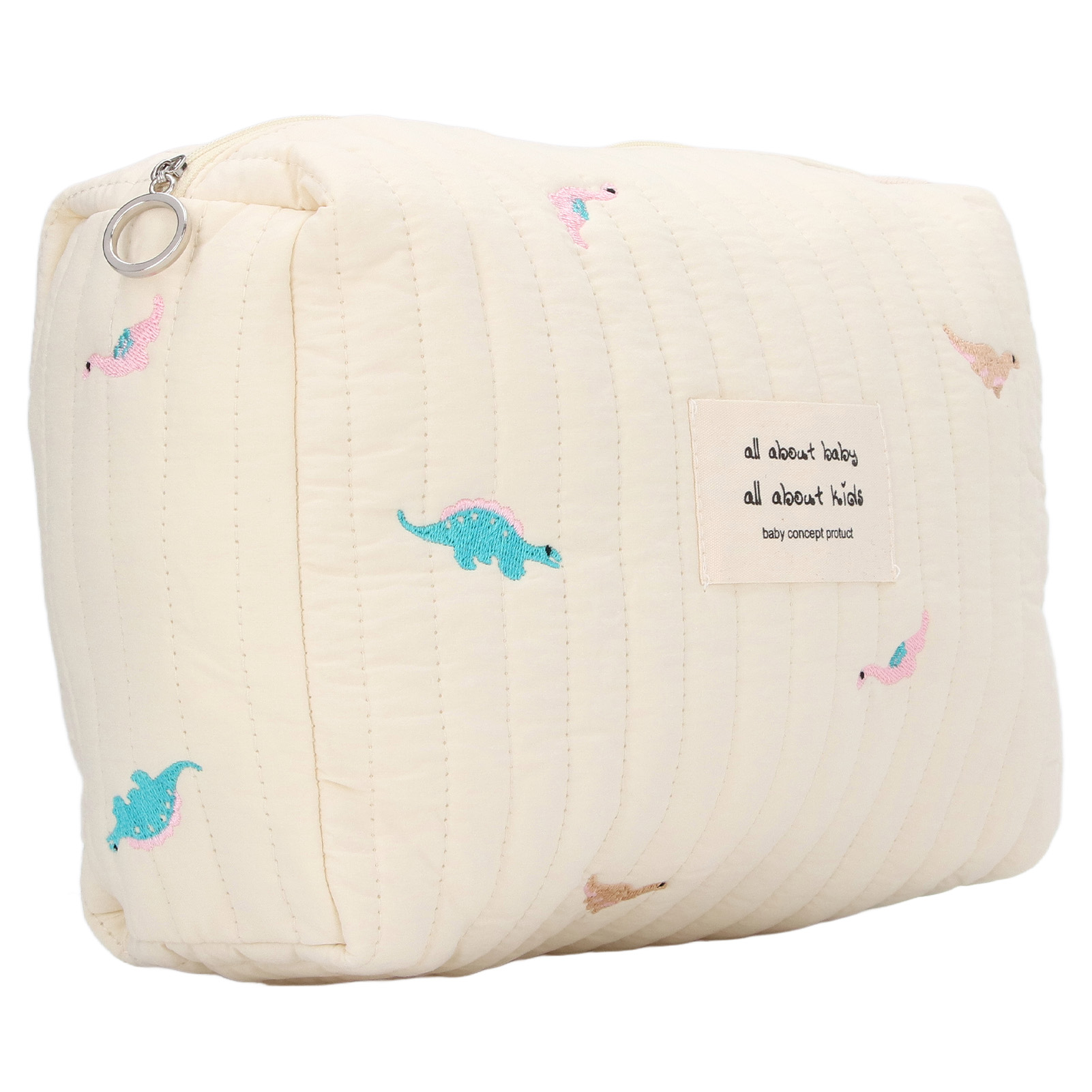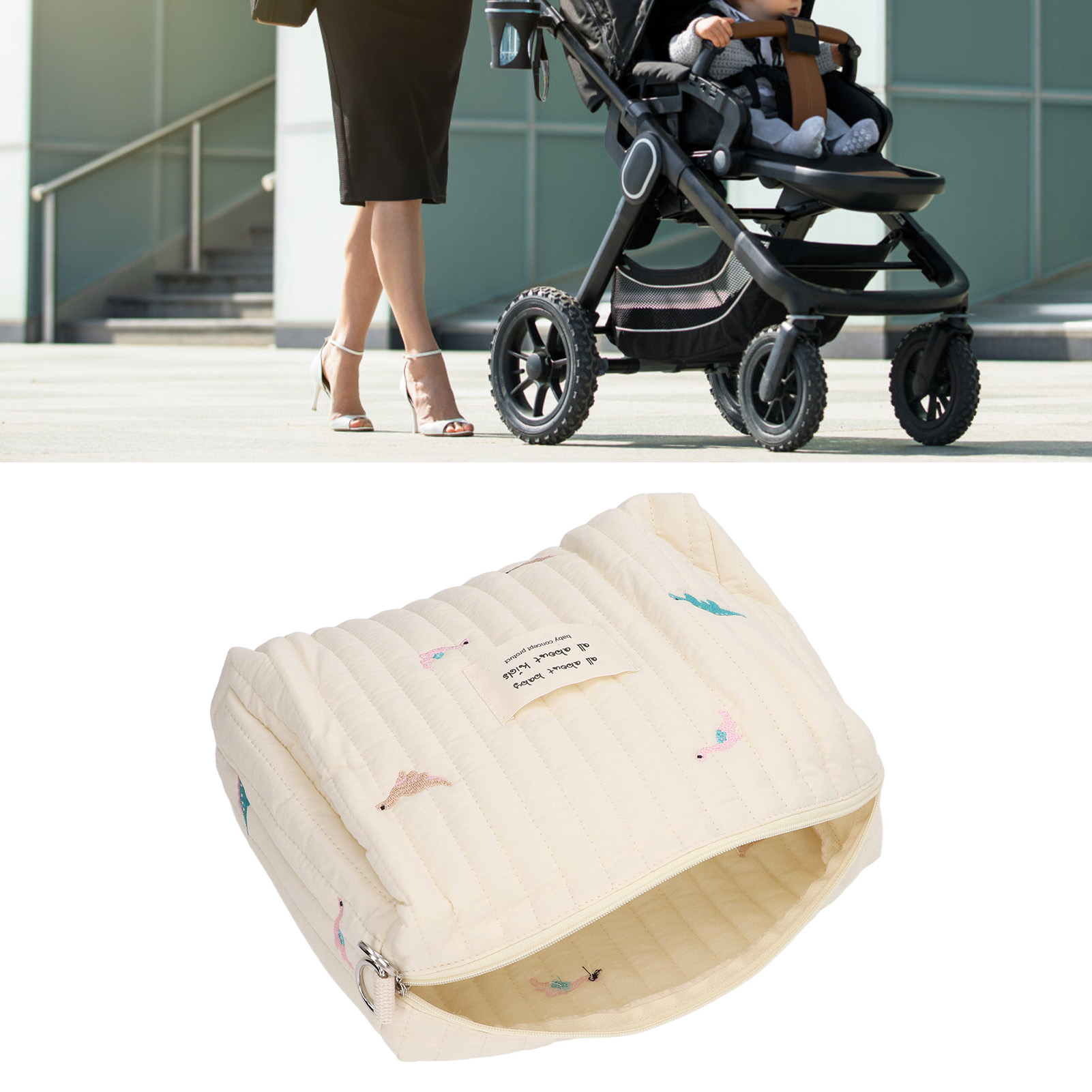 Diaper Bag Organizing Pouch Exquisite Embroidery Soft Cotton Large Capacity Stroller Bag Organizer for Travel Dinosaur