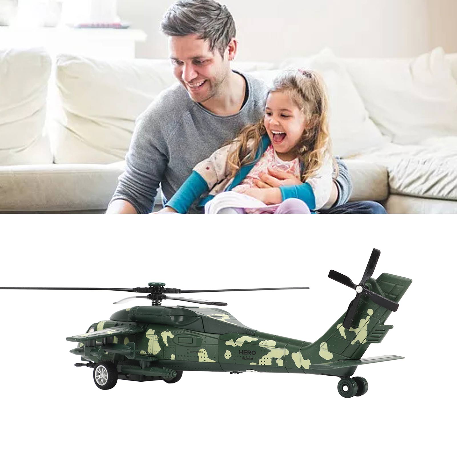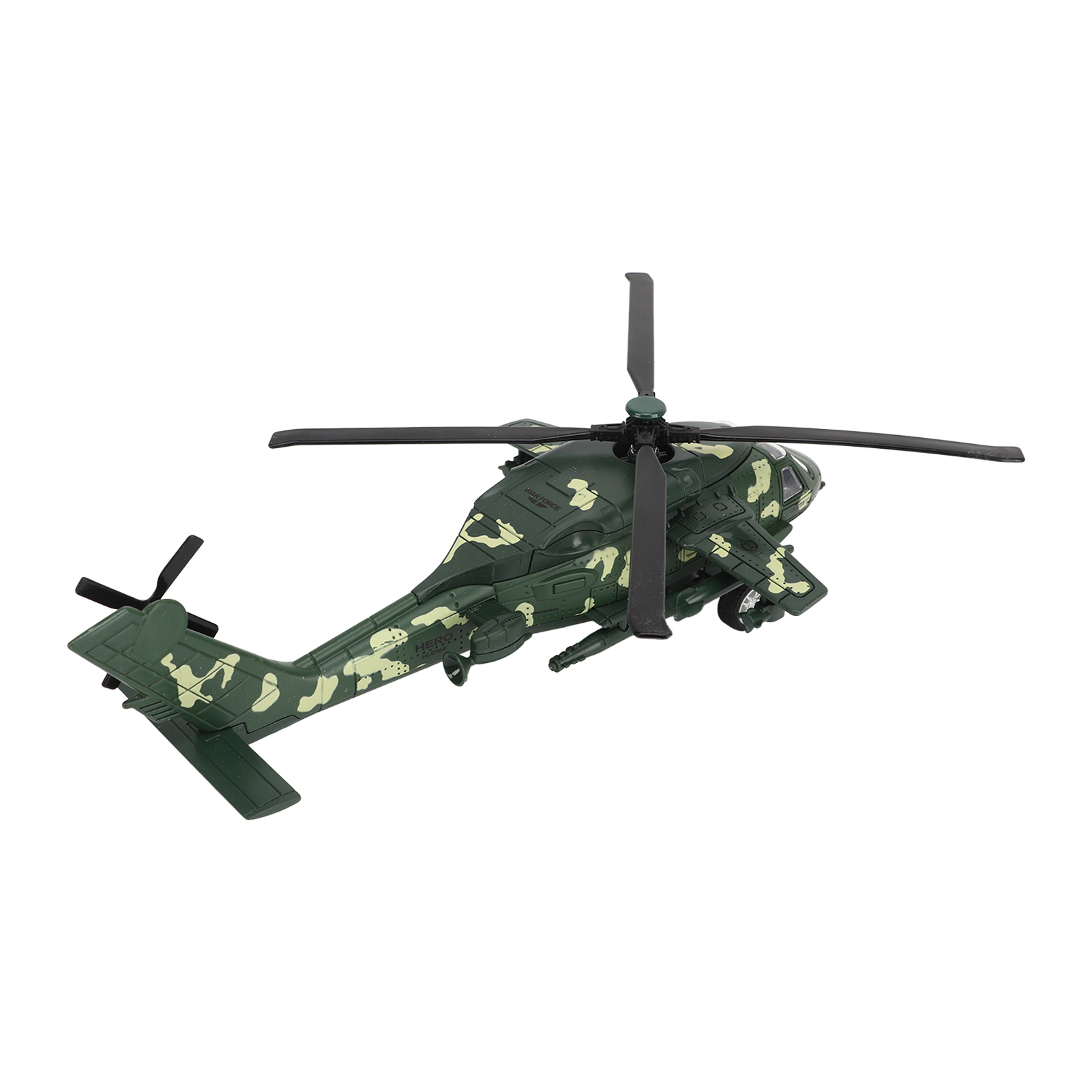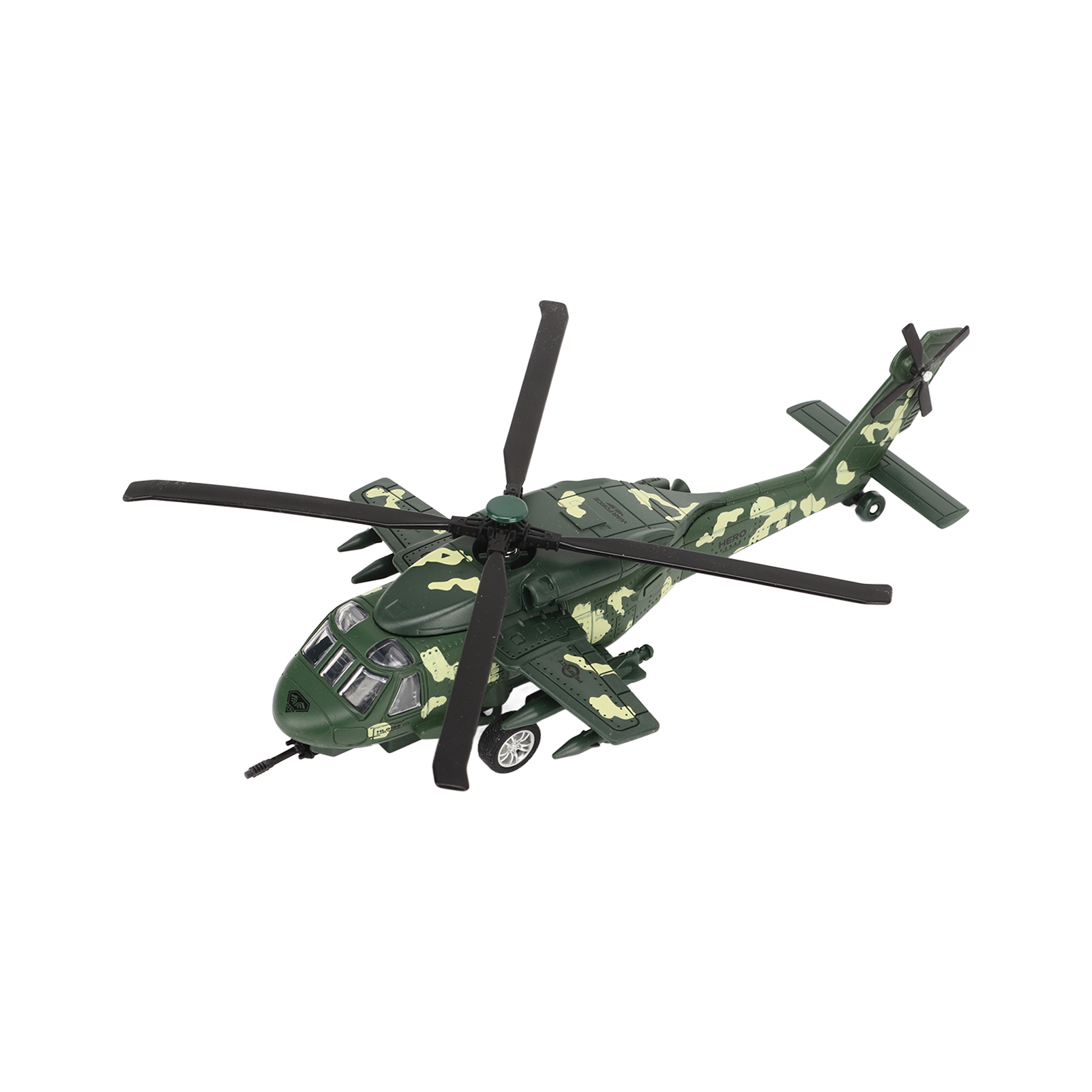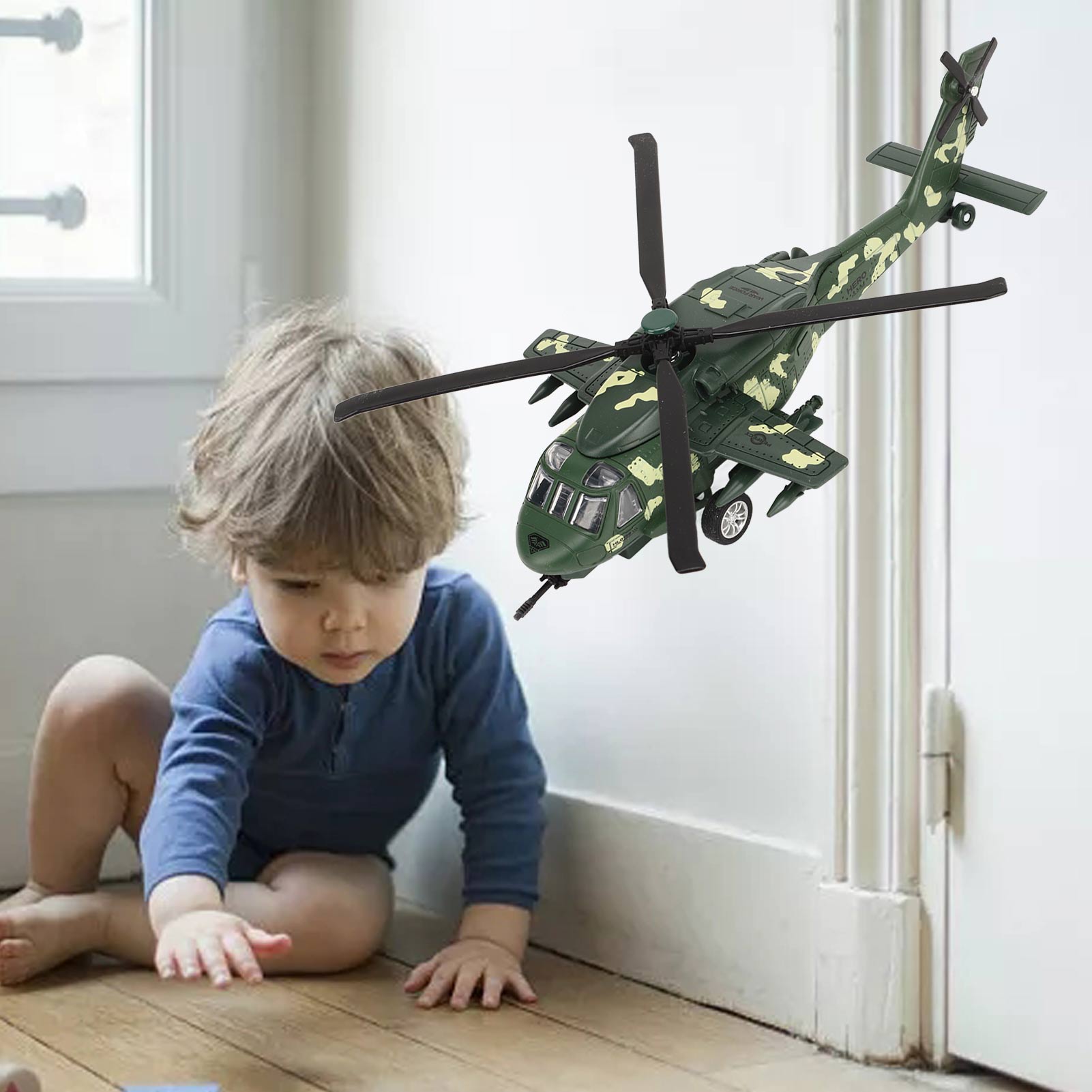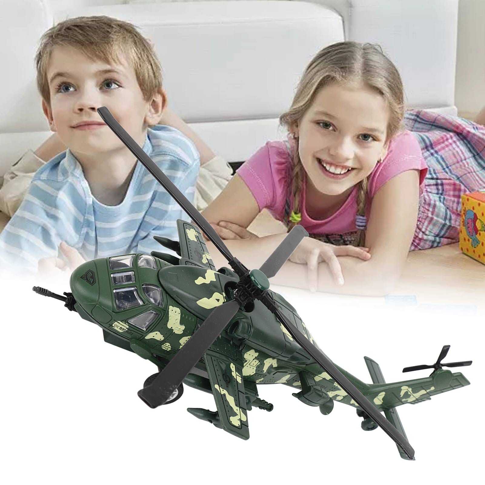1、PULL BACK: Friction powered design, just pull it back and let it go forward naturally, which are perfect for boys and girls above 3 years old. 2、SOUND LIGHT: Diecast helicopter model will produce lights and sounds when you turn on the power button, which adding to the excitement of playtime. 3、FINE WORKMANSHIP: Complete with engraved lines, whether it is the wings, propeller, cockpit or tail, this helicopter model strives for a realistic look. 4、PERFECT GIFT: Fighter helicopter model can be used as a beautiful decoration for office and home. You can also give it as a gift to kids or model collectors. 5、ALLOY MATERIAL: Aircraft model is made of alloy material, which is not easy to rust, more colorful and solid, with a perfect metal texture.
