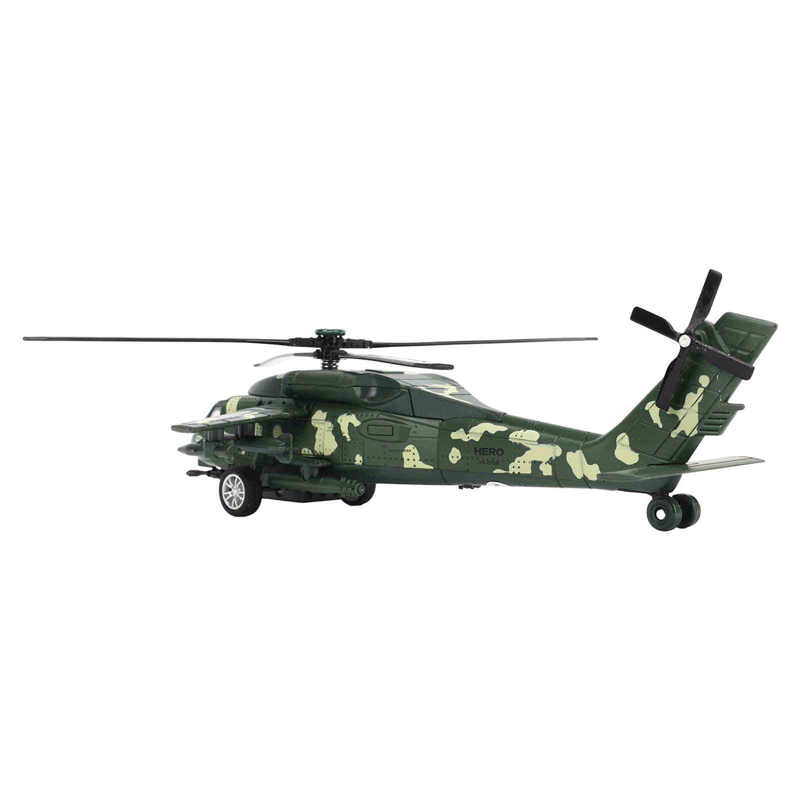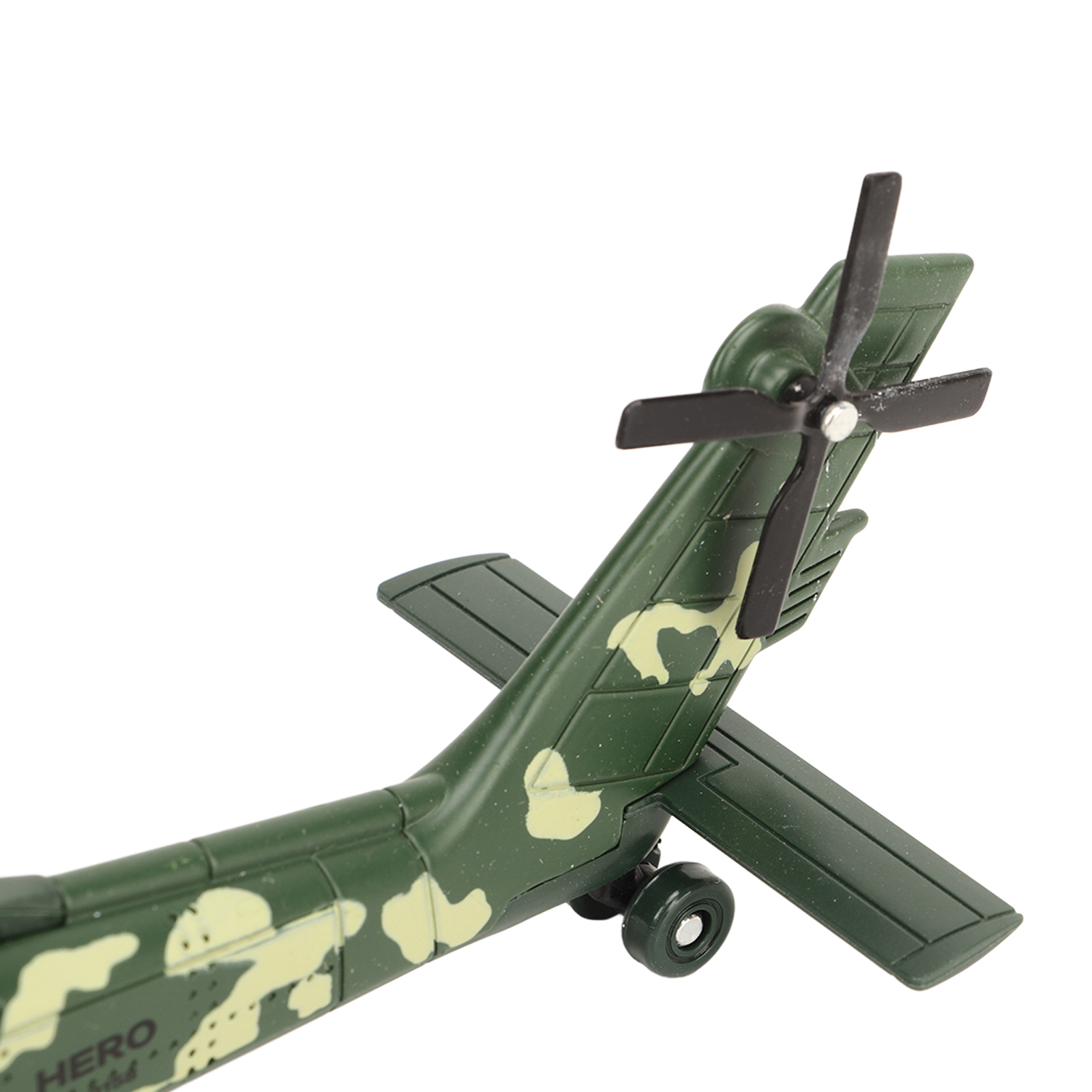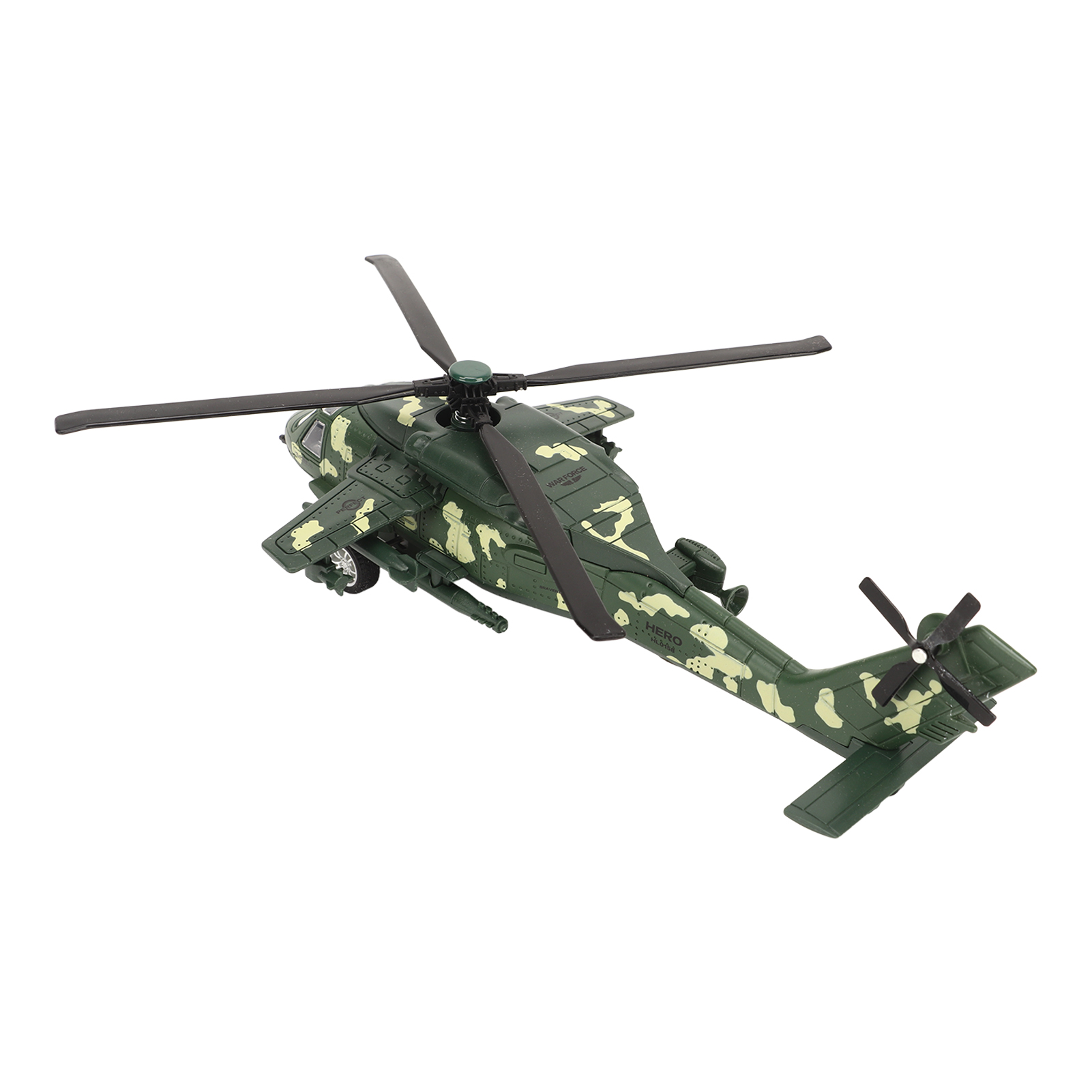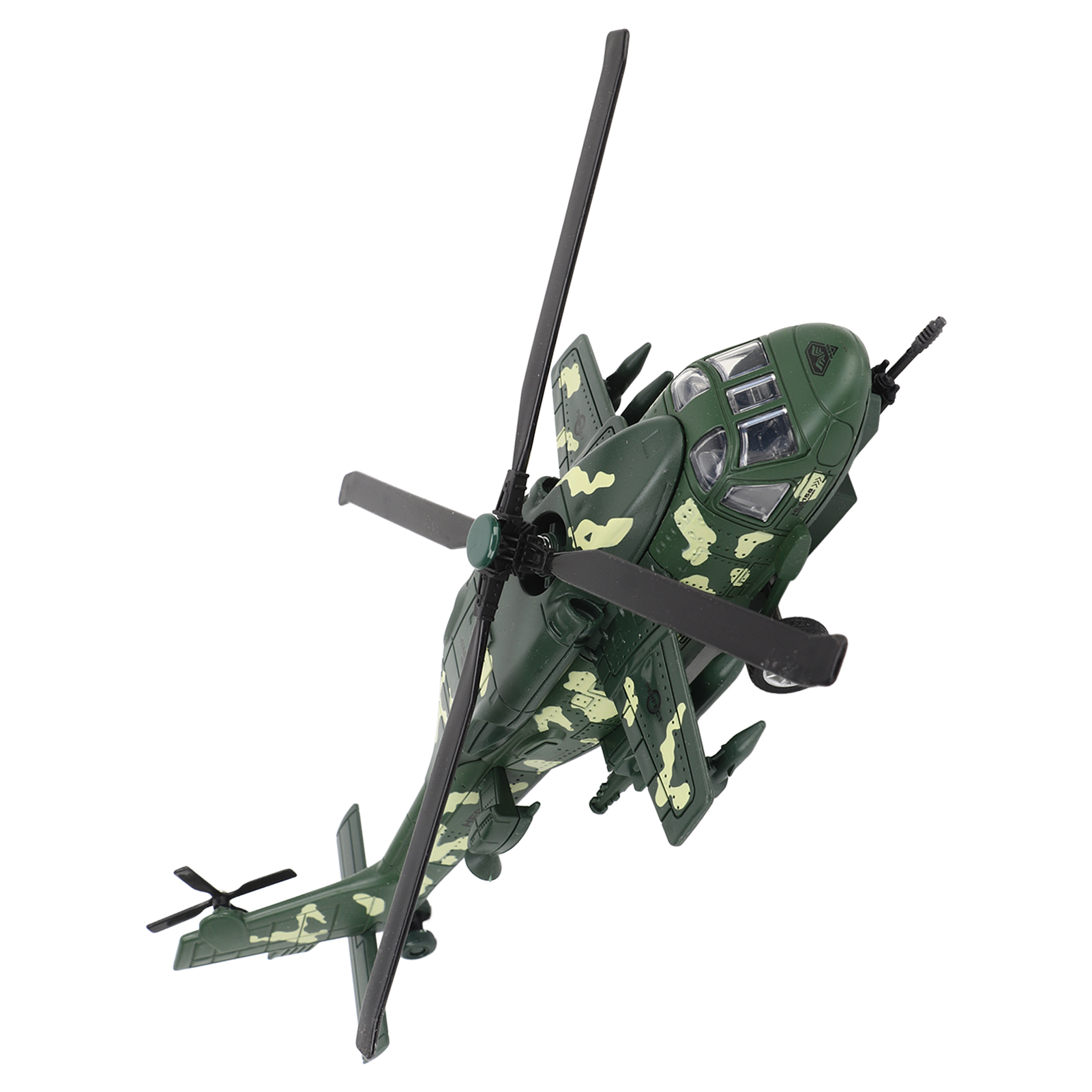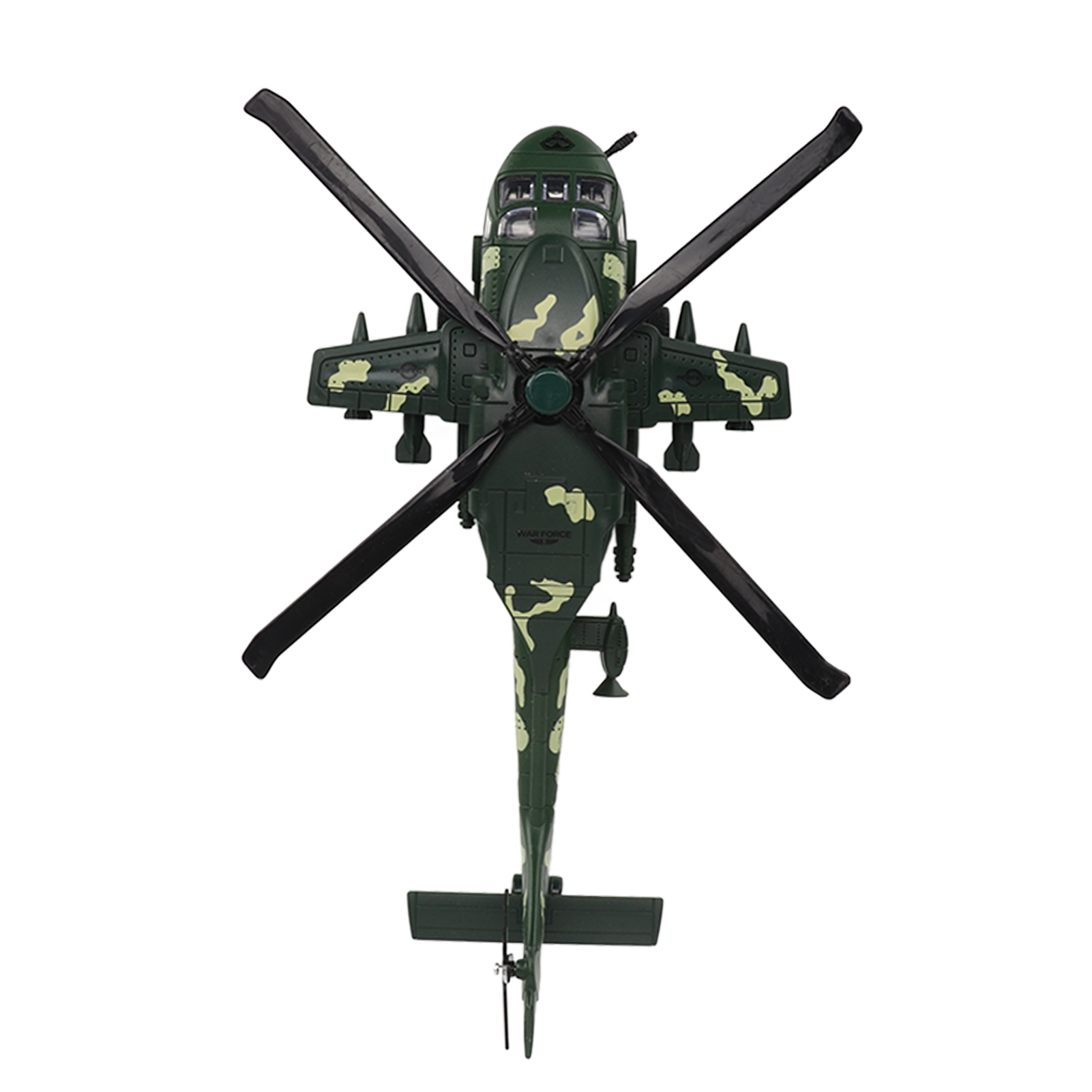 1、PULL BACK: Friction powered design, just pull it back and let it go forward naturally, which are perfect for boys and girls above 3 years old. 2、SOUND LIGHT: Diecast helicopter model will produce lights and sounds when you turn on the power button, which adding to the excitement of playtime. 3、FINE WORKMANSHIP: Complete with engraved lines, whether it is the wings, propeller, cockpit or tail, this helicopter model strives for a realistic look. 4、PERFECT GIFT: Fighter helicopter model can be used as a beautiful decoration for office and home. You can also give it as a gift to kids or model collectors. 5、ALLOY MATERIAL: Aircraft model is made of alloy material, which is not easy to rust, more colorful and solid, with a perfect metal texture.