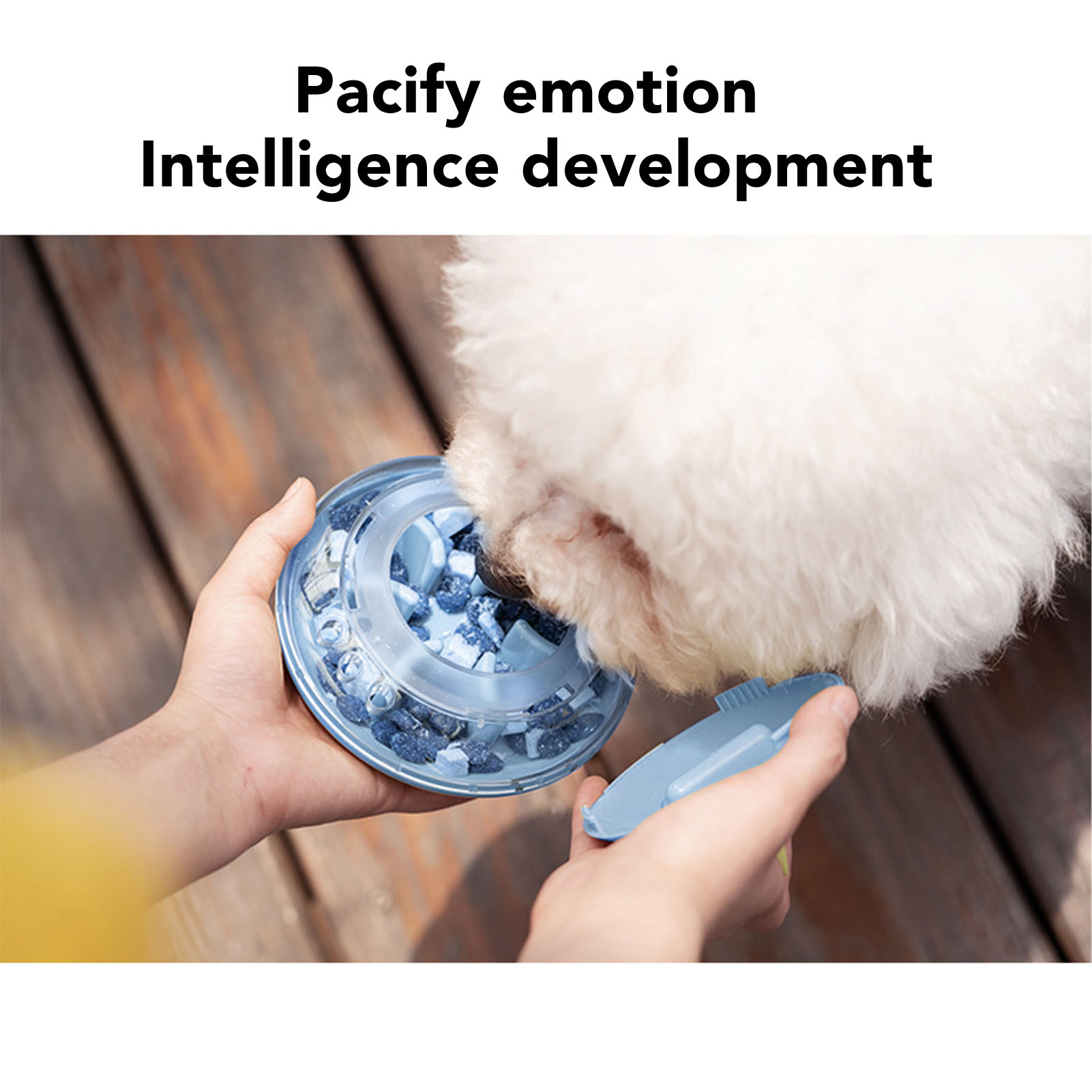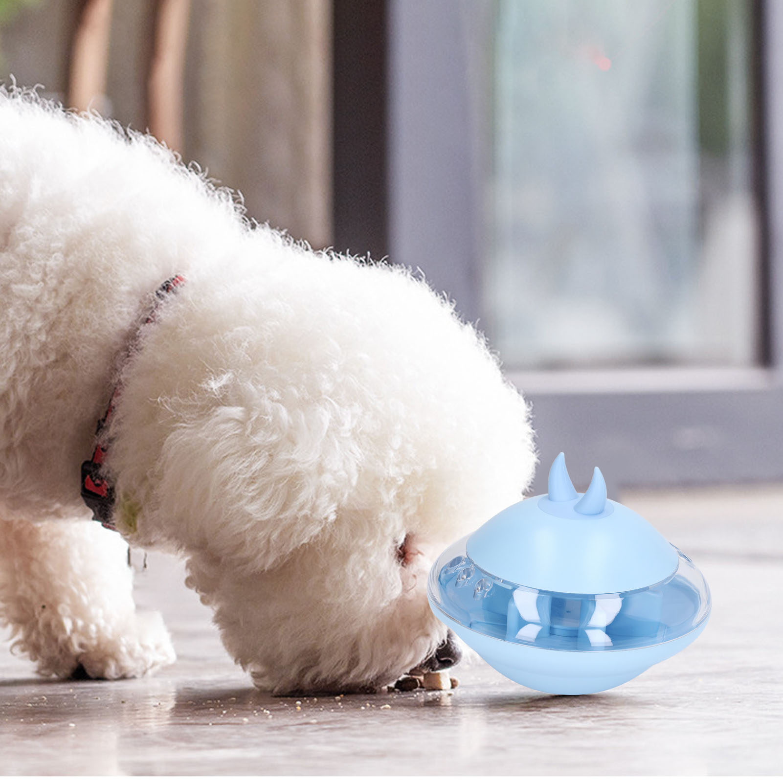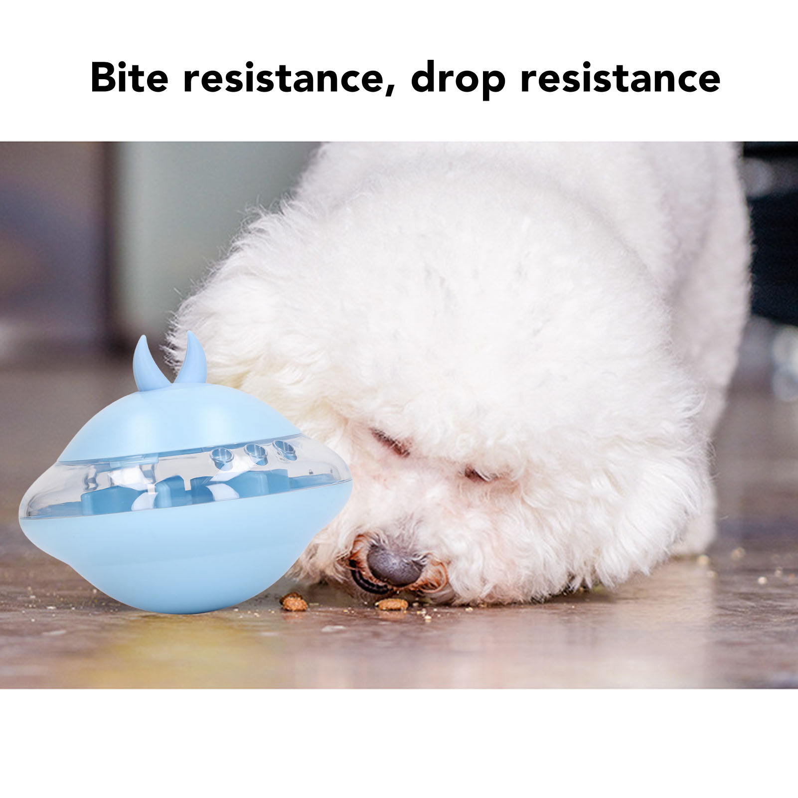 1、360° Of Fun: Treat dispensing toy can bring pets 360 degrees of fun, with small silicone horn shape that does not hurt pet's mouth. The overall structure is bite and drop resistant. 2、Visualized: Pet treat puzzle toy has a visual cabin design, which allows the pet to see the treats and dynamic decorations inside, increasing the appeal of the toy. 3、Damping Column Design: This dog treat dispensing toy uses damping columns design inside, increasing the difficulty and movement of the toy, which can exercise the pet's intelligence. 4、Large Opening Lid: The dog food dispensing toy has a large opening lid design, which is convenient for you to take and put treats or other items. 5、Adjustable: The cabin size of this pet puzzle toy is adjustable, suitable for different age groups and sizes of pets, to meet the needs of different pets.