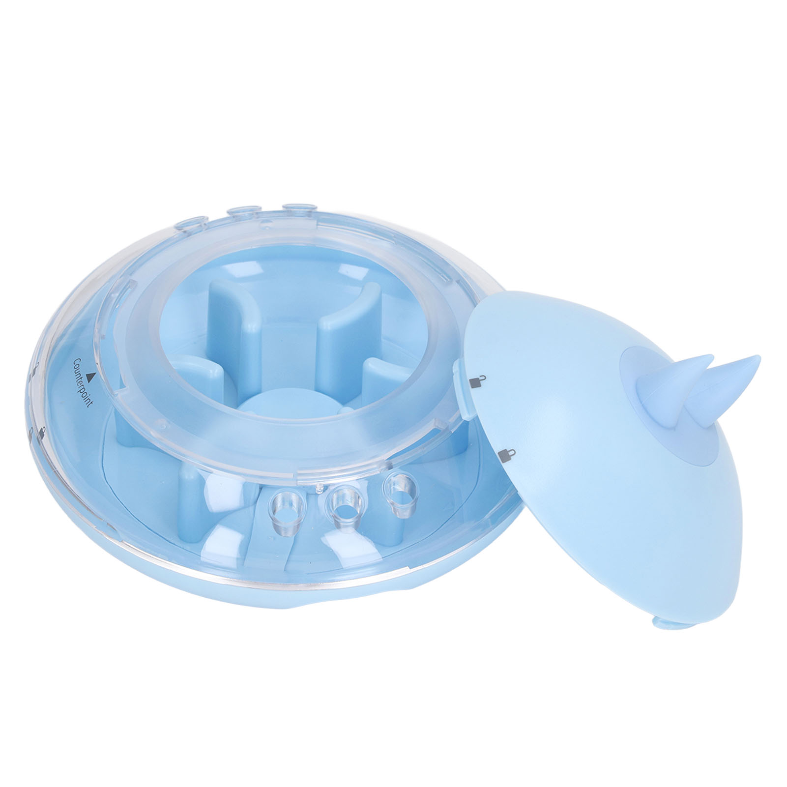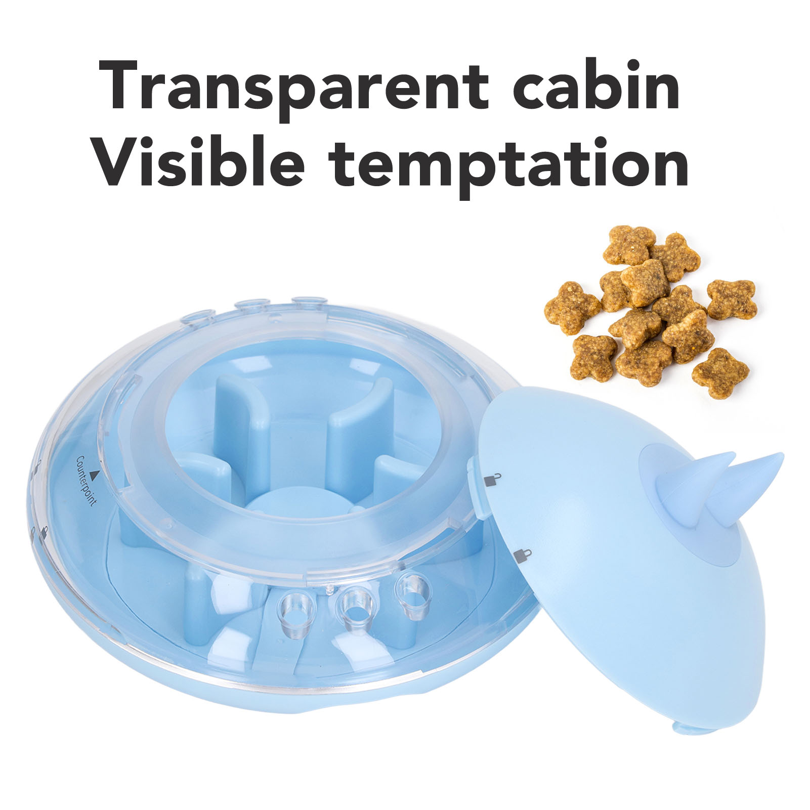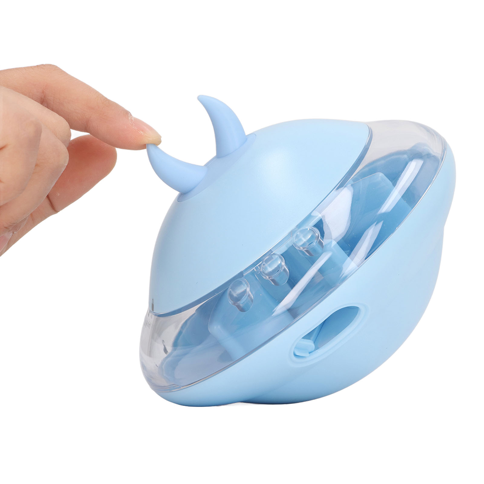 1、360° Of Fun: Treat dispensing toy can bring pets 360 degrees of fun, with small silicone horn shape that does not hurt pet's mouth. The overall structure is bite and drop resistant. 2、Visualized: Pet treat puzzle toy has a visual cabin design, which allows the pet to see the treats and dynamic decorations inside, increasing the appeal of the toy. 3、Damping Column Design: This dog treat dispensing toy uses damping columns design inside, increasing the difficulty and movement of the toy, which can exercise the pet's intelligence. 4、Large Opening Lid: The dog food dispensing toy has a large opening lid design, which is convenient for you to take and put treats or other items. 5、Adjustable: The cabin size of this pet puzzle toy is adjustable, suitable for different age groups and sizes of pets, to meet the needs of different pets.