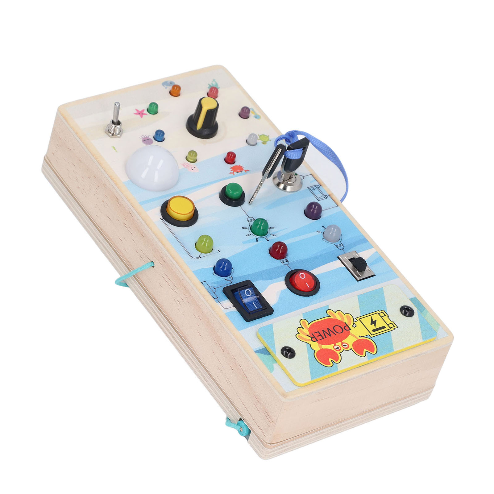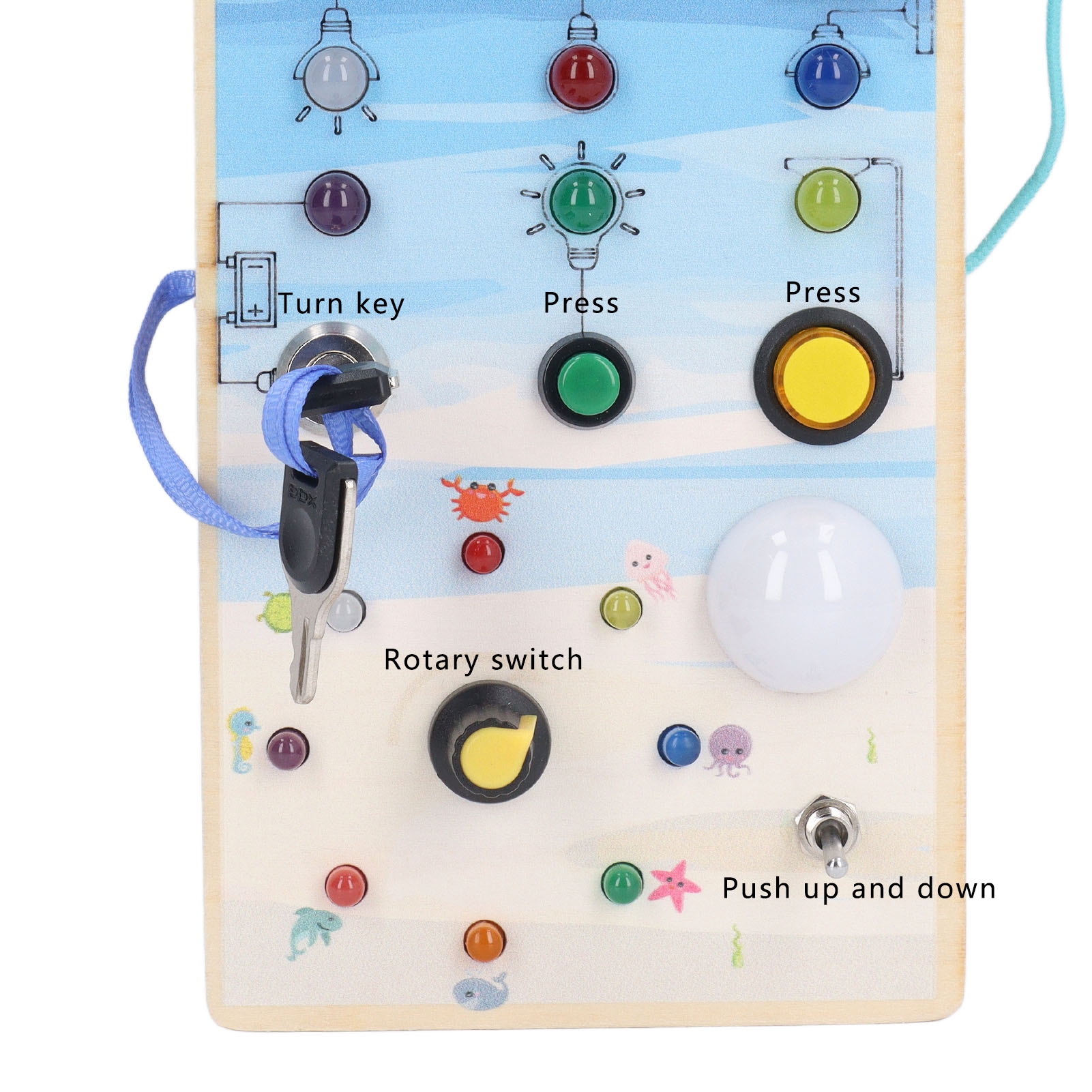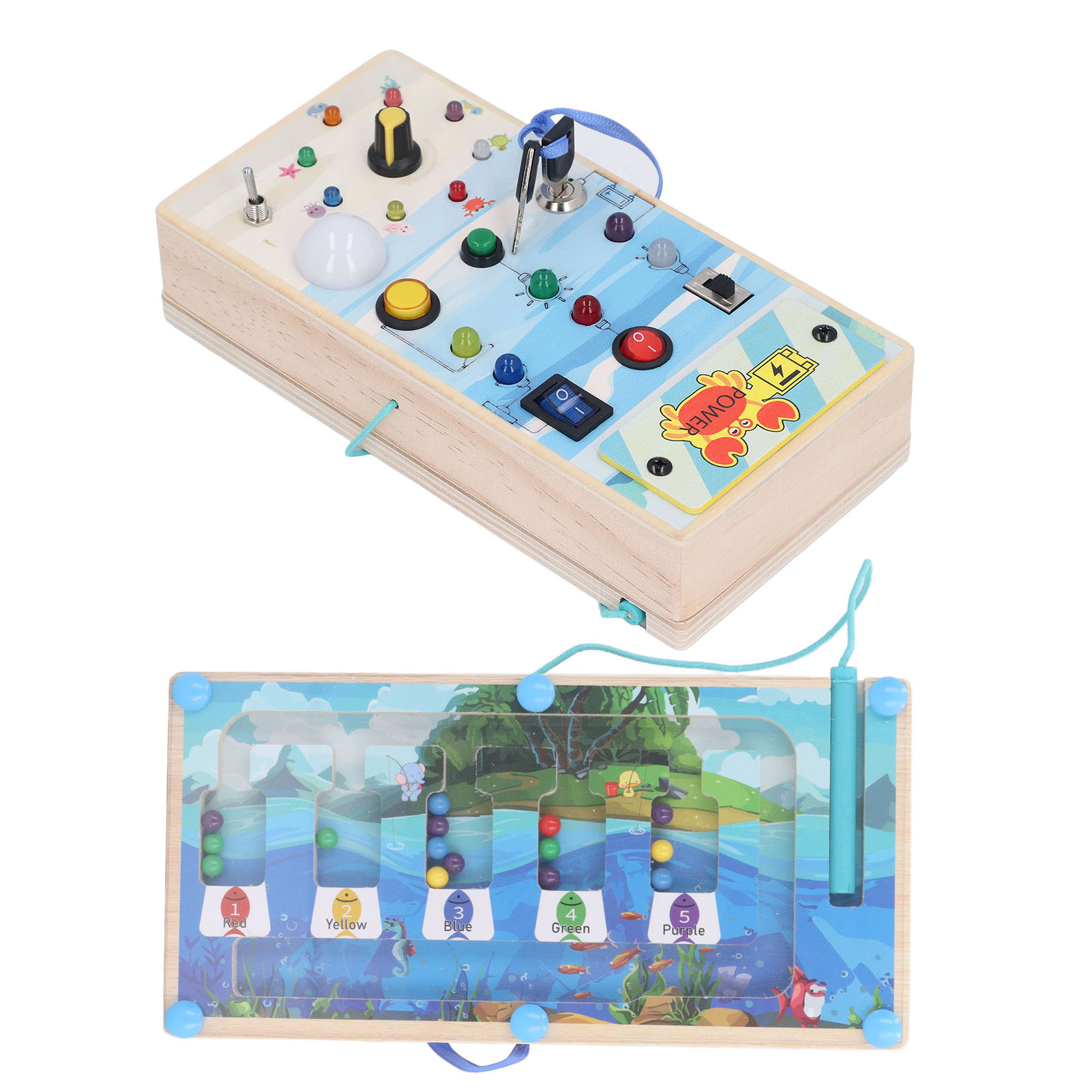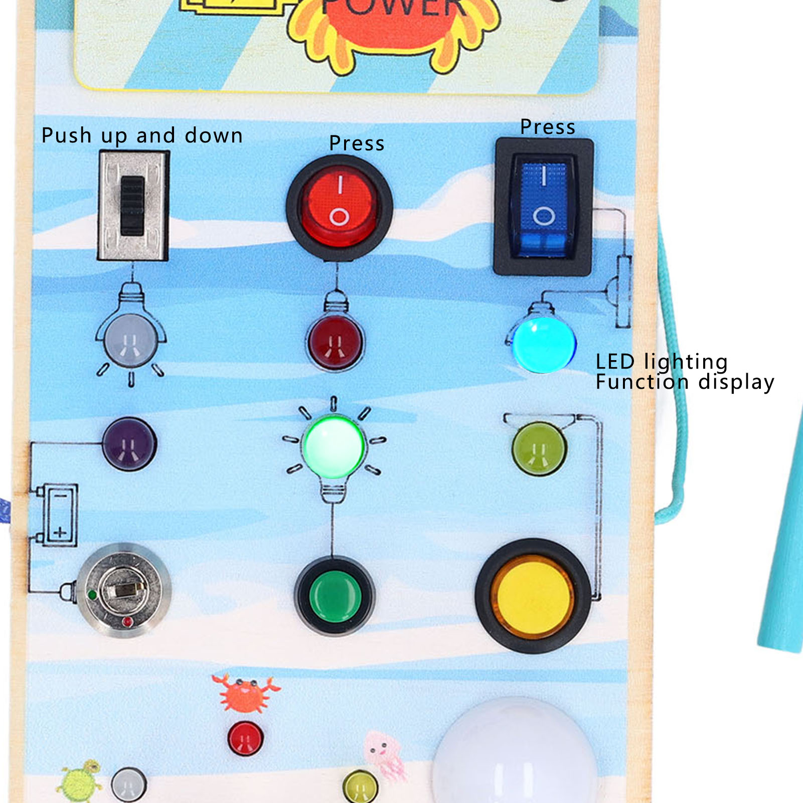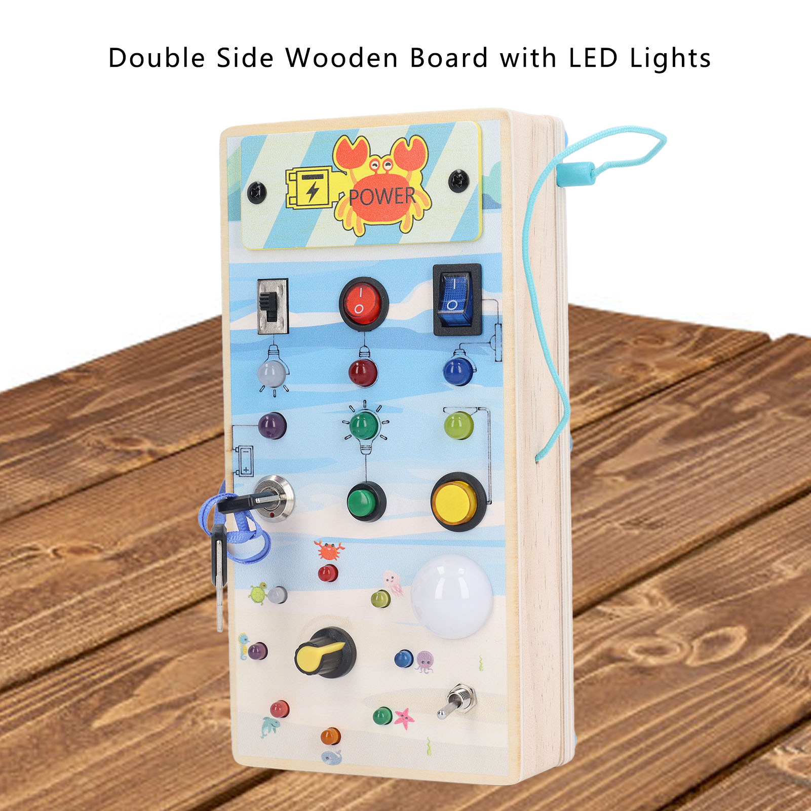 1、BRIGHT LED LIGHTS: Equipped with multiple bright LED lights, this toy allows children to experience the excitement of play while also providing them with control over switch. 2、DOUBLE SIDED DESIGN: One side with LED light and toggle switch, and one side with magnetic maze design to help children exercise fine motor skill. 3、INTERACTIVE BOARD: When children repeatedly interact with the wooden board, it helps them identify cause and effect relationships and understand the world in which they live. 4、ENDLESS FUN: Kids can stay focused between the colorful buttons and tools without making noise and have fun manipulating to change things on their own. 5、SAFE TO PLAY: Made of excellent wooden material and frosted smoothly wood surface, safe and eco friendly, will not harm the skin of children.