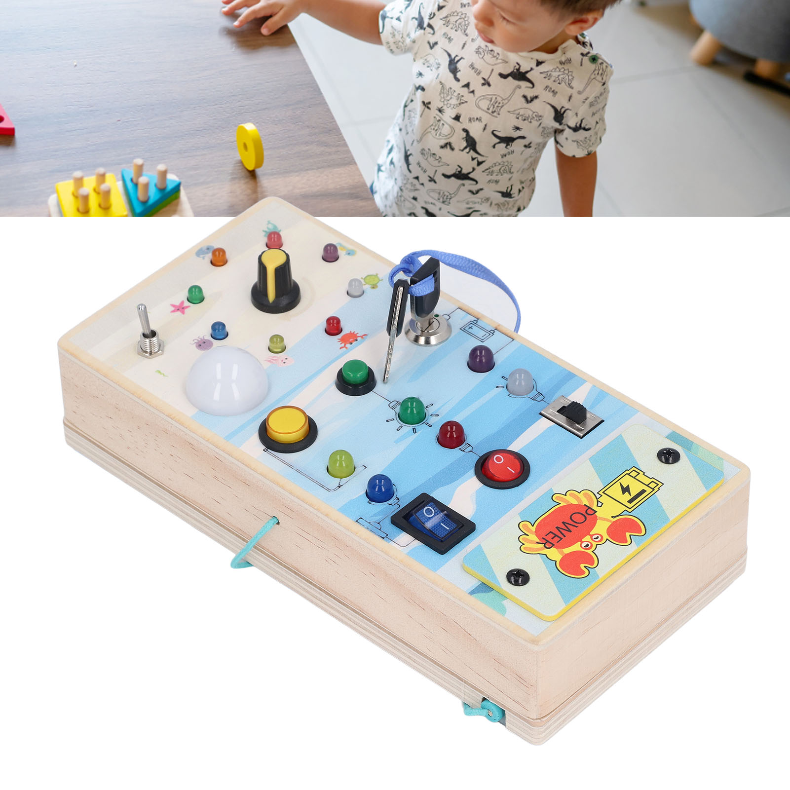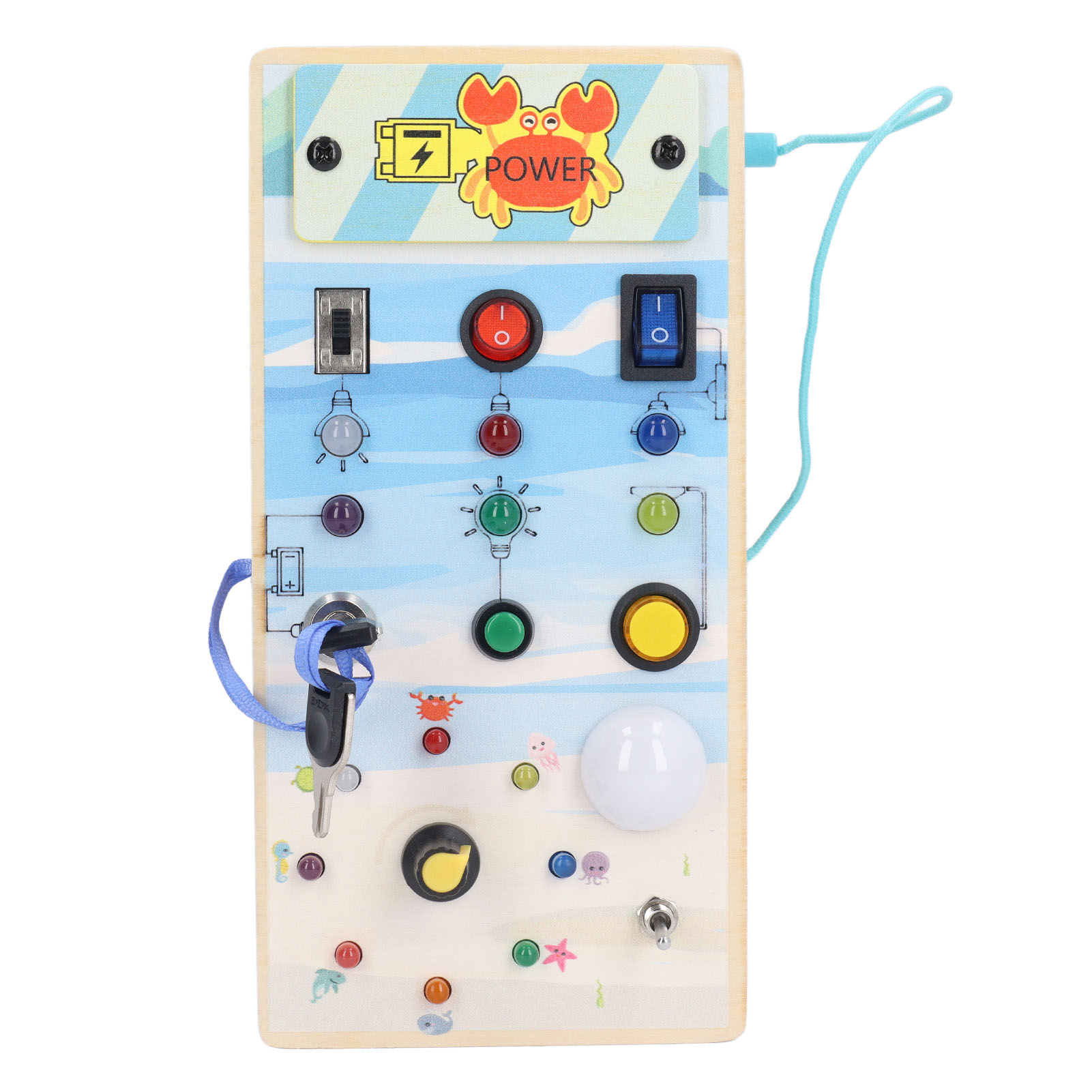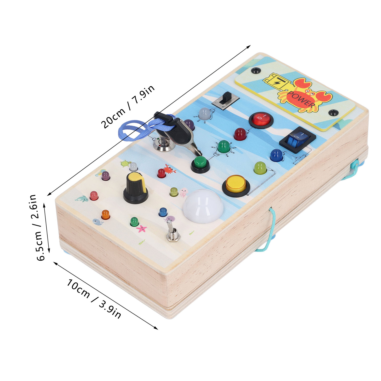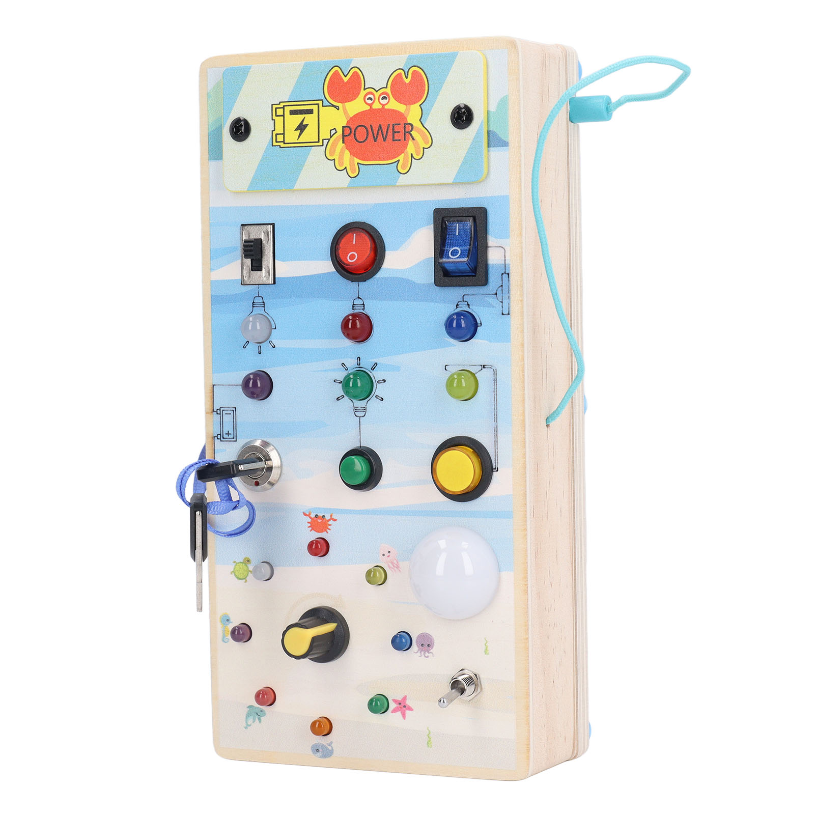 1、BRIGHT LED LIGHTS: Equipped with multiple bright LED lights, this toy allows children to experience the excitement of play while also providing them with control over switch. 2、DOUBLE SIDED DESIGN: One side with LED light and toggle switch, and one side with magnetic maze design to help children exercise fine motor skill. 3、INTERACTIVE BOARD: When children repeatedly interact with the wooden board, it helps them identify cause and effect relationships and understand the world in which they live. 4、ENDLESS FUN: Kids can stay focused between the colorful buttons and tools without making noise and have fun manipulating to change things on their own. 5、SAFE TO PLAY: Made of excellent wooden material and frosted smoothly wood surface, safe and eco friendly, will not harm the skin of children.