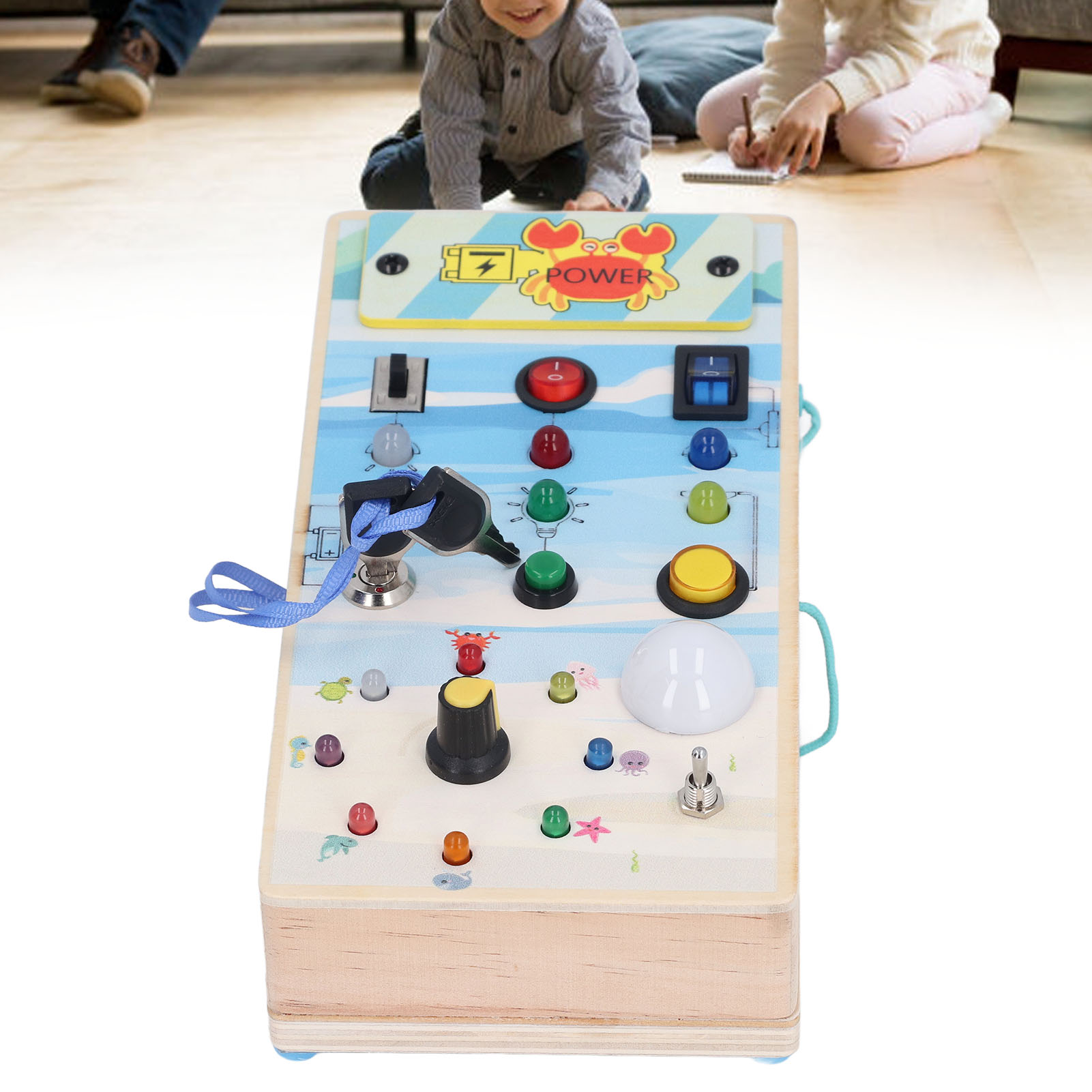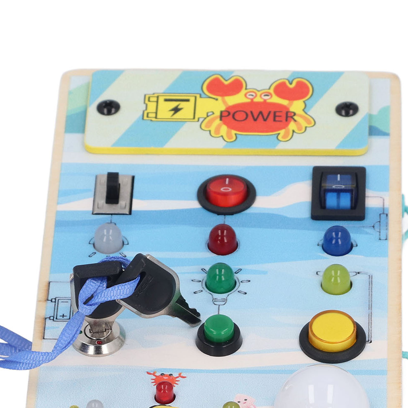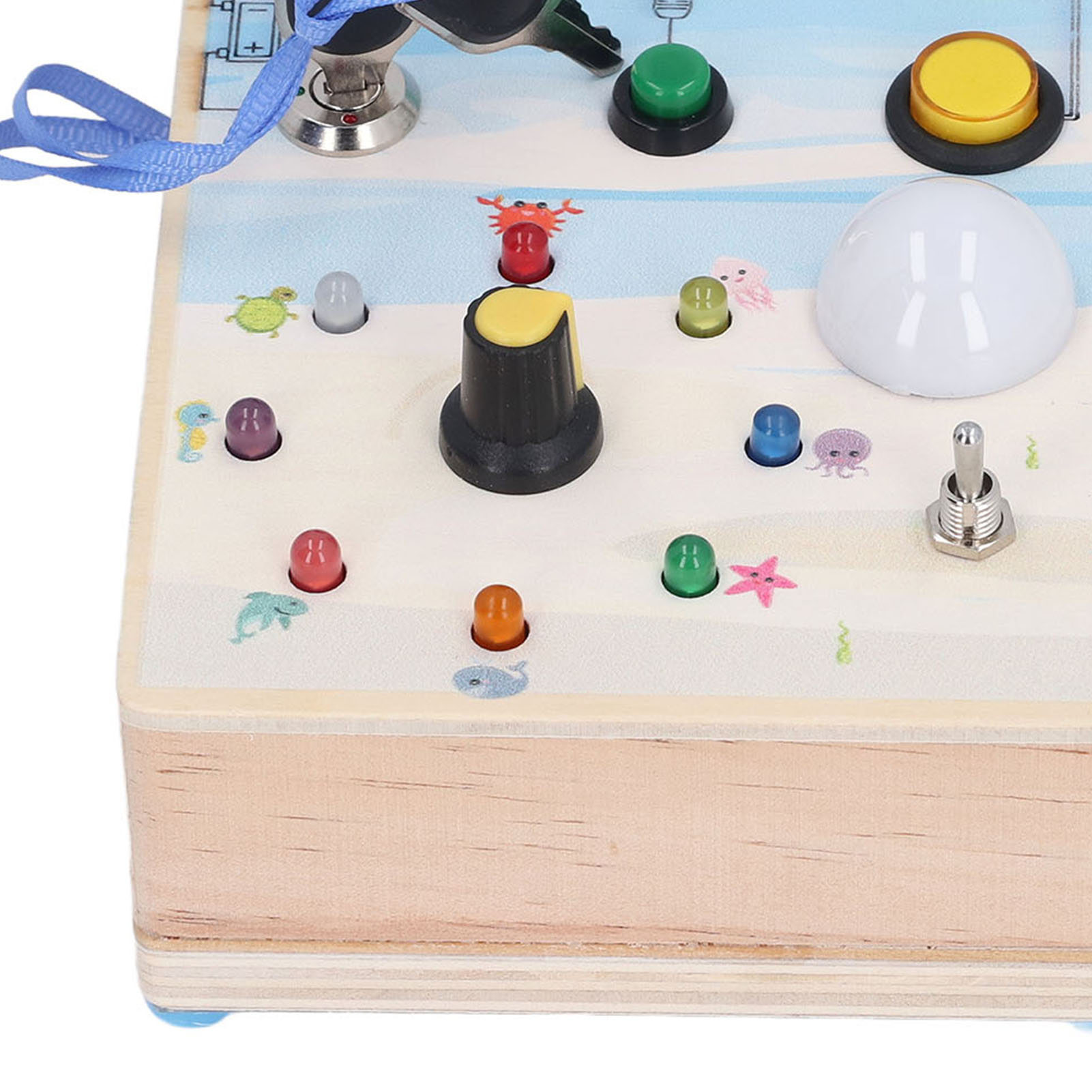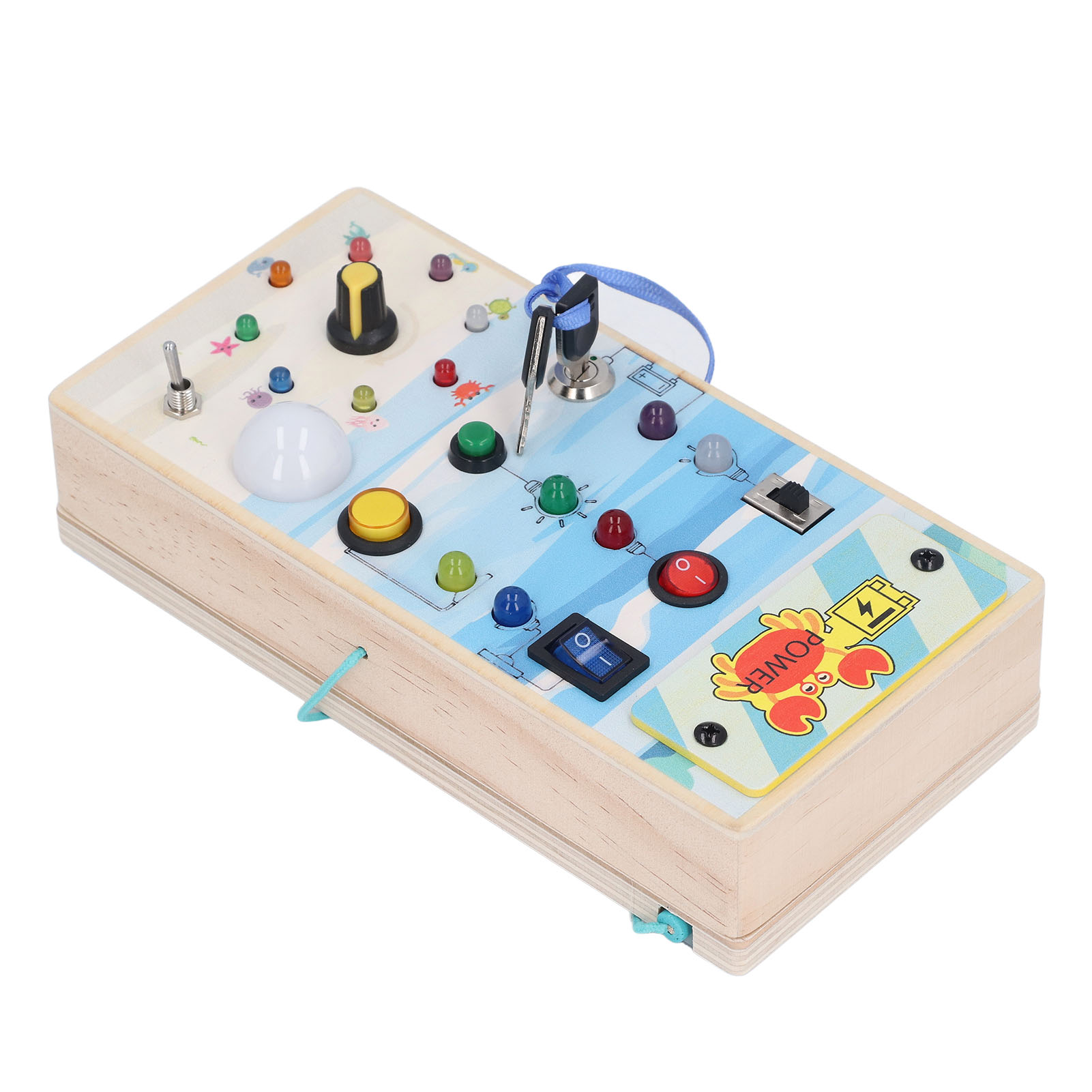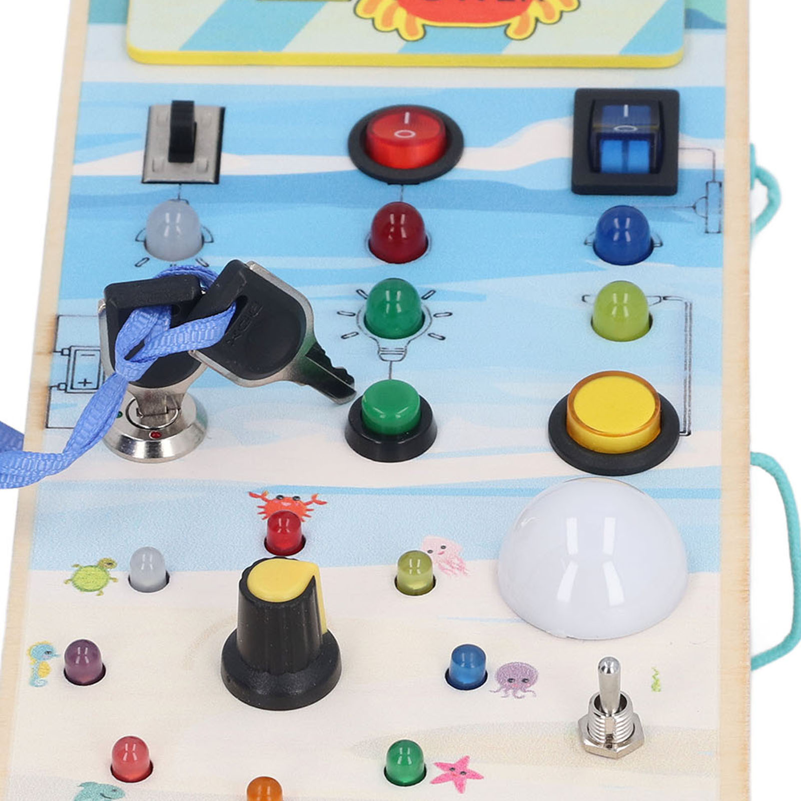 1、BRIGHT LED LIGHTS: Equipped with multiple bright LED lights, this toy allows children to experience the excitement of play while also providing them with control over switch. 2、DOUBLE SIDED DESIGN: One side with LED light and toggle switch, and one side with magnetic maze design to help children exercise fine motor skill. 3、INTERACTIVE BOARD: When children repeatedly interact with the wooden board, it helps them identify cause and effect relationships and understand the world in which they live. 4、ENDLESS FUN: Kids can stay focused between the colorful buttons and tools without making noise and have fun manipulating to change things on their own. 5、SAFE TO PLAY: Made of excellent wooden material and frosted smoothly wood surface, safe and eco friendly, will not harm the skin of children.