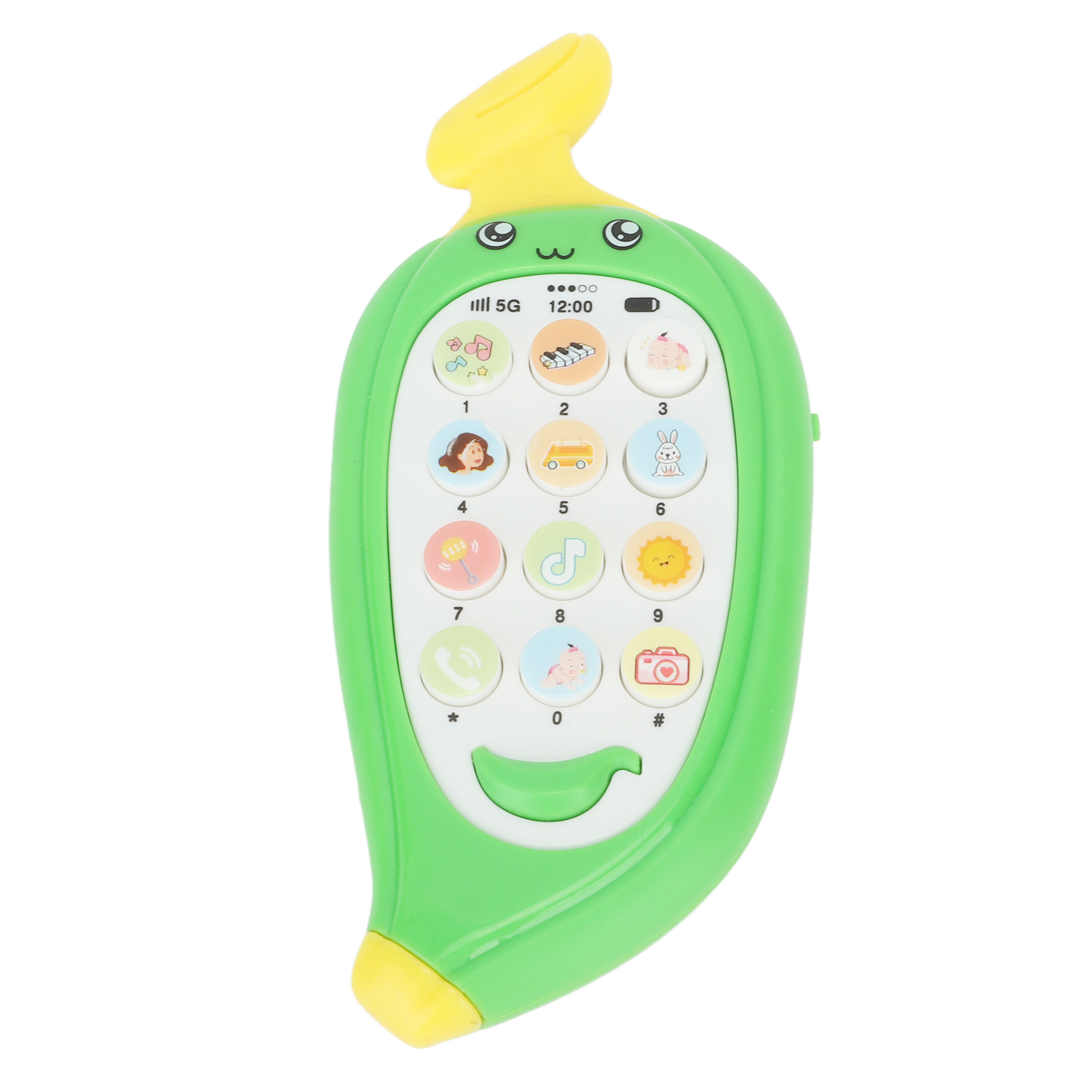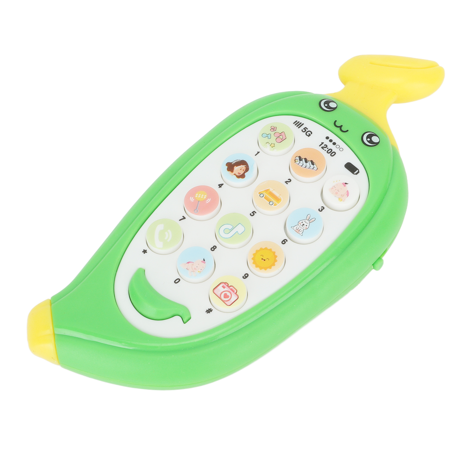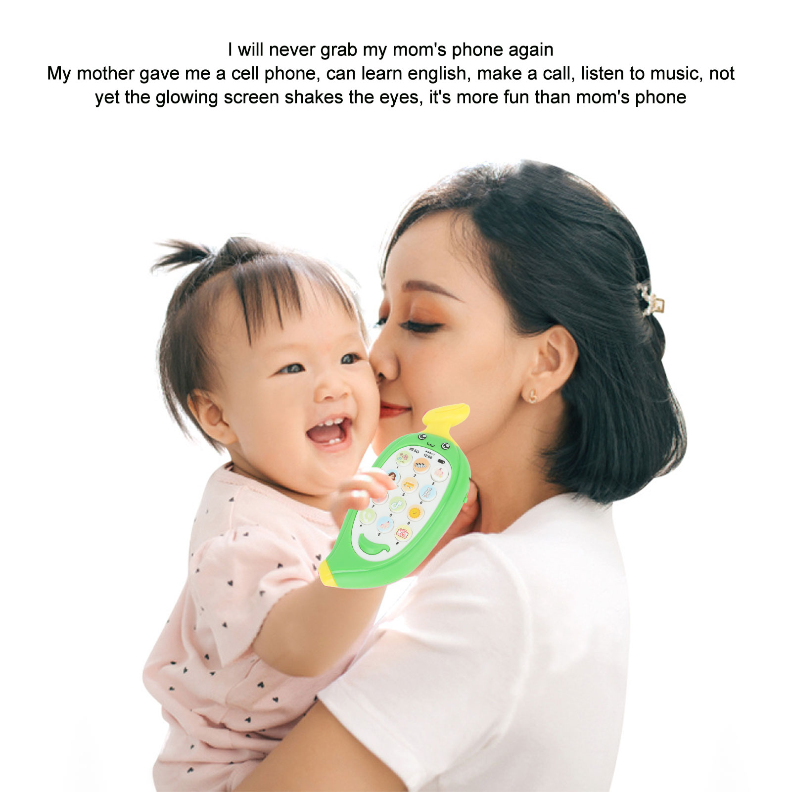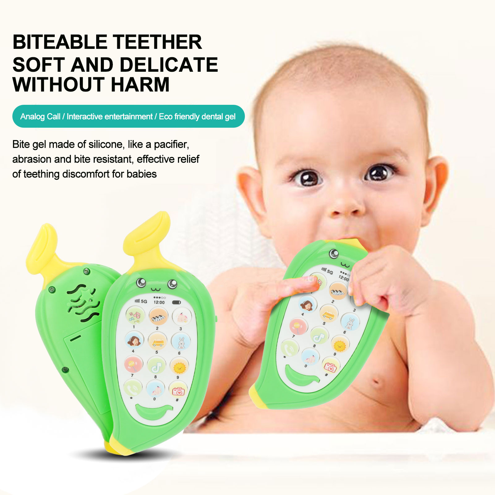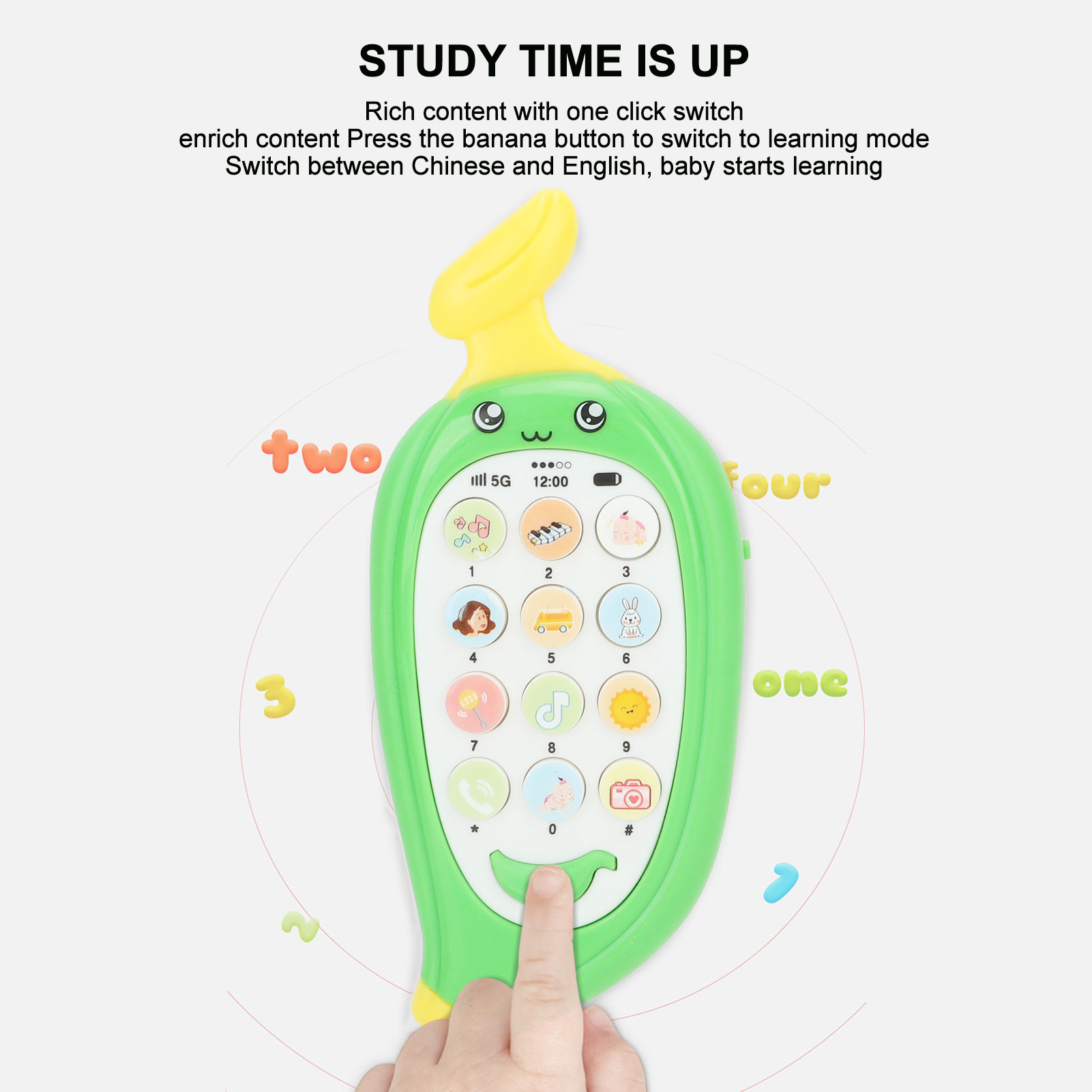 Early Learning Telephone Bilingual Biteable Teether Cover Multi Modes Baby Cell Phone Toy Banana Green