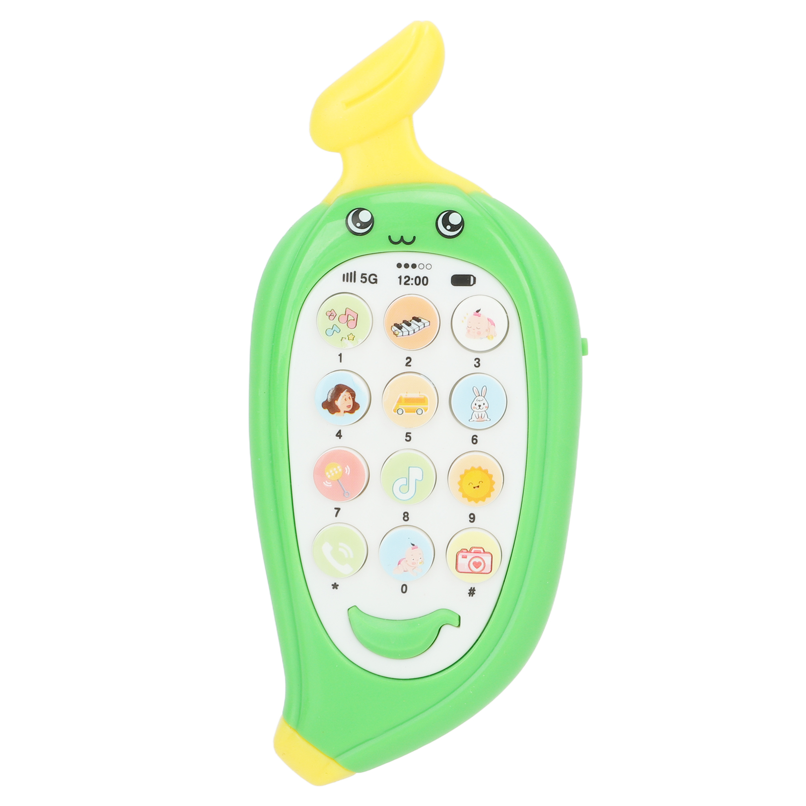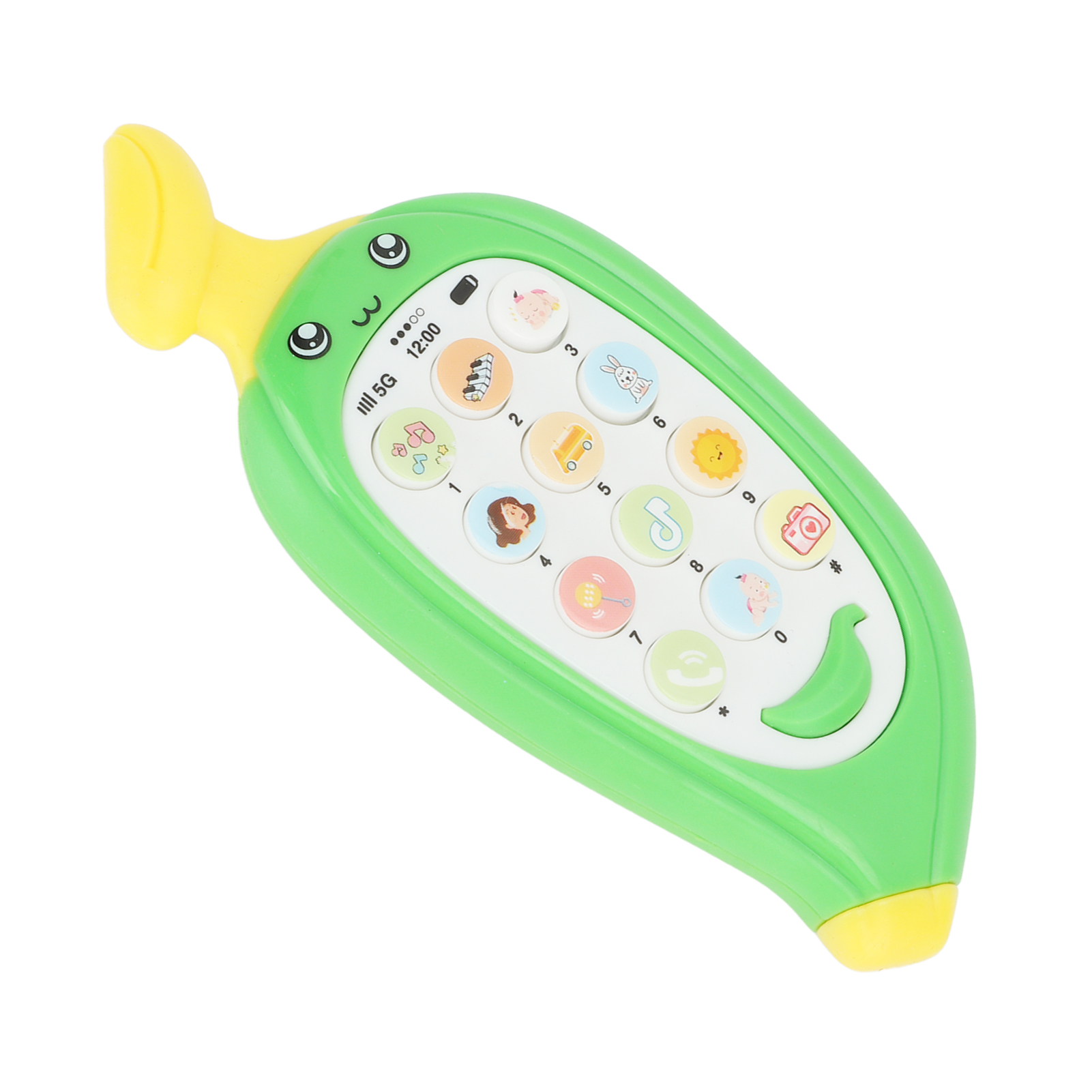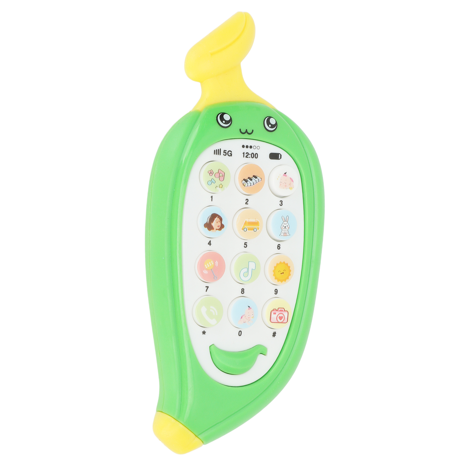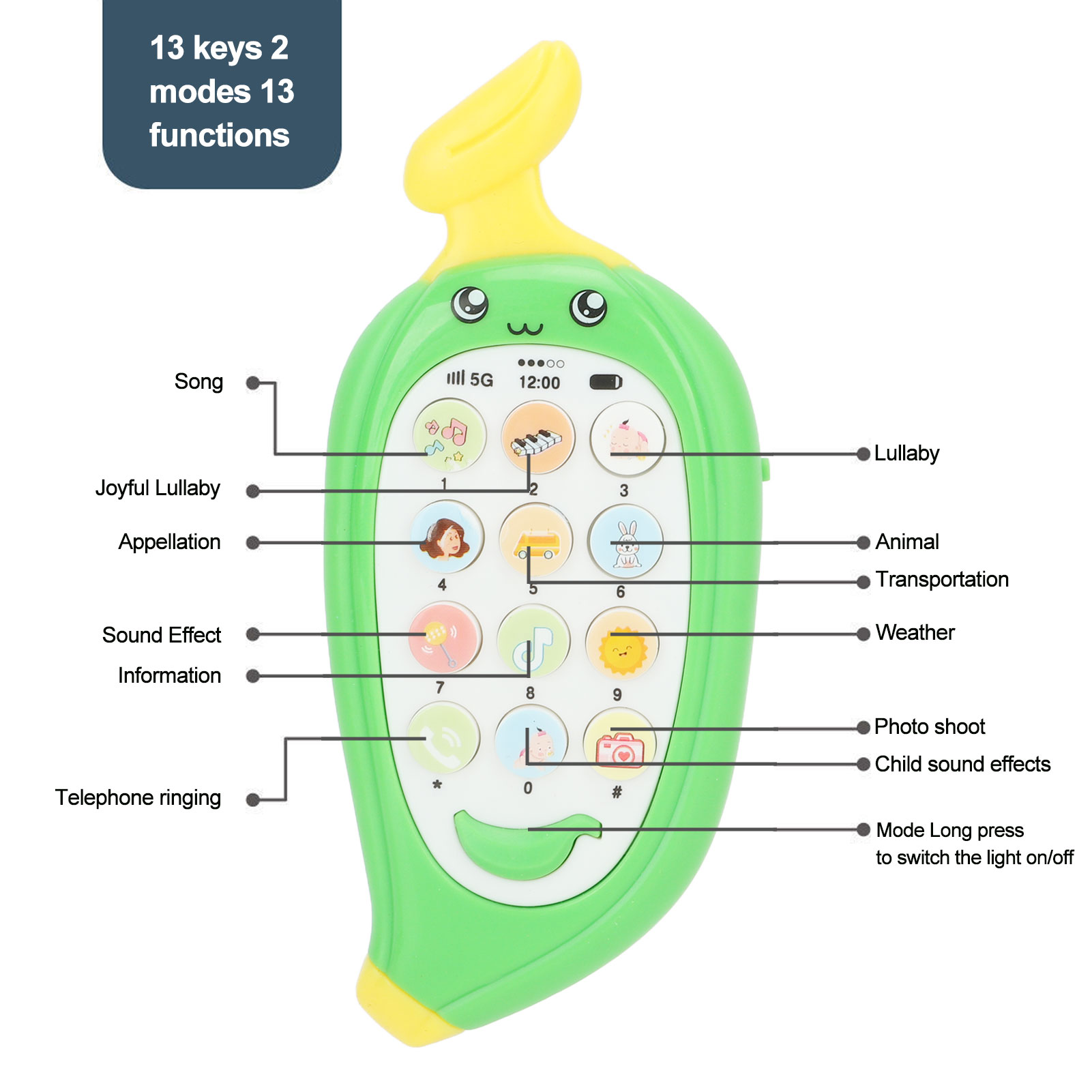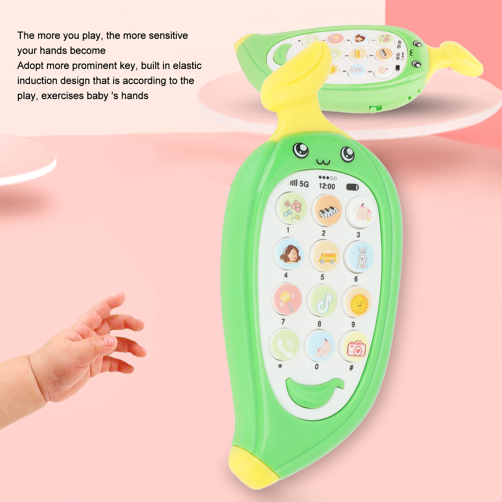 Early Learning Telephone Bilingual Biteable Teether Cover Multi Modes Baby Cell Phone Toy Banana Green