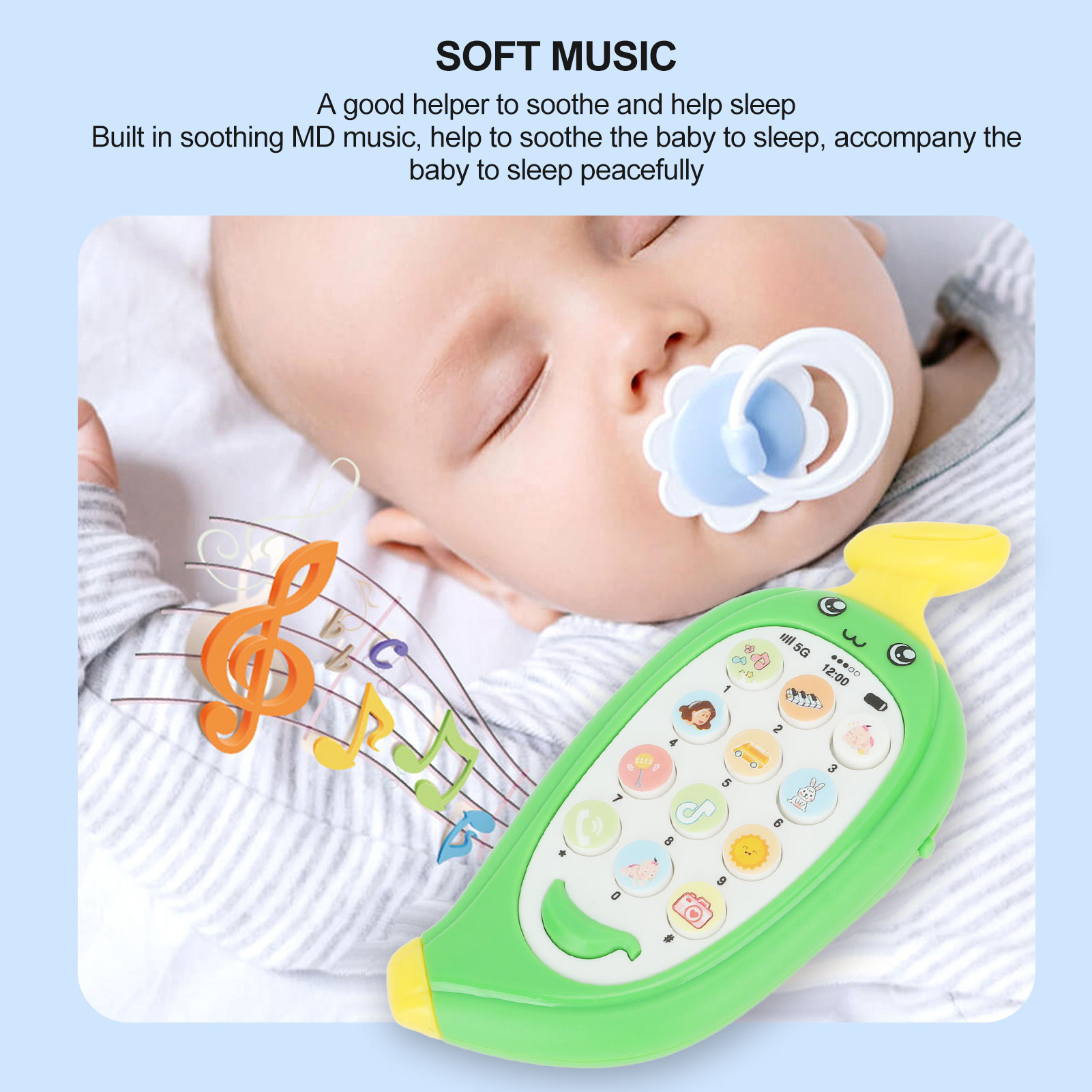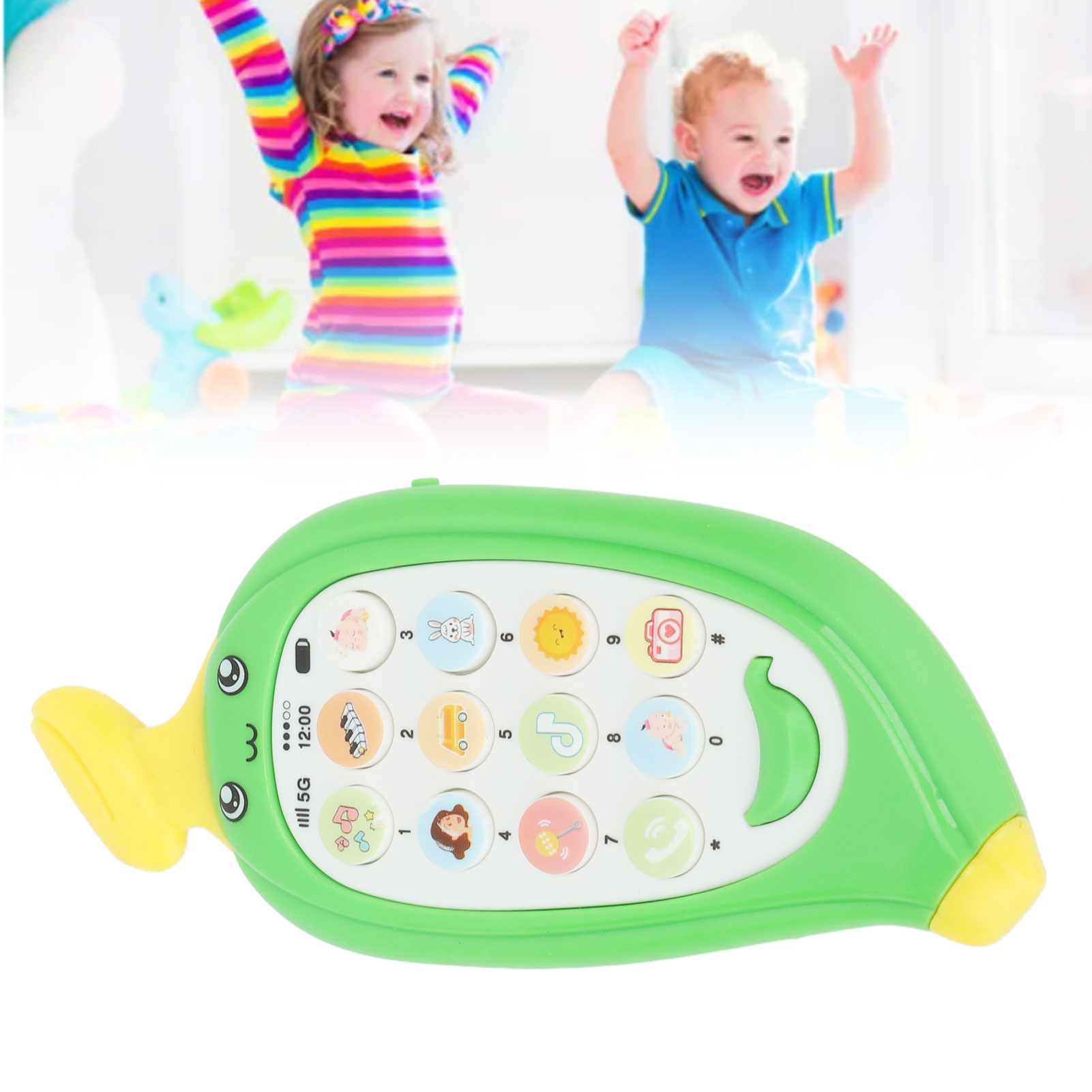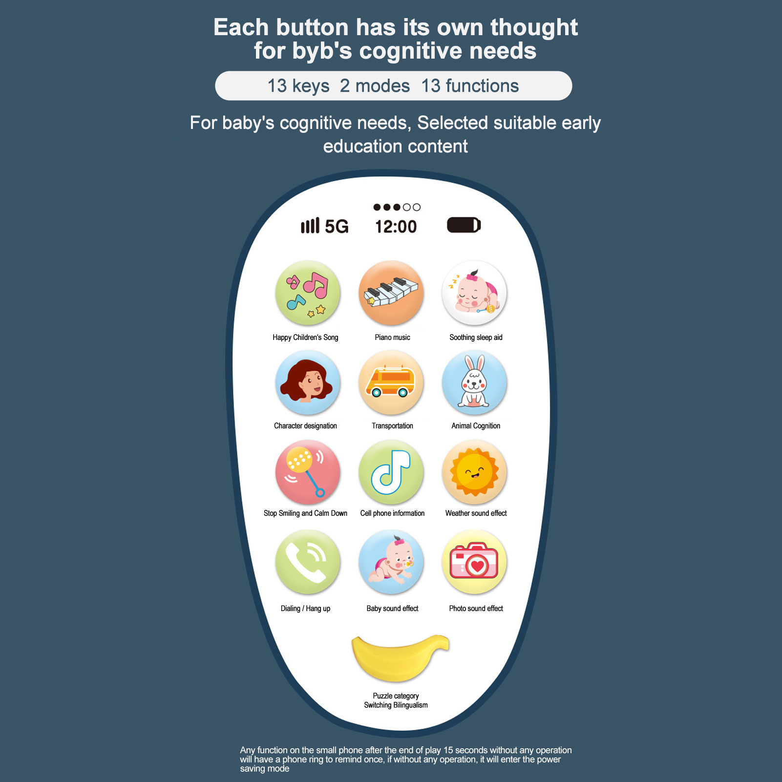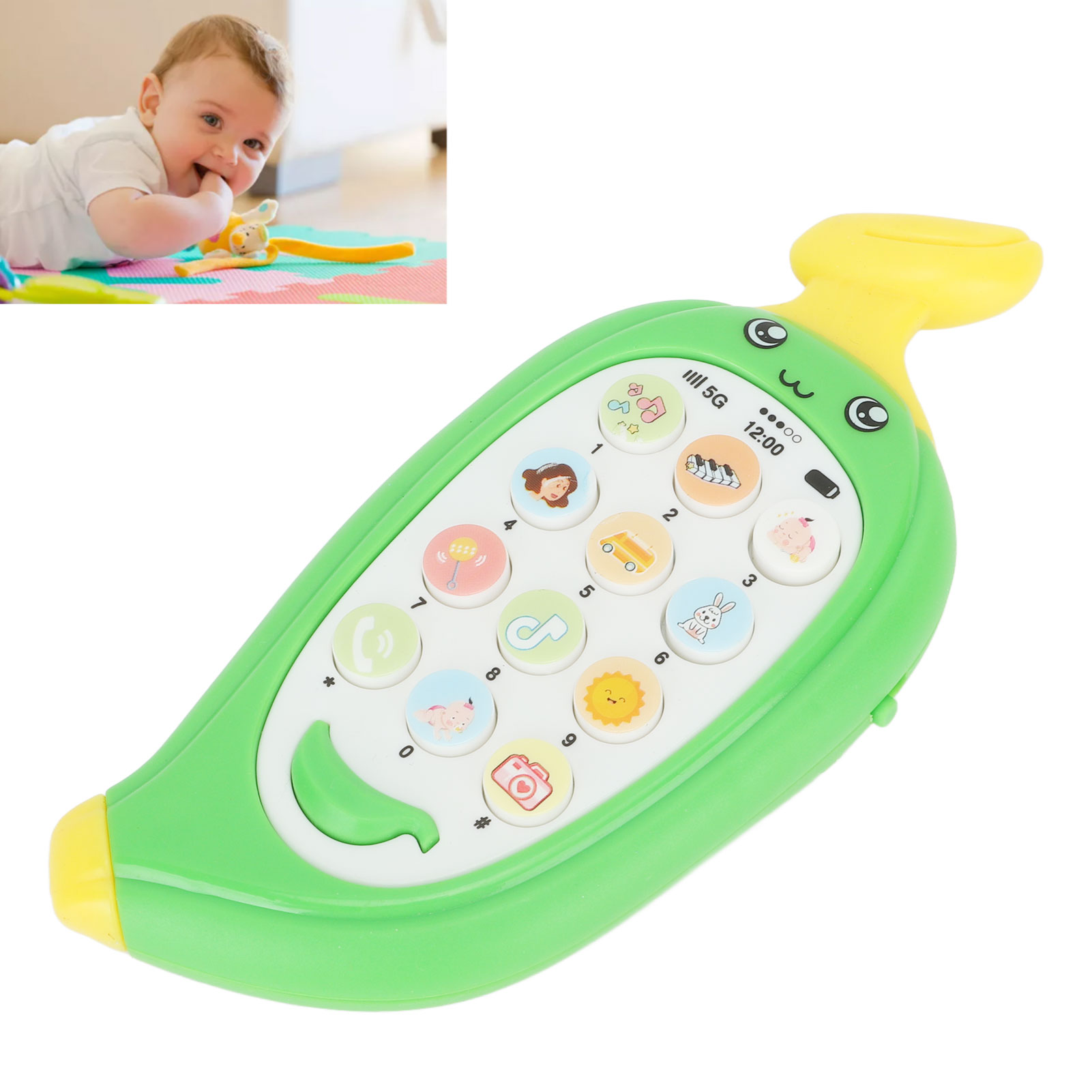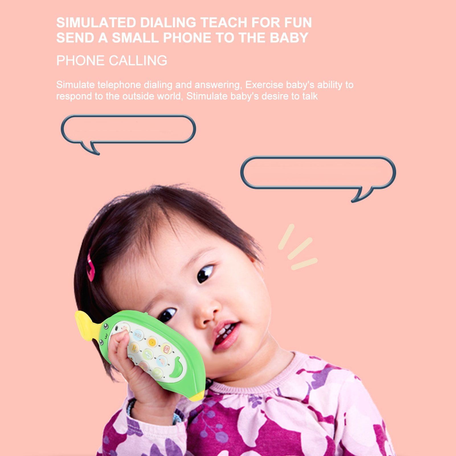 Early Learning Telephone Bilingual Biteable Teether Cover Multi Modes Baby Cell Phone Toy Banana Green