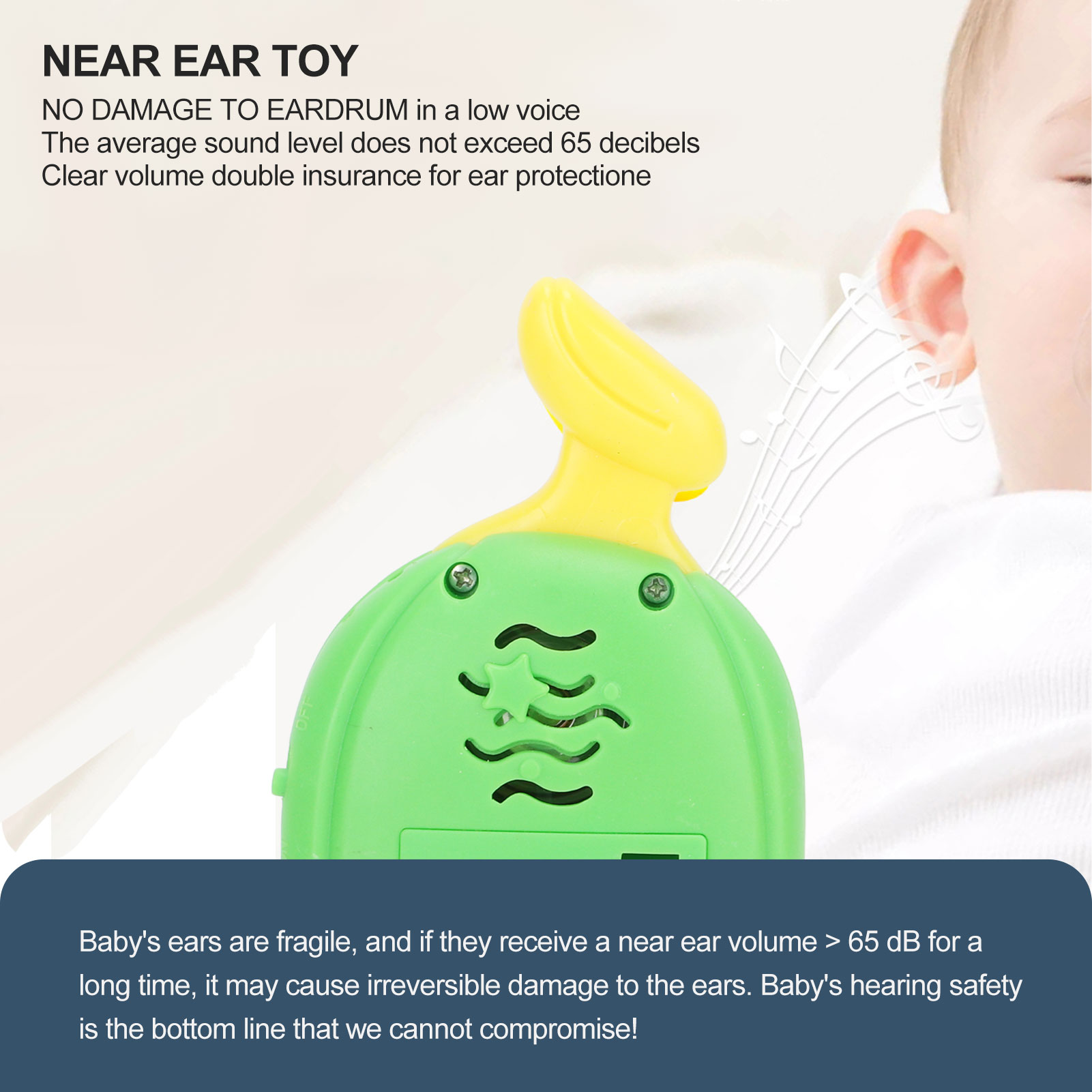 1、INTELLIGENCE DEVELOPMENT: Babies are in the enlightenment period of intellectual development and have great brain potential. This product can scientifically exercise their comprehension, imitation, and cognitive ability. 2、SILICONE PROTECTIVE COVER: Randomly presented with a food grade silicone protective sleeve, not only can play a fall proof, impact proof role, and the fins on the set can also allow the baby to bite, reducing baby's anxiety during the grinding period . 3、GOOD WORKMANSHIP: Thick ABS material is used to make the banana shape, and the battery compartment is fixed with countersunk screws. Battery compartment is closed by screws and clips. The corners are rounded and smooth. There is also a hole to hang a rope. 4、DAILY USE: The toy can play a role during both the study and play time, simple function, no LED to hurt children's eyes, so it is a good choice of toys for babies. 5、GIFT: There is no doubt that this will be the perfect choice for your child's best gift, which can surprise your child. This quiet toy will provide sensory toys to keep your child away from electronics, to help children learn language, to enhance interaction between parents and children.